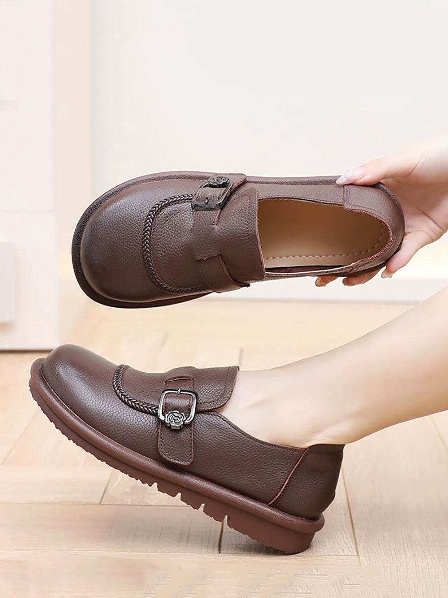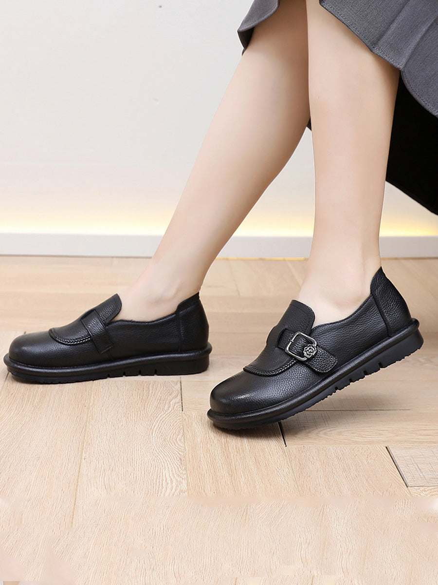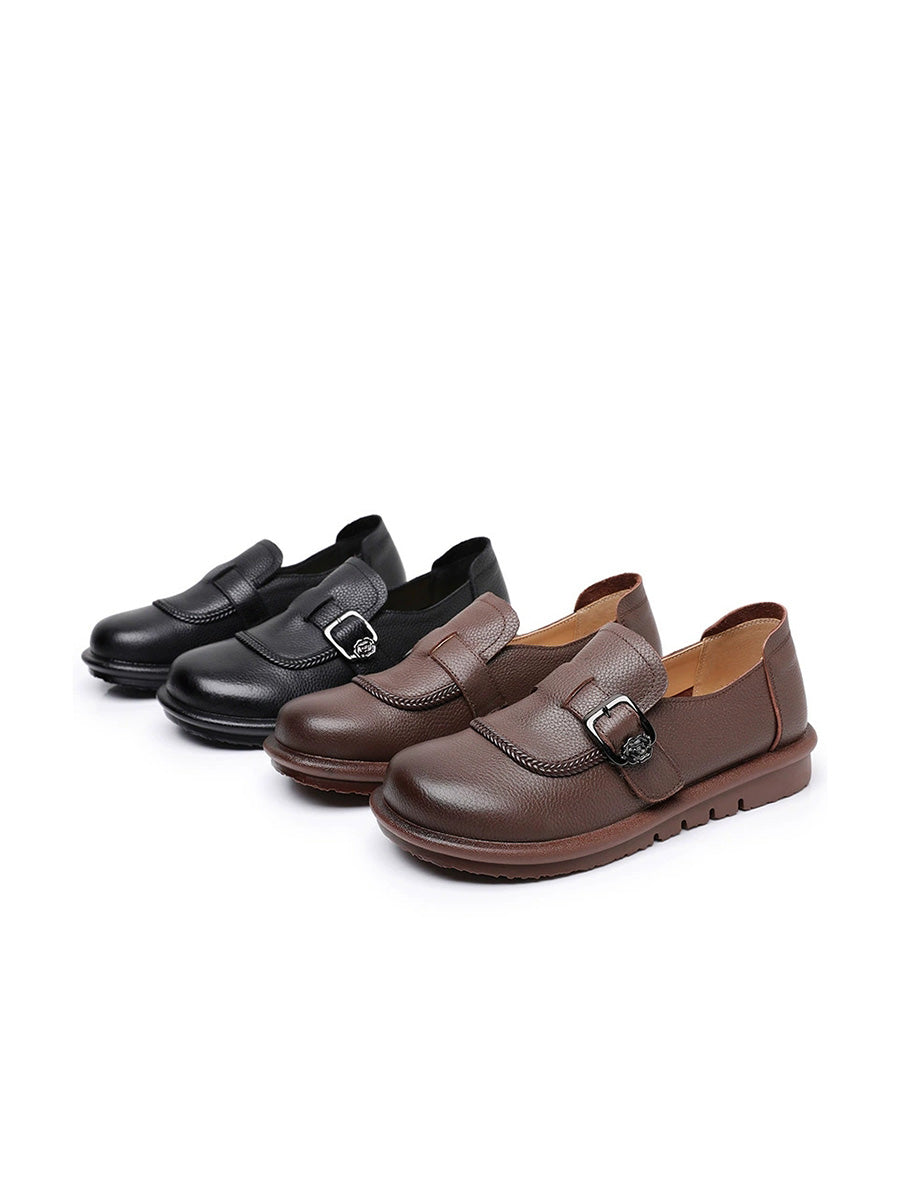 Women Spring Retro Genuine Leather Low Heel Shoes