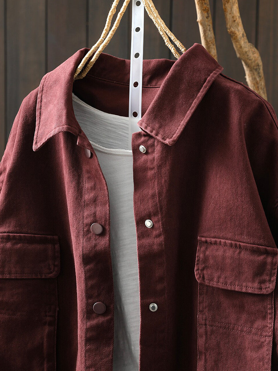 Women Spring Retro Pure Color Cotton Jacket