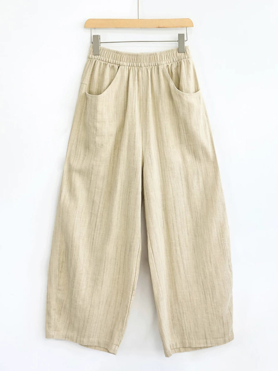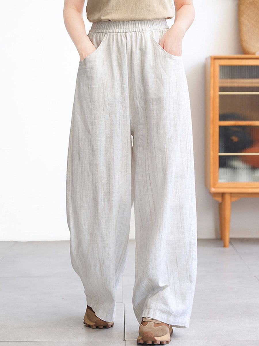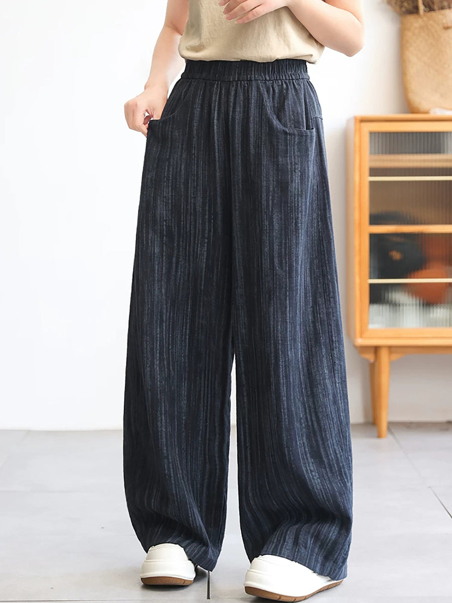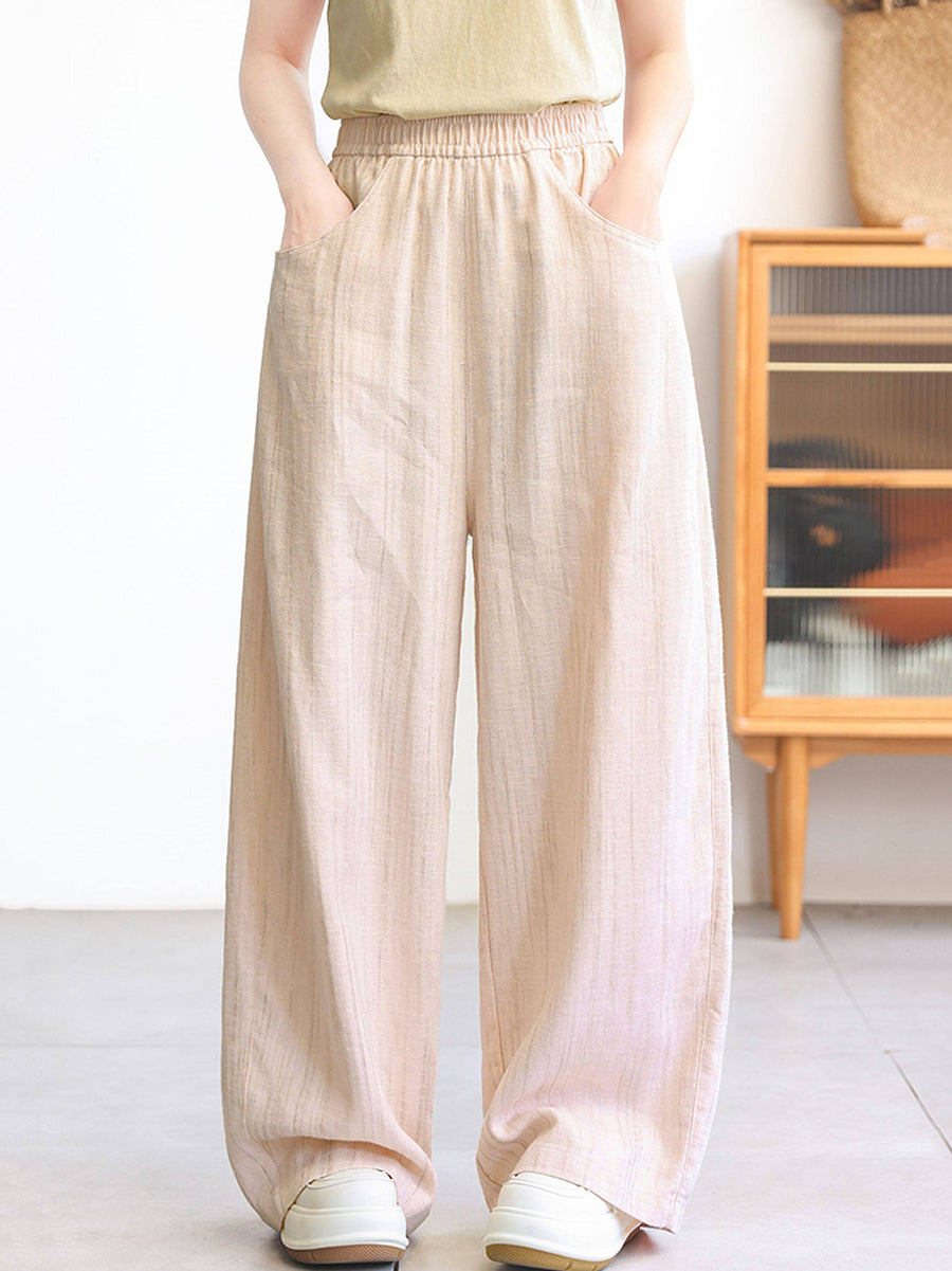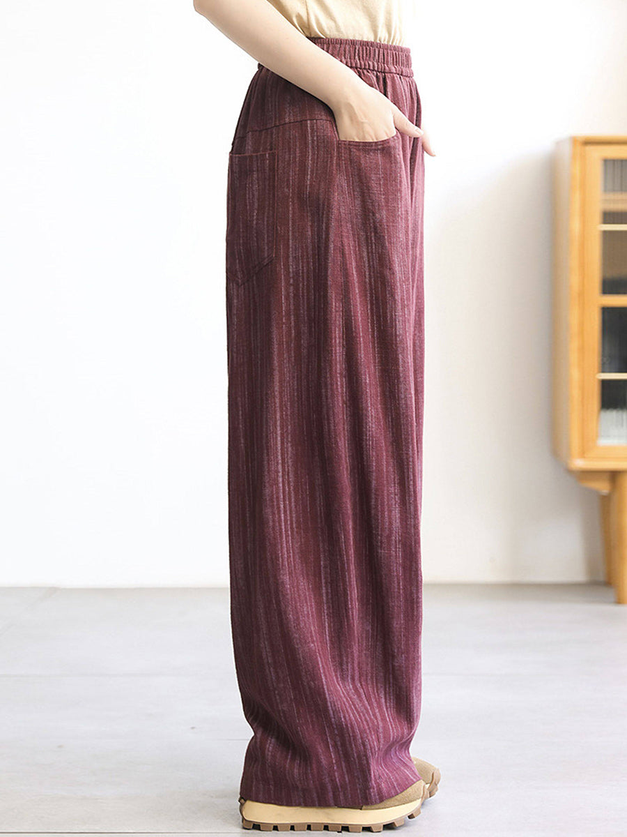 Women Spring Stripe 100%Linen Straight Pants
