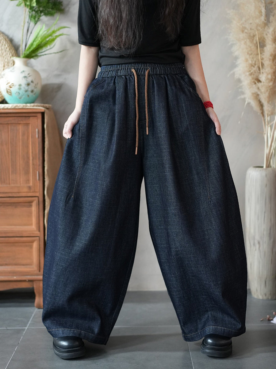 Women Spring Vintage Denim Wide-leg Pants