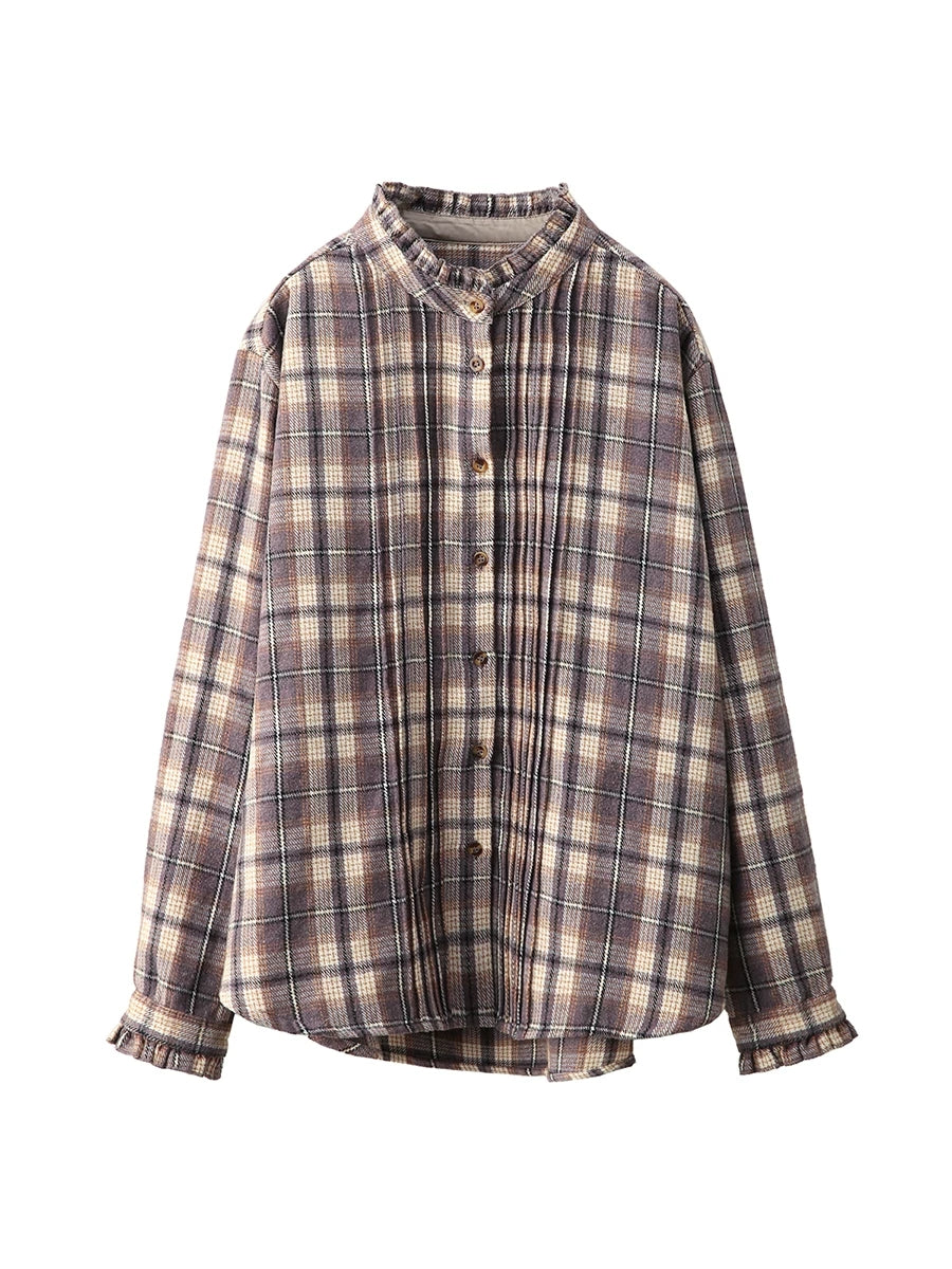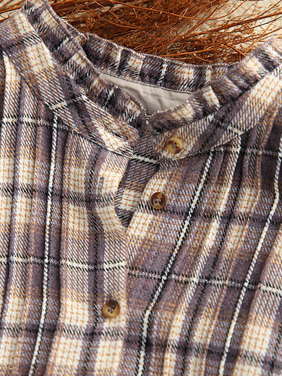 Women Spring Vintage Plaid Turn-down Collar Shirt