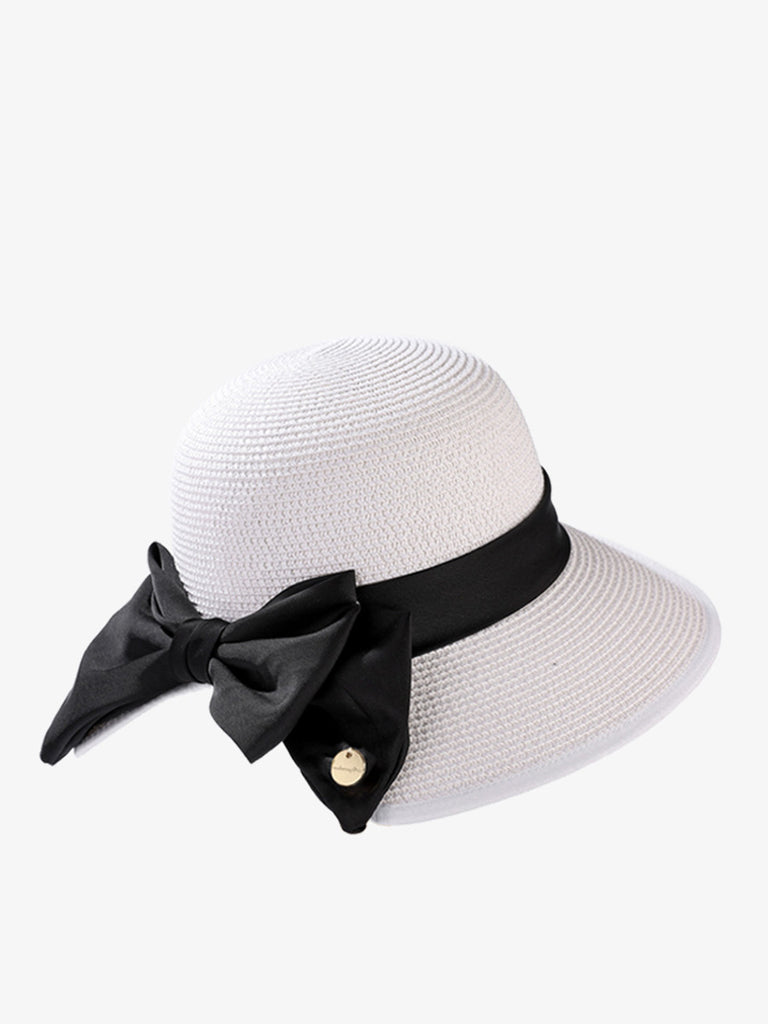 Women Straw Weave Stain Bowknot Sunproof Hat
