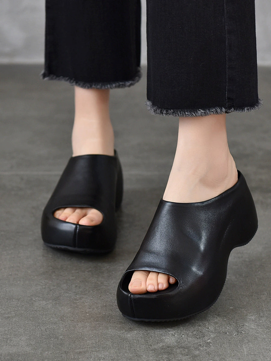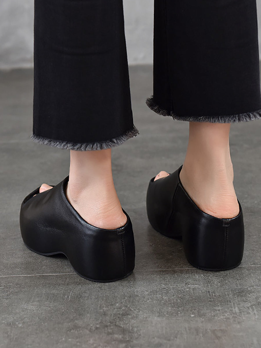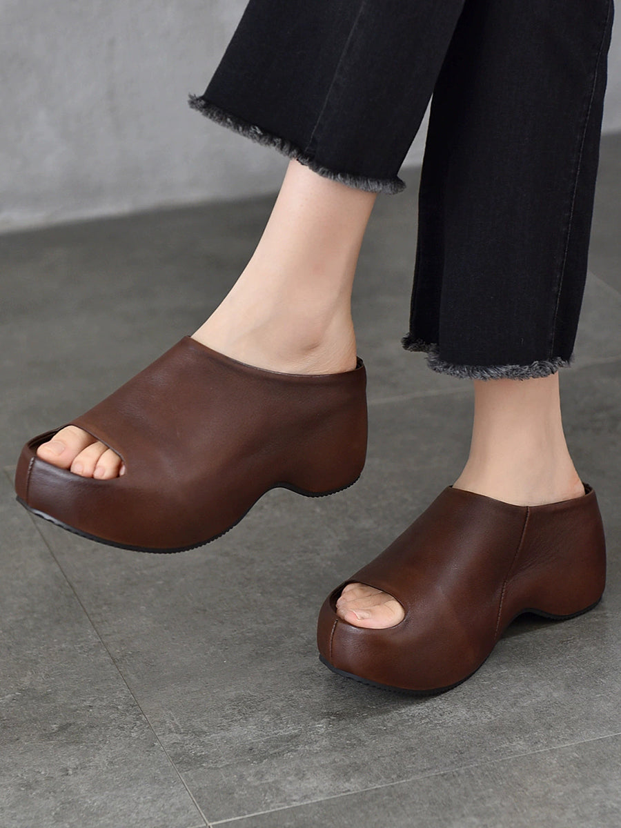 Women Summer Genuine Leather Platform Slippers