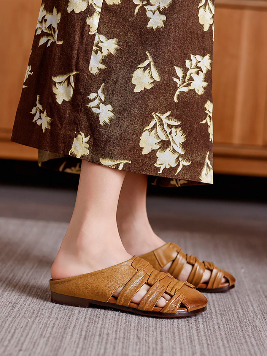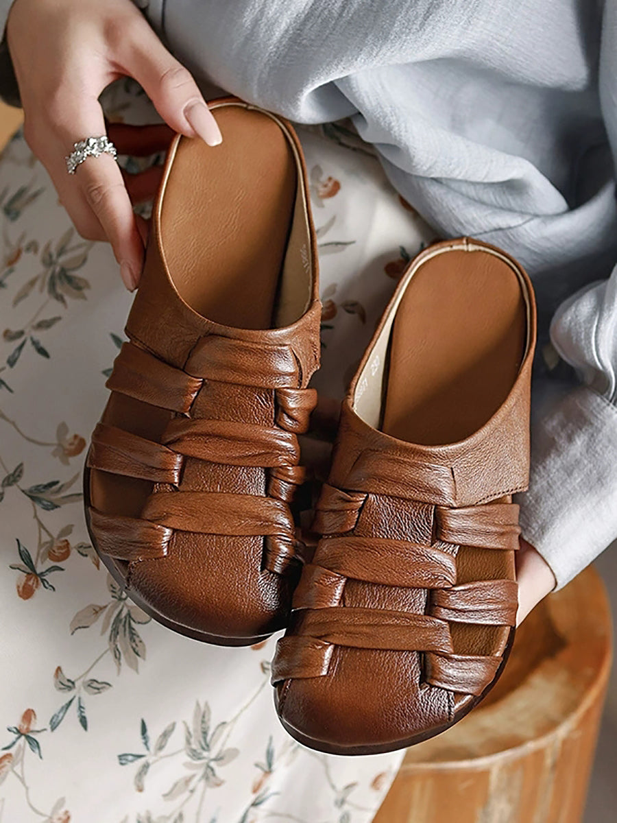 Women Summer Genuine Leather Weave Slippers
