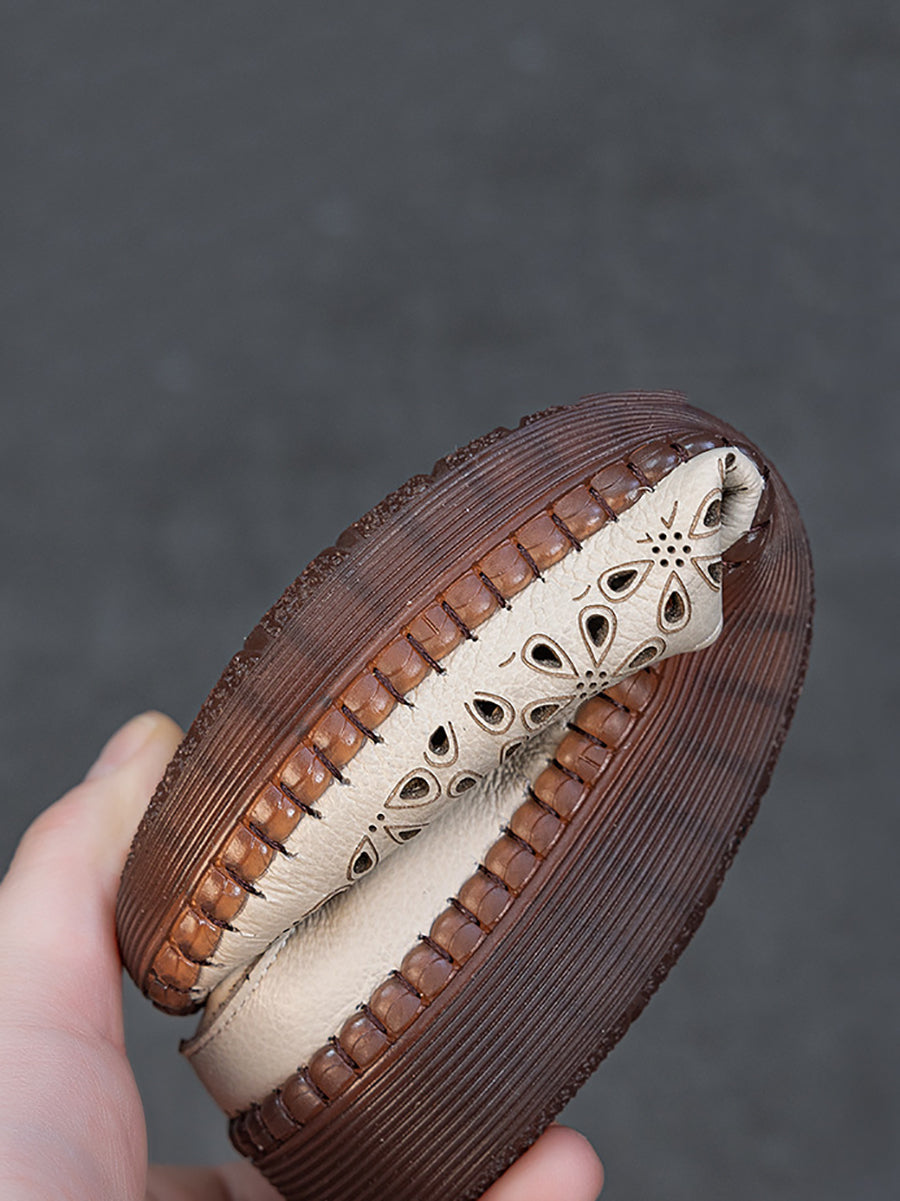 Women Summer Hollow Out Leather Flat Sandals