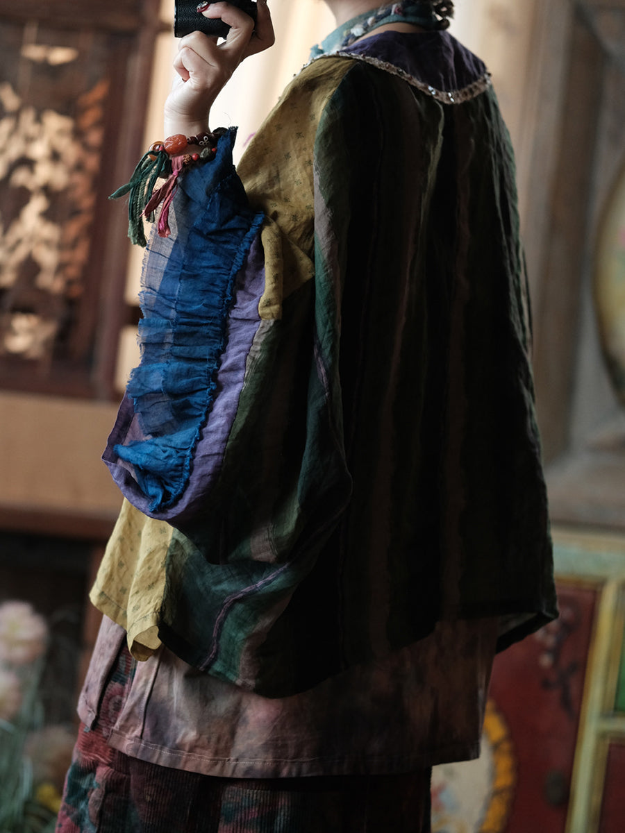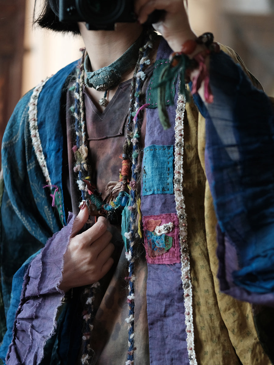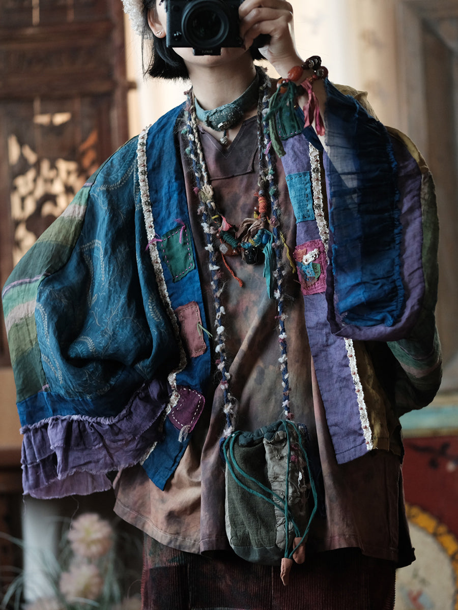 Women Summer Vintage Patchwork Ramie Shirt Coat