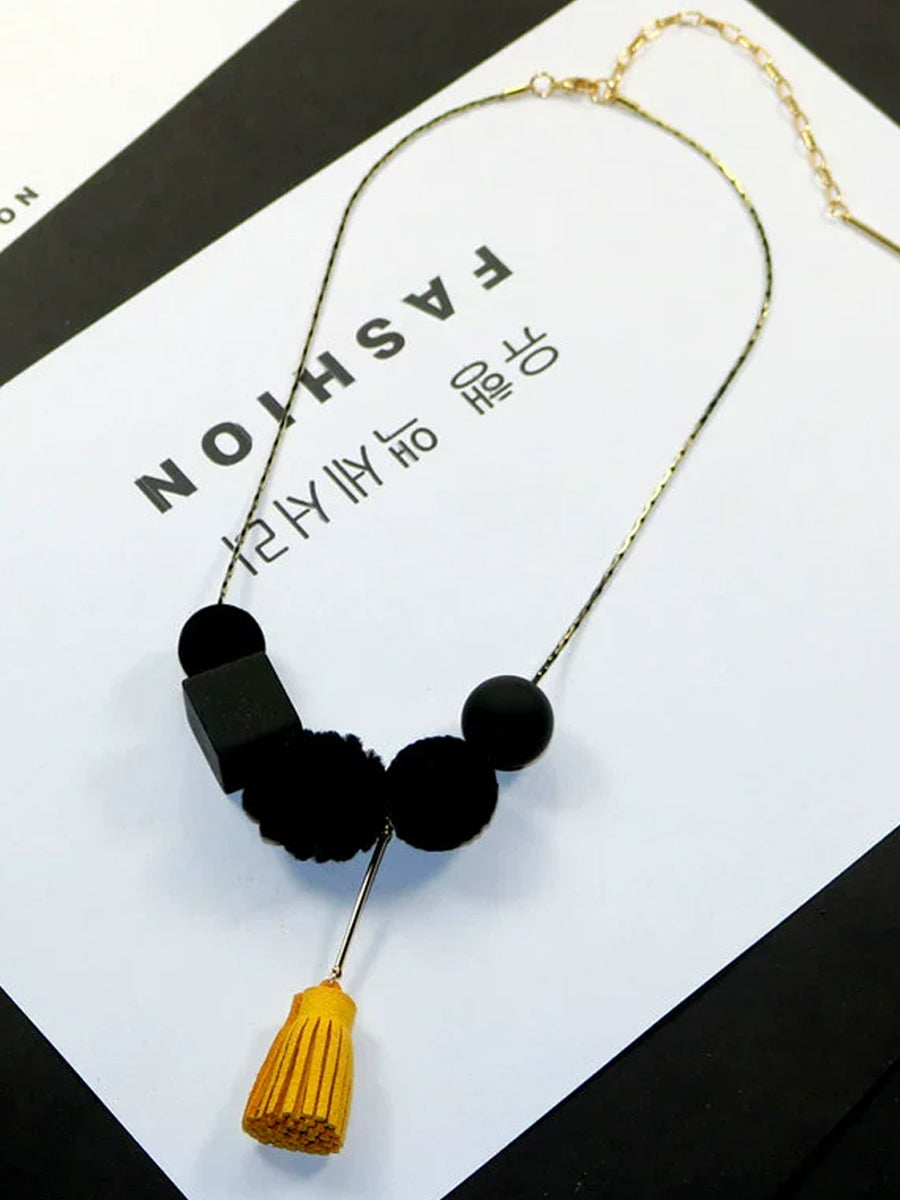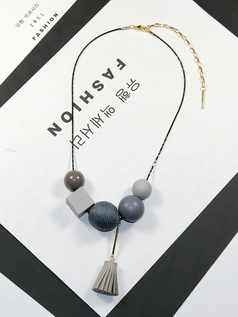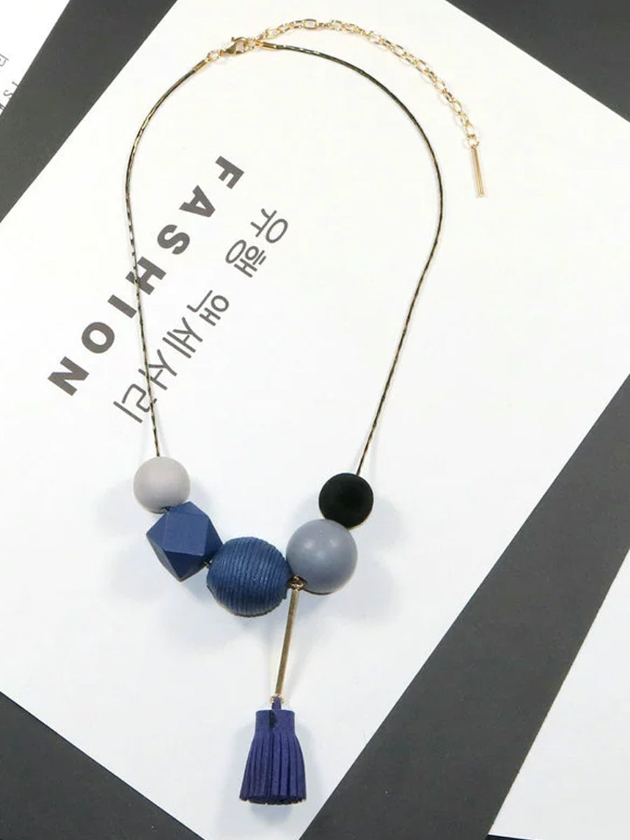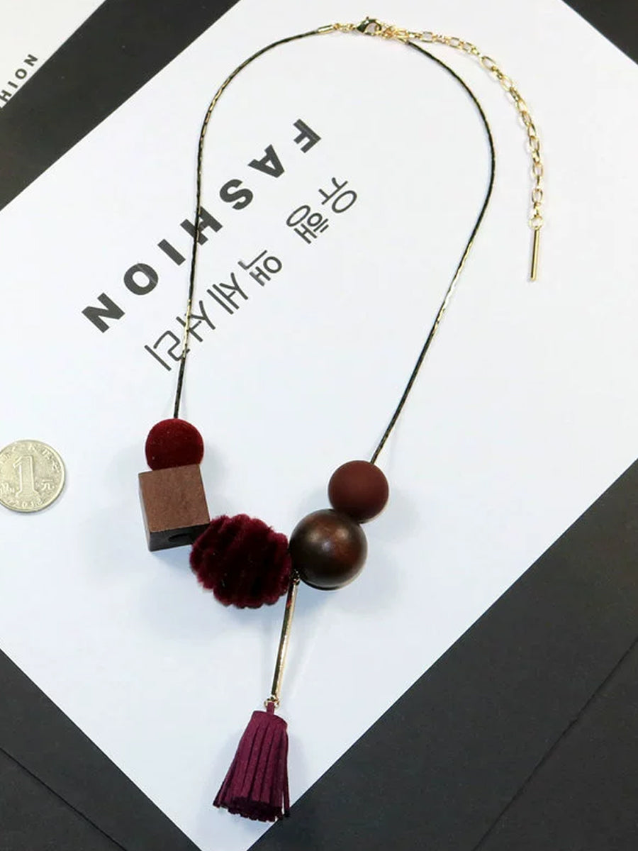 Women Vintage Alloy Wood Line Ball Necklace