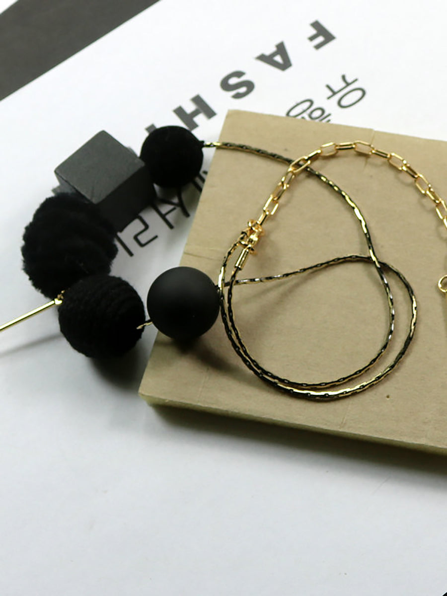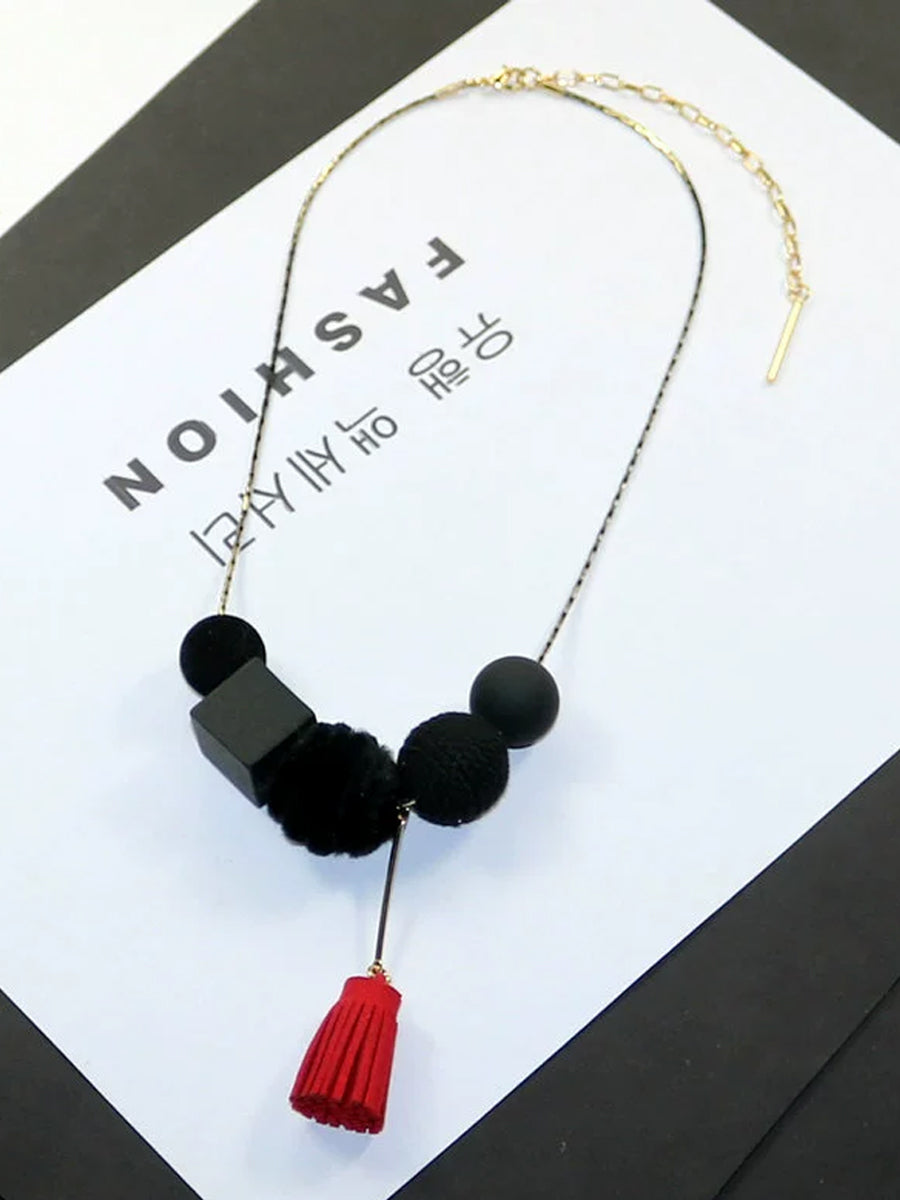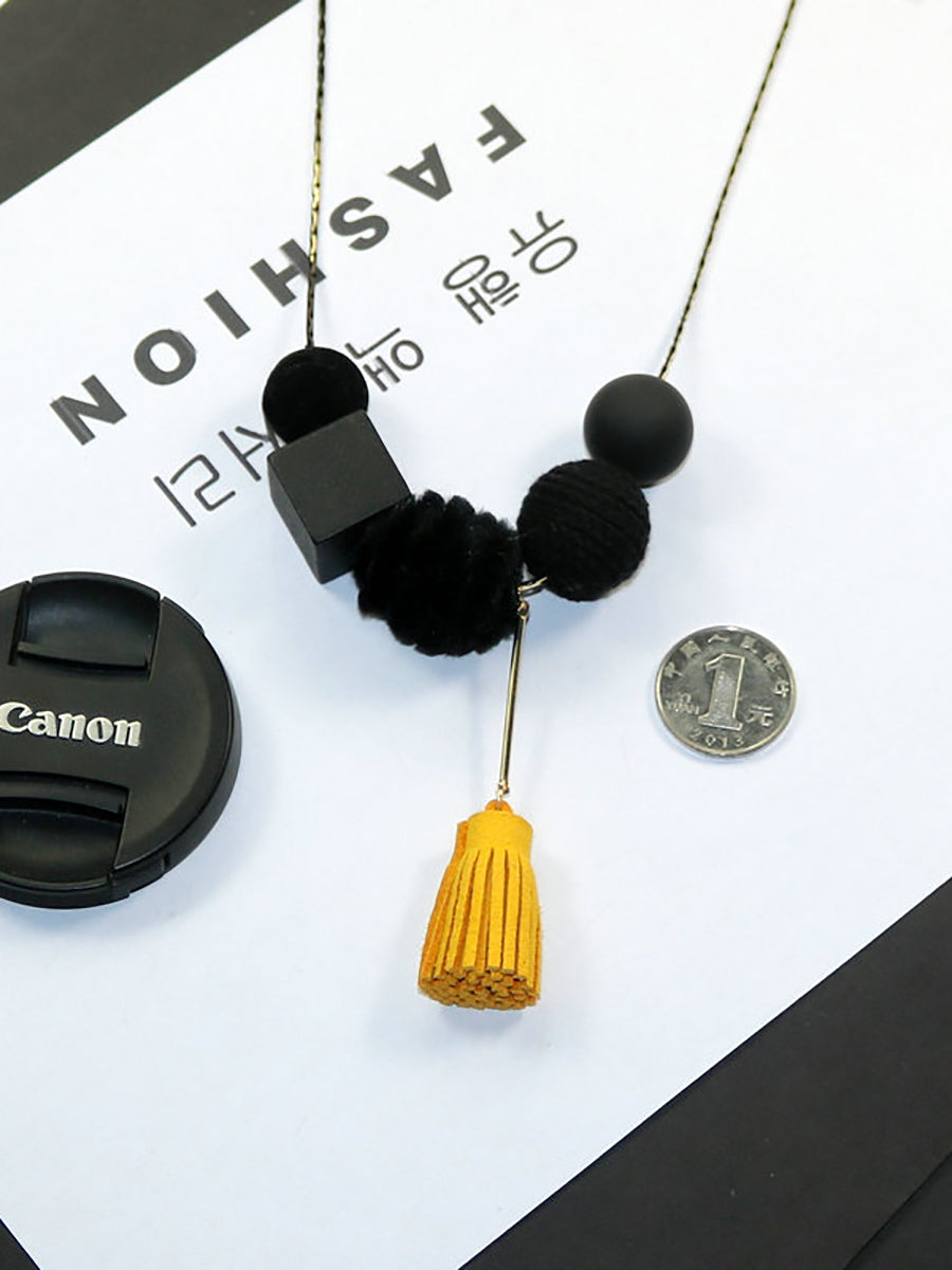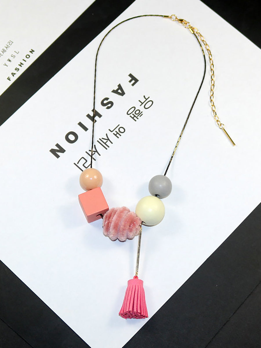 Women Vintage Alloy Wood Line Ball Necklace