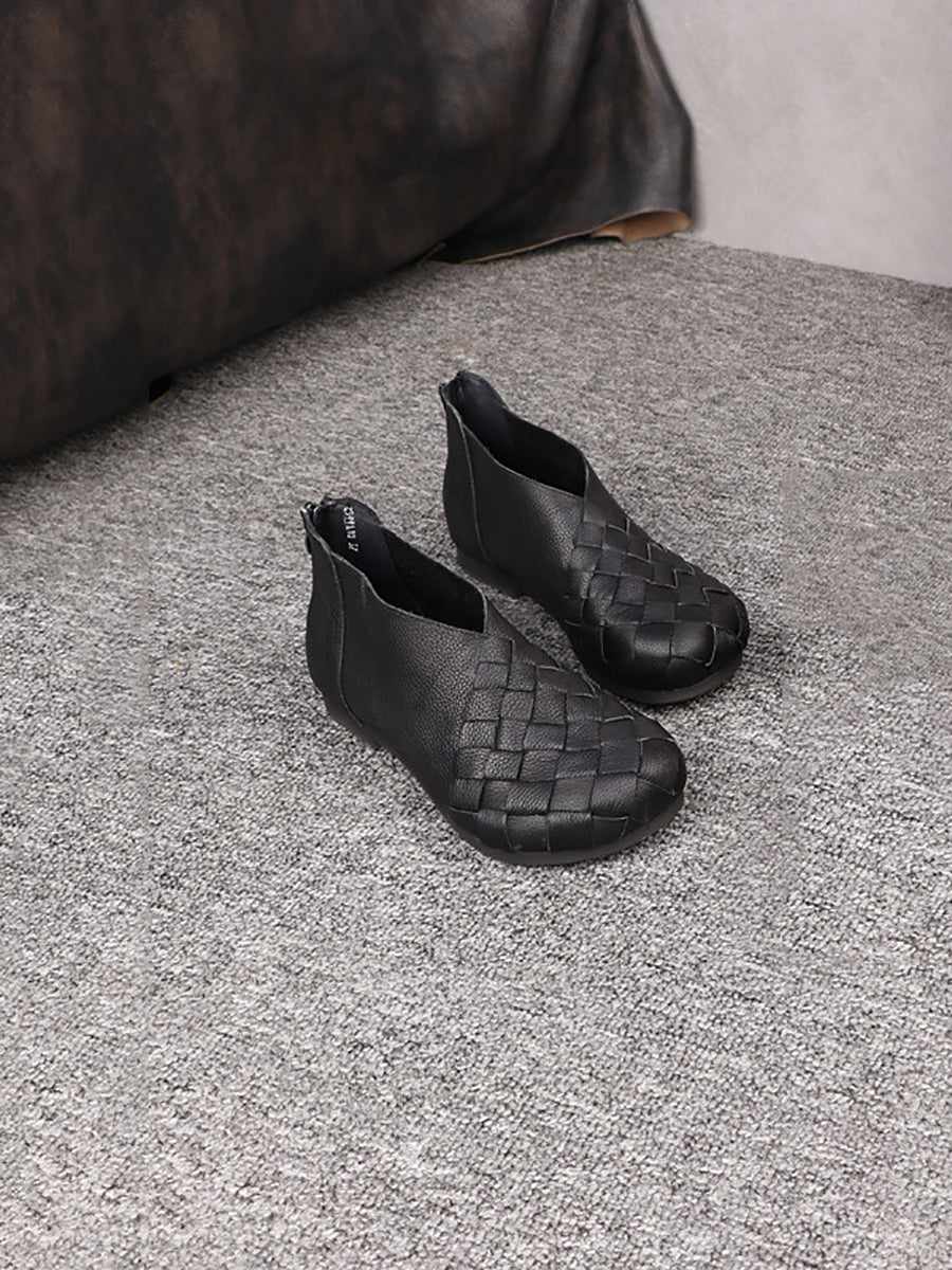 Women Vintage Genuine Leather Weave Low Heel Shoes