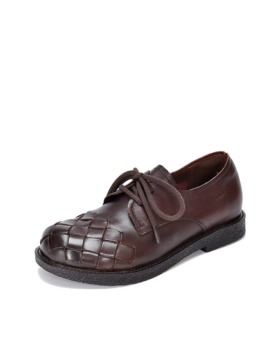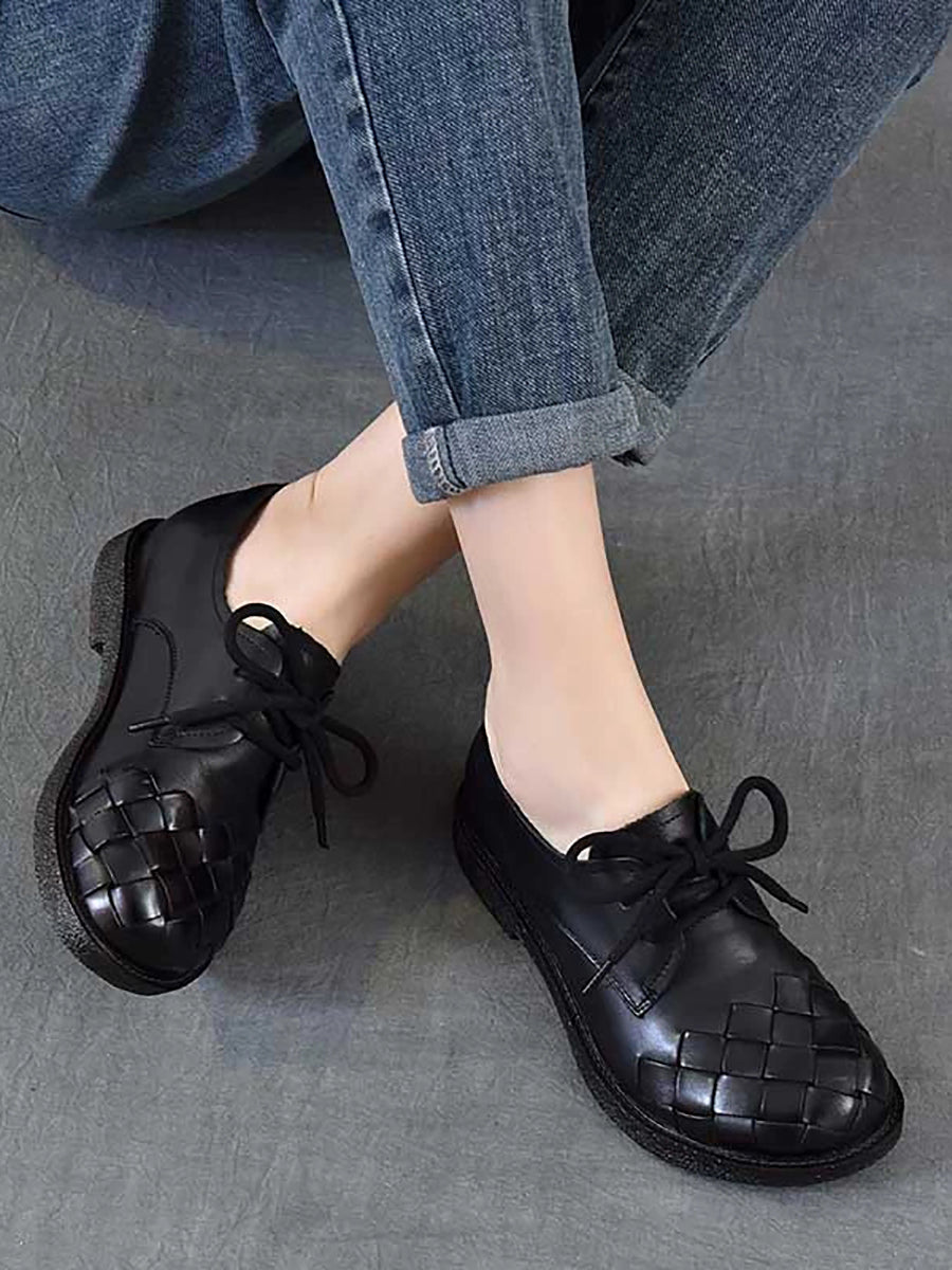 Women Vintage Genuine Leather Weave Low Heel Shoes
