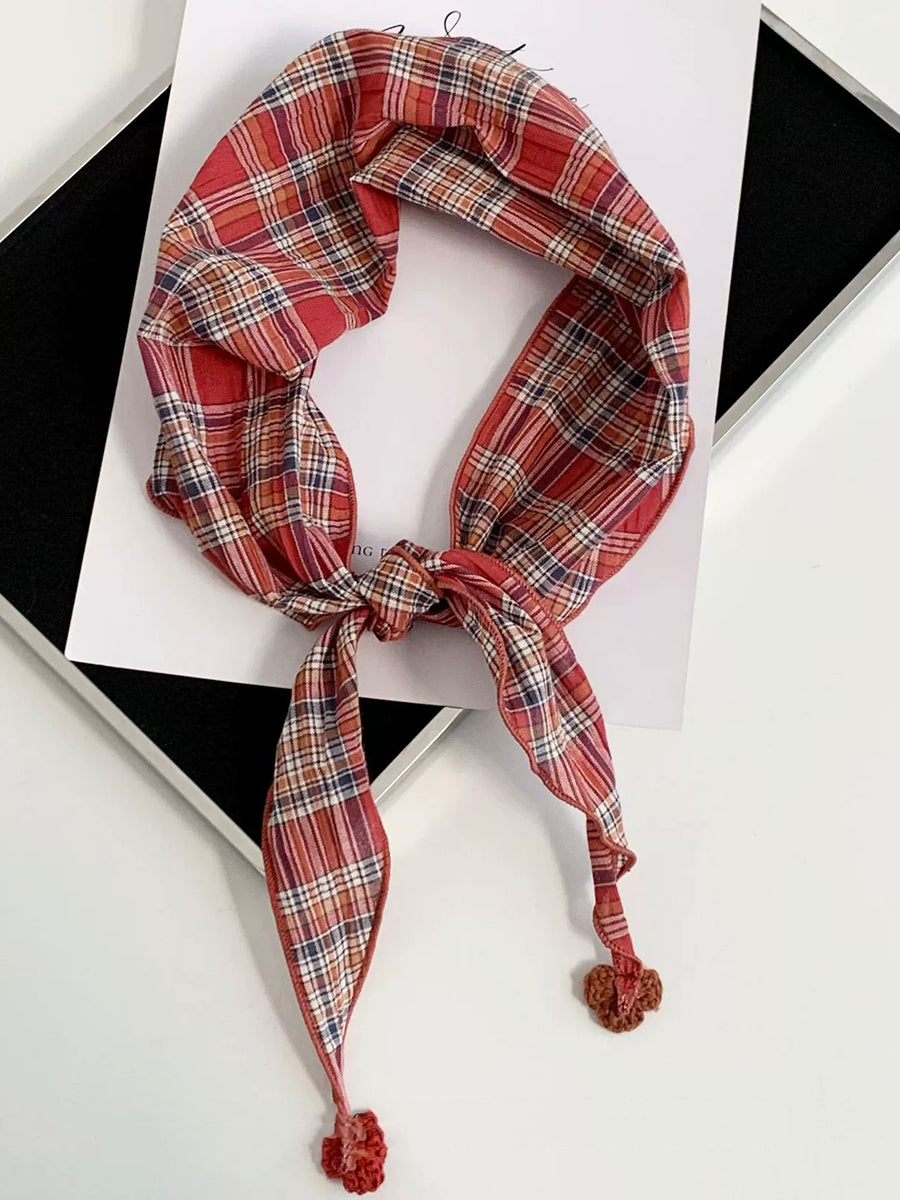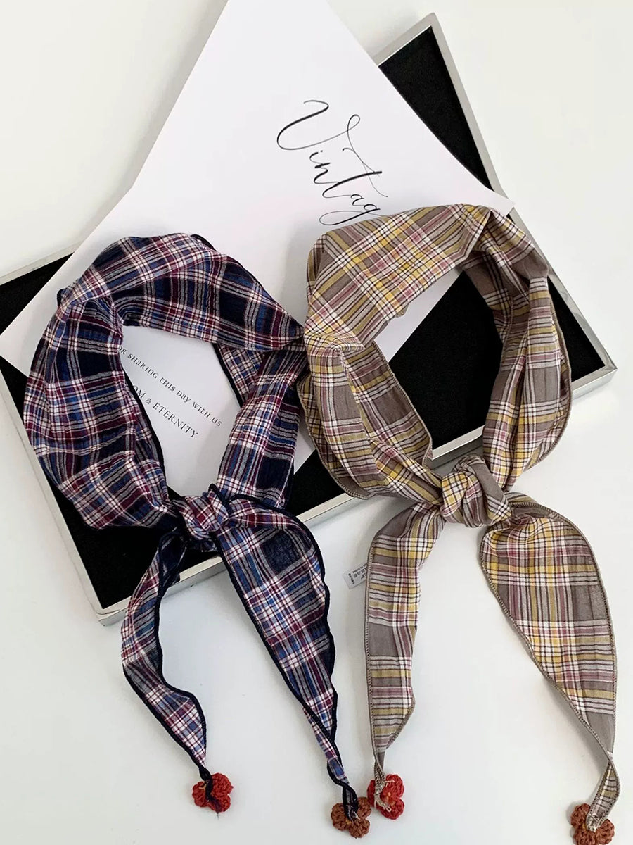 Women Vintage Plaid Triangle Scarf