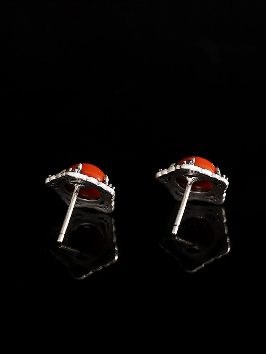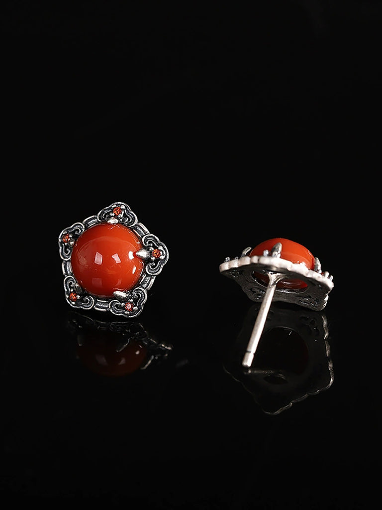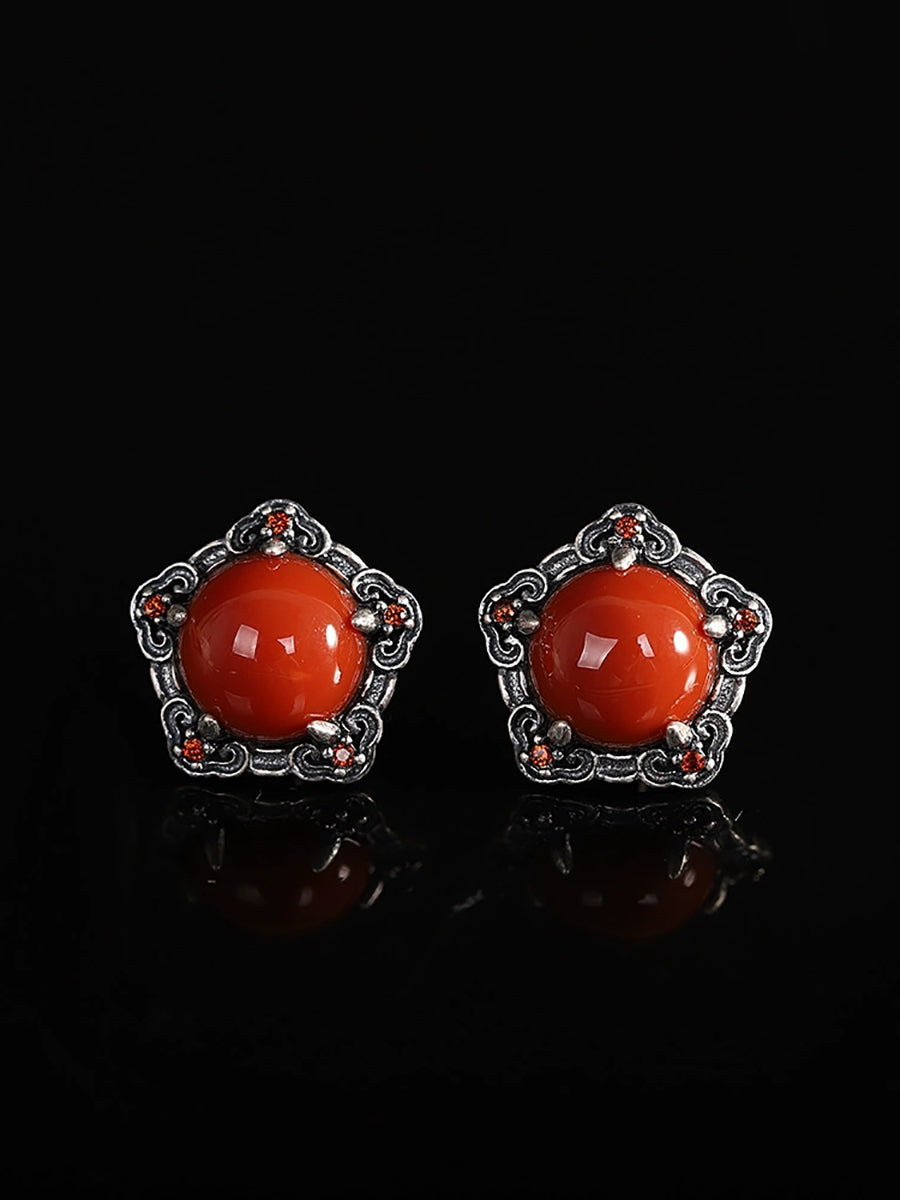 Women Vintage S925Silver Red Agate Earrings
