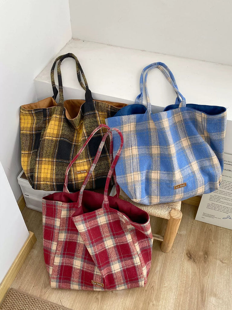 Women Winter Artsy Plaid Canvas Shoulder Bag