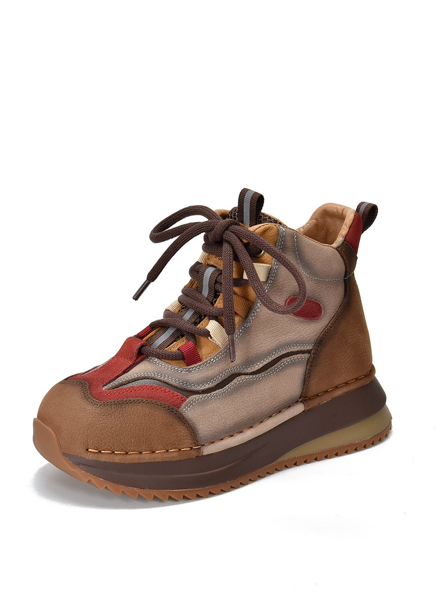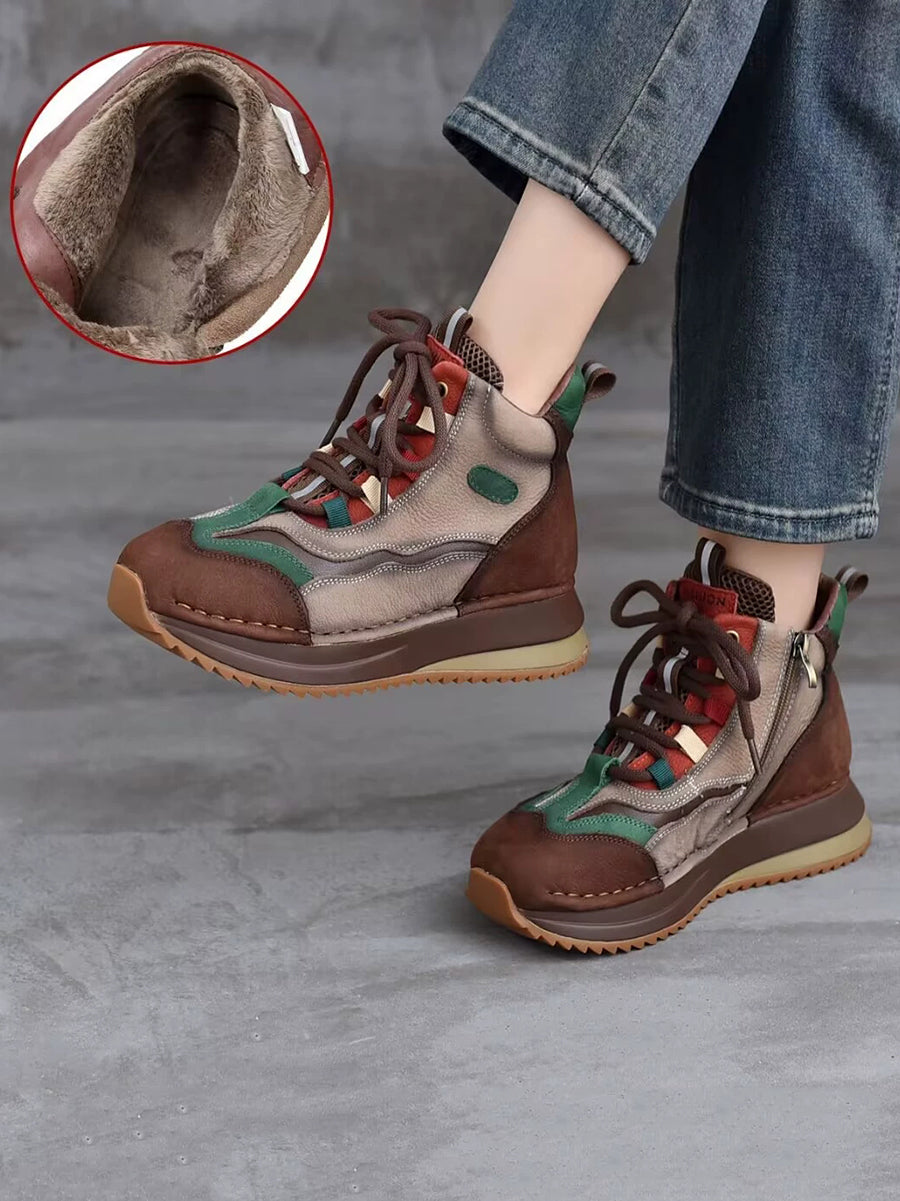 Women Winter Genuine Leather Colorblock Ankle Boots