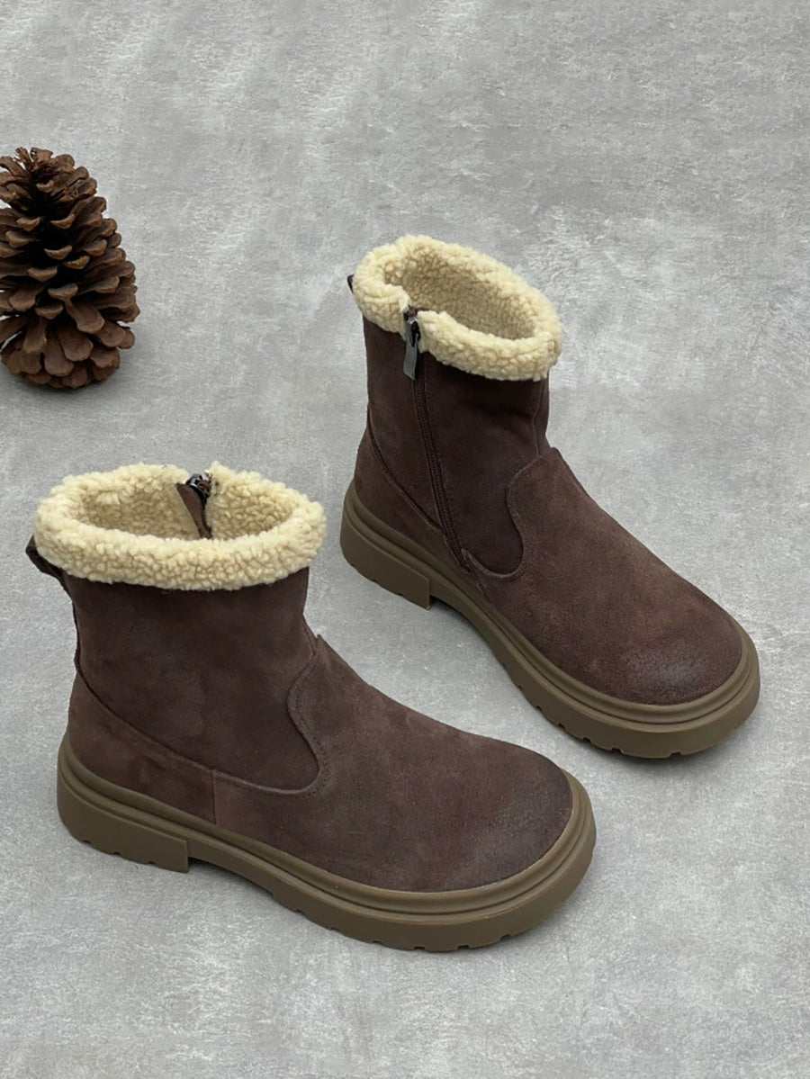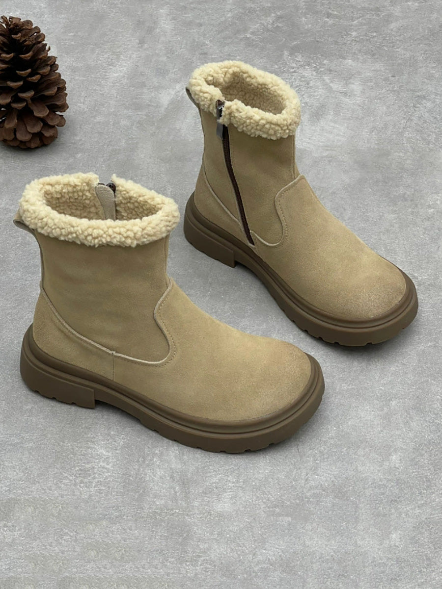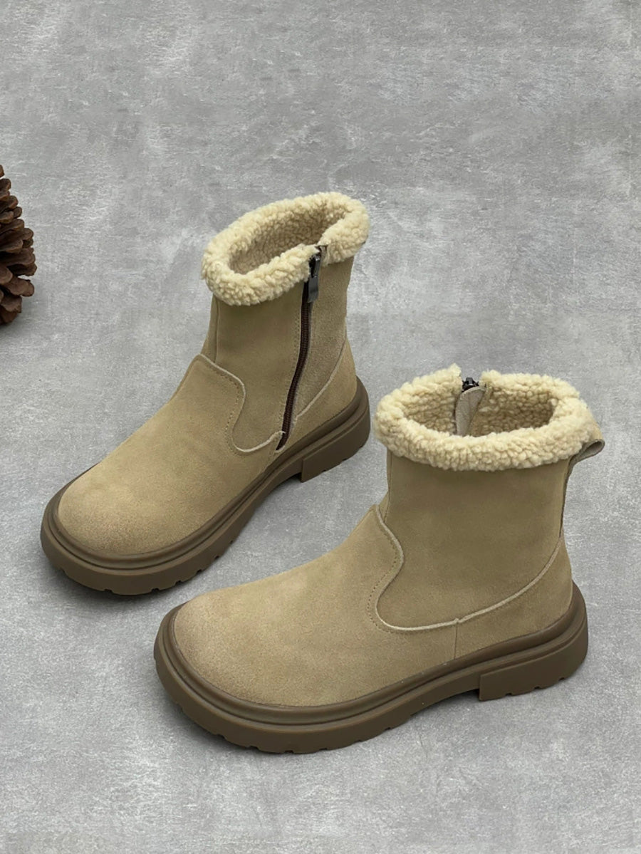 Women Winter Genuine Leather Fleece-lined Boots