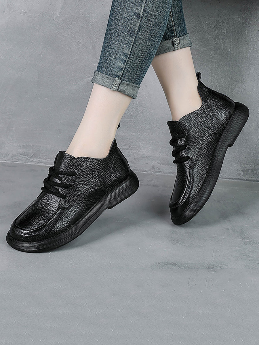 Women Winter Genuine Leather Low Heel Shoes