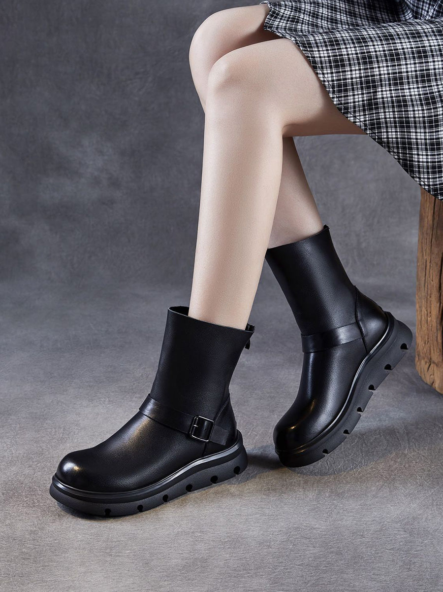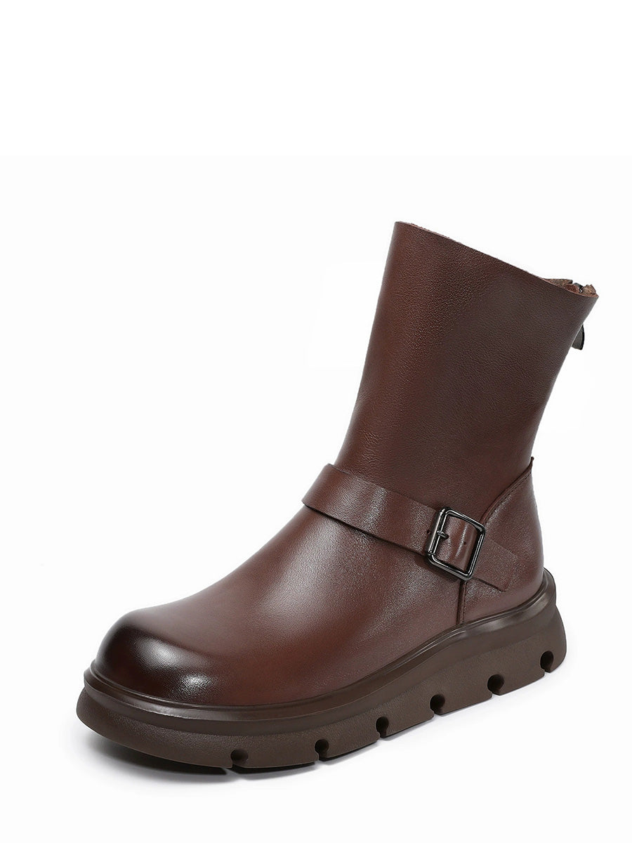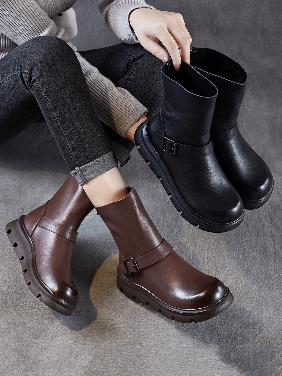 Women Winter Genuine Leather Mid-calf Martin Boots