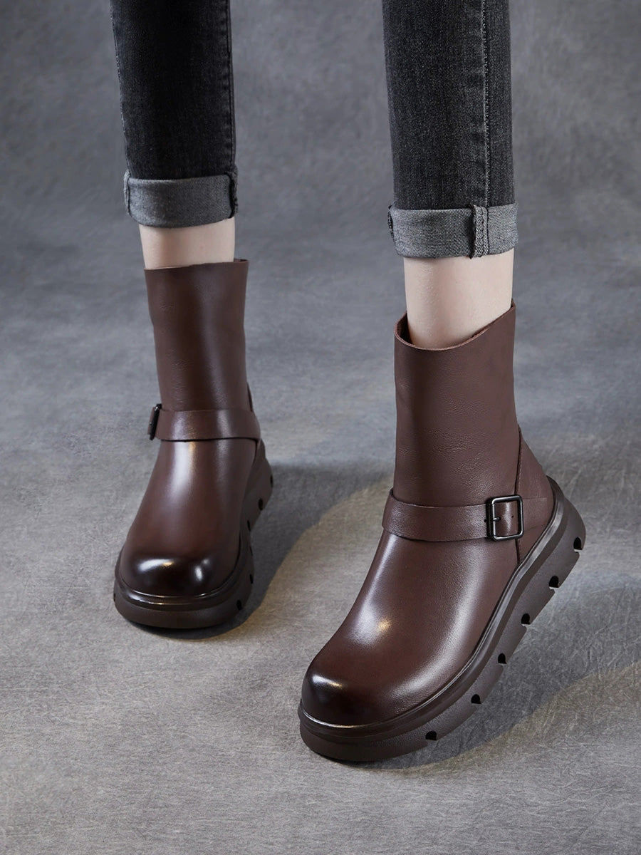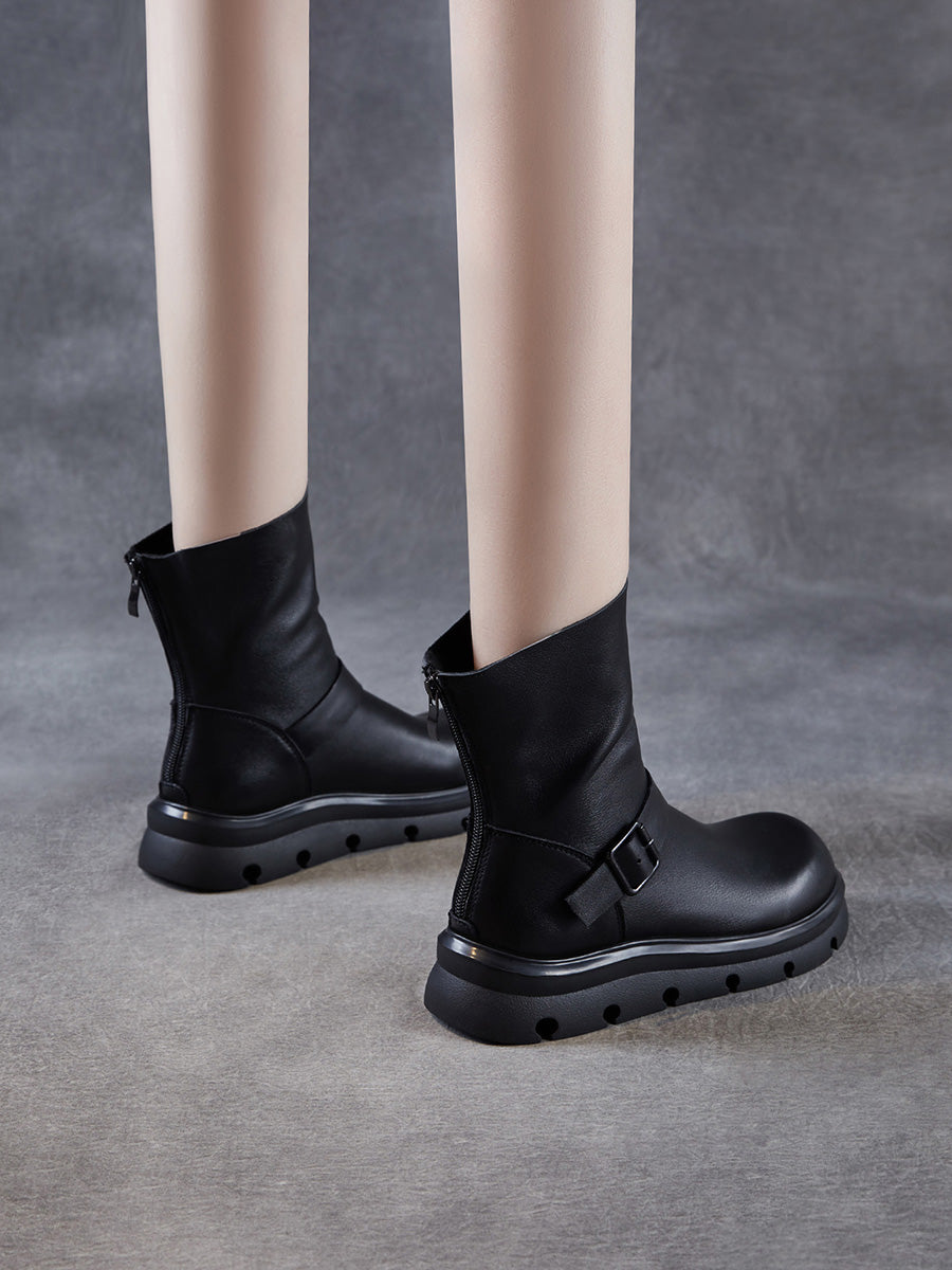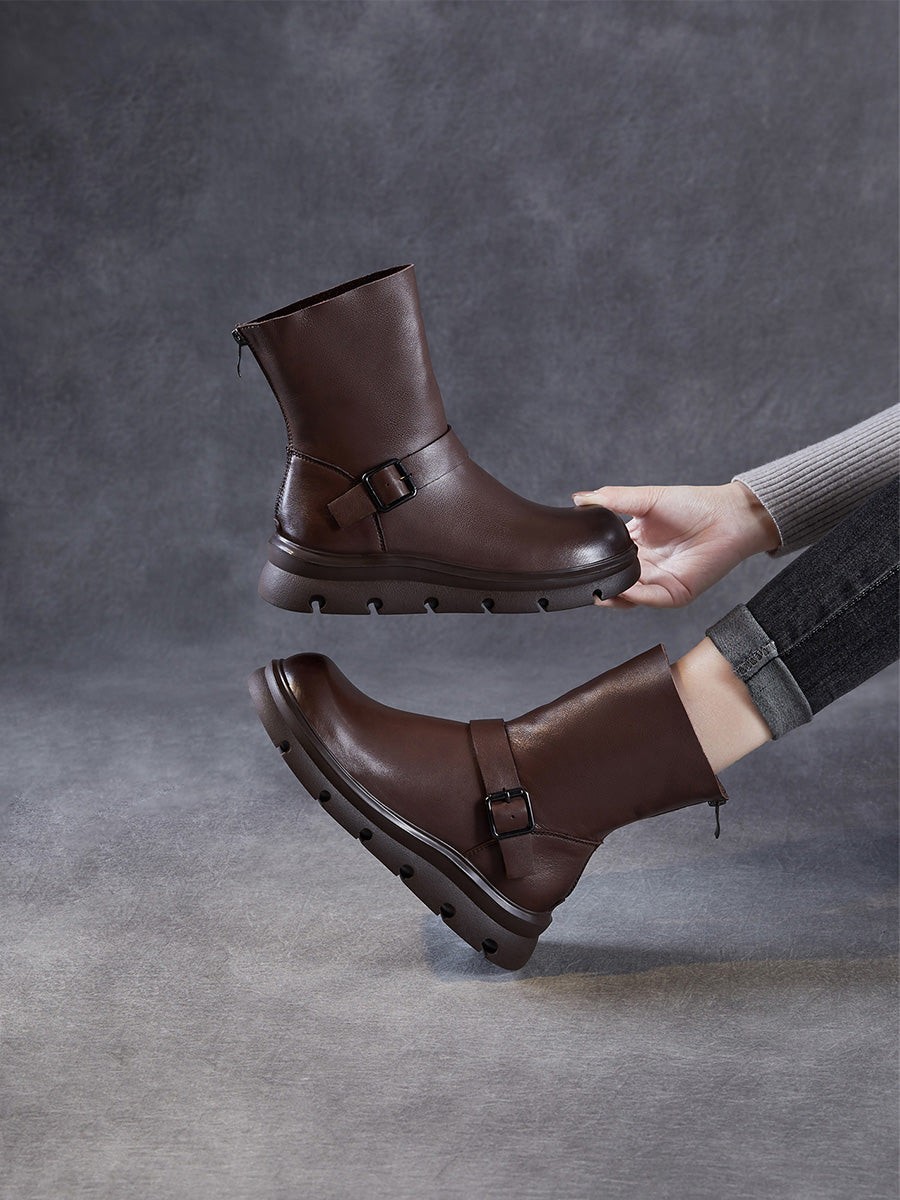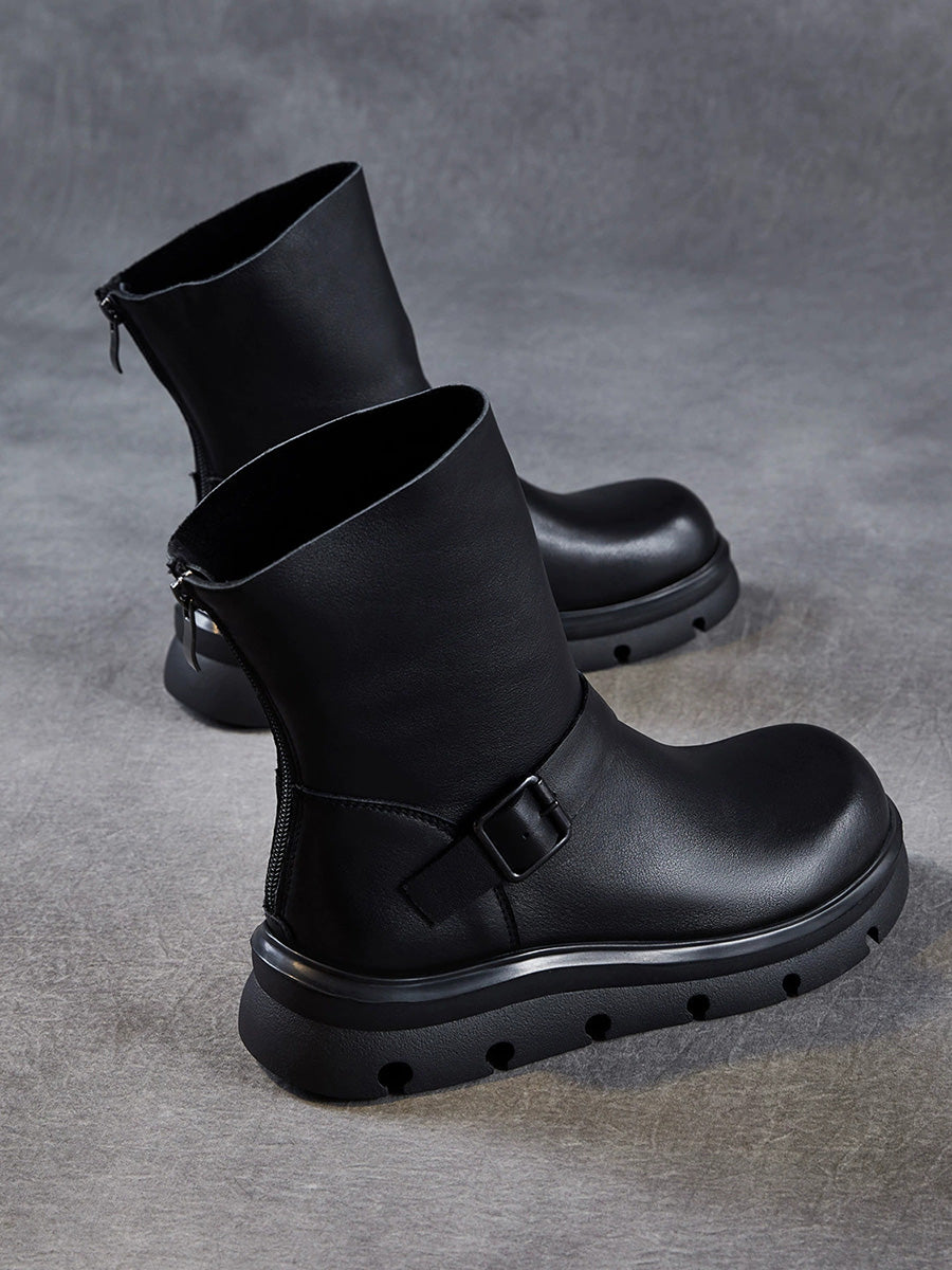 Women Winter Genuine Leather Mid-calf Martin Boots