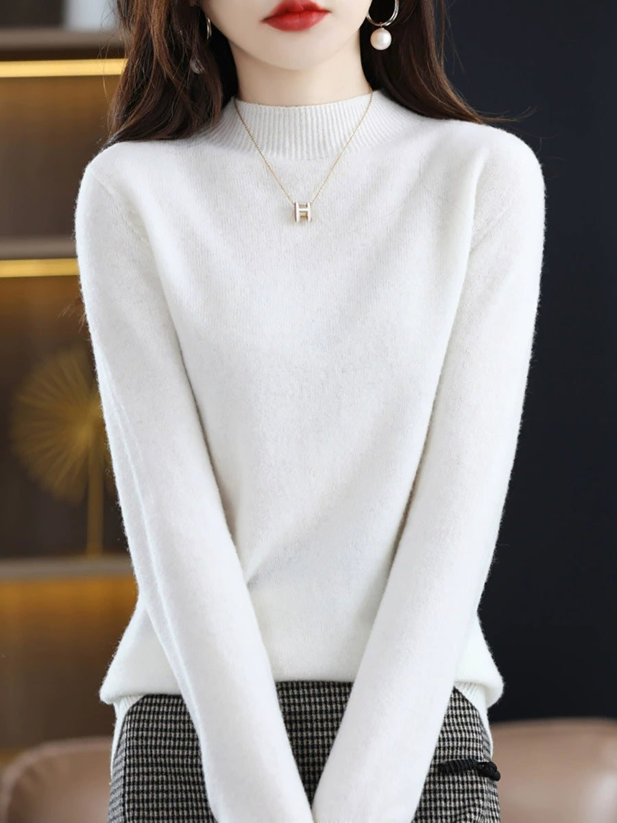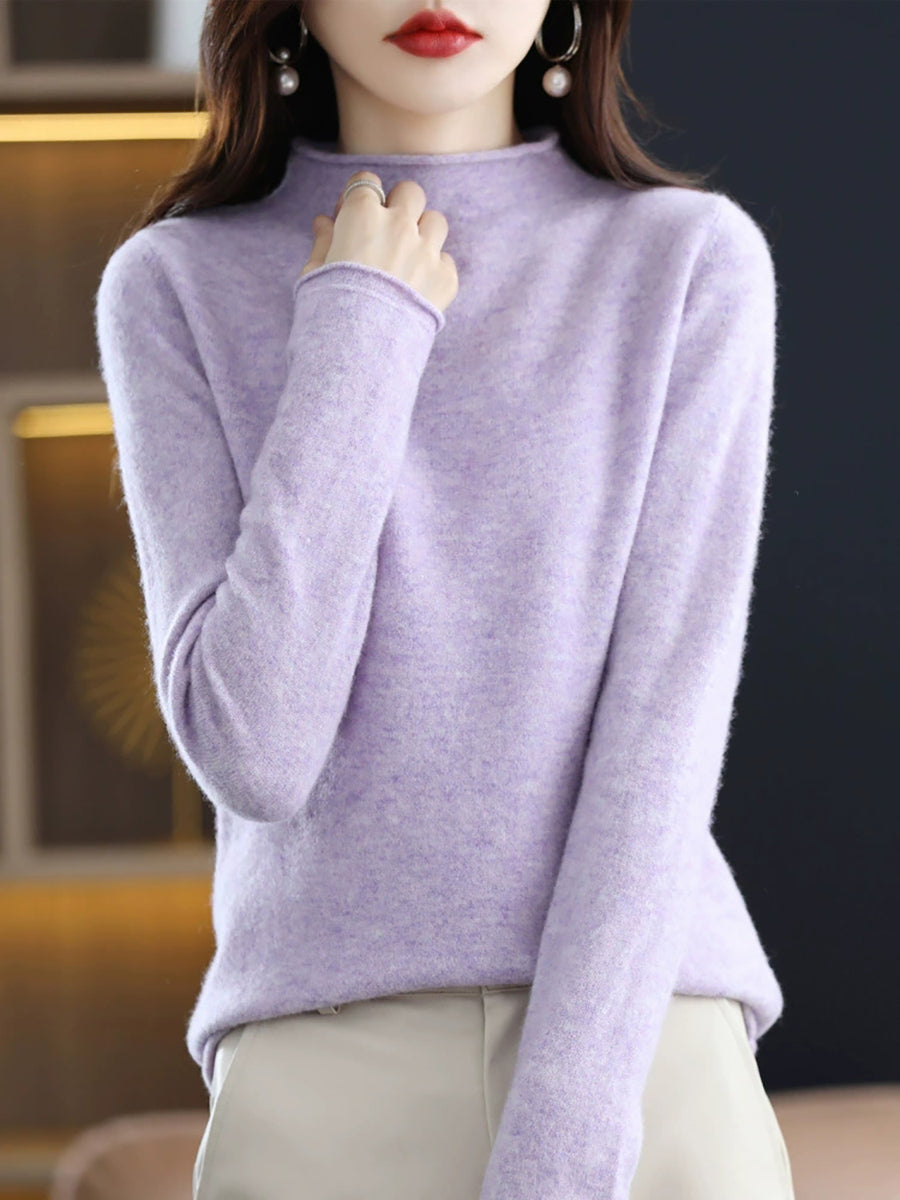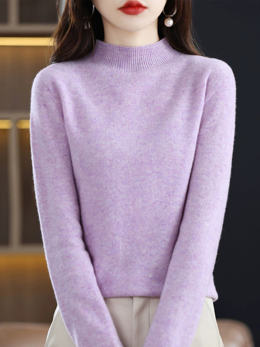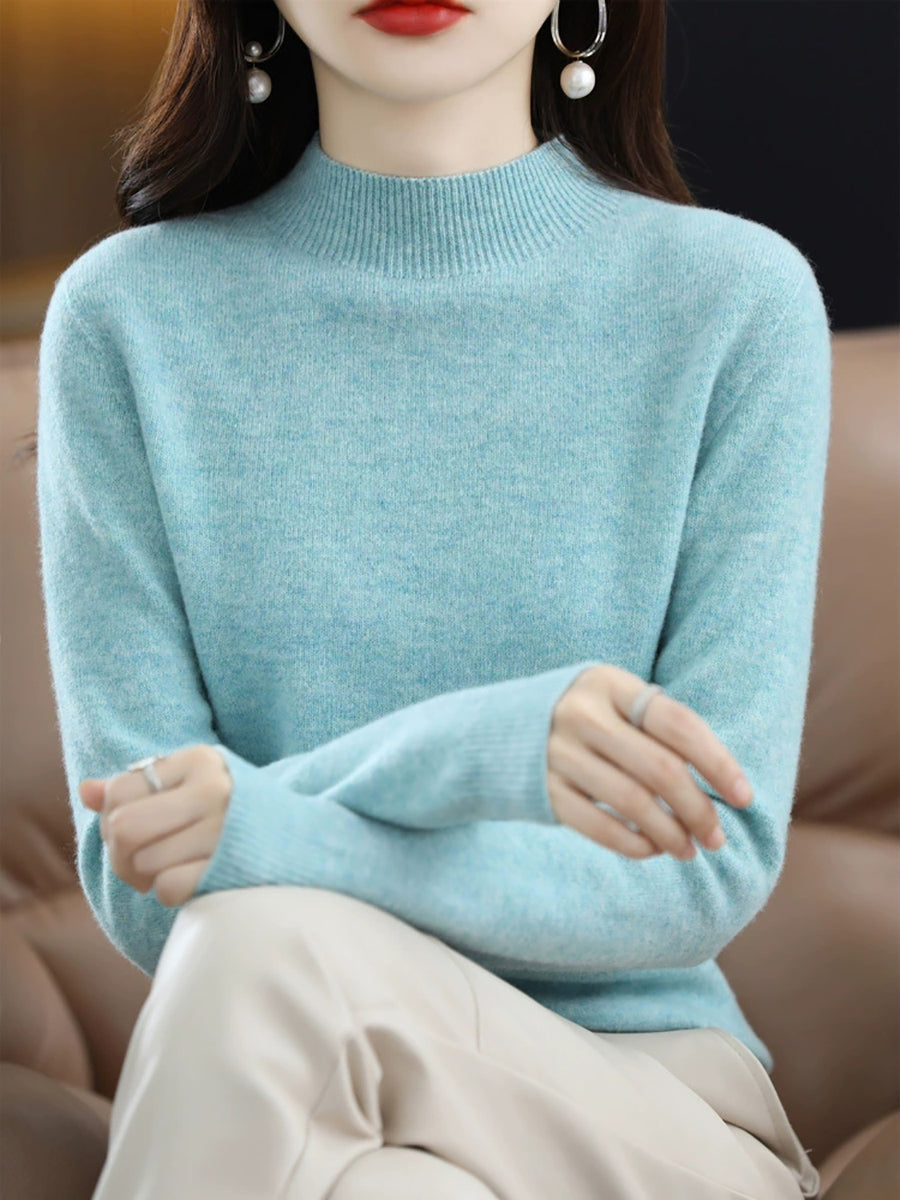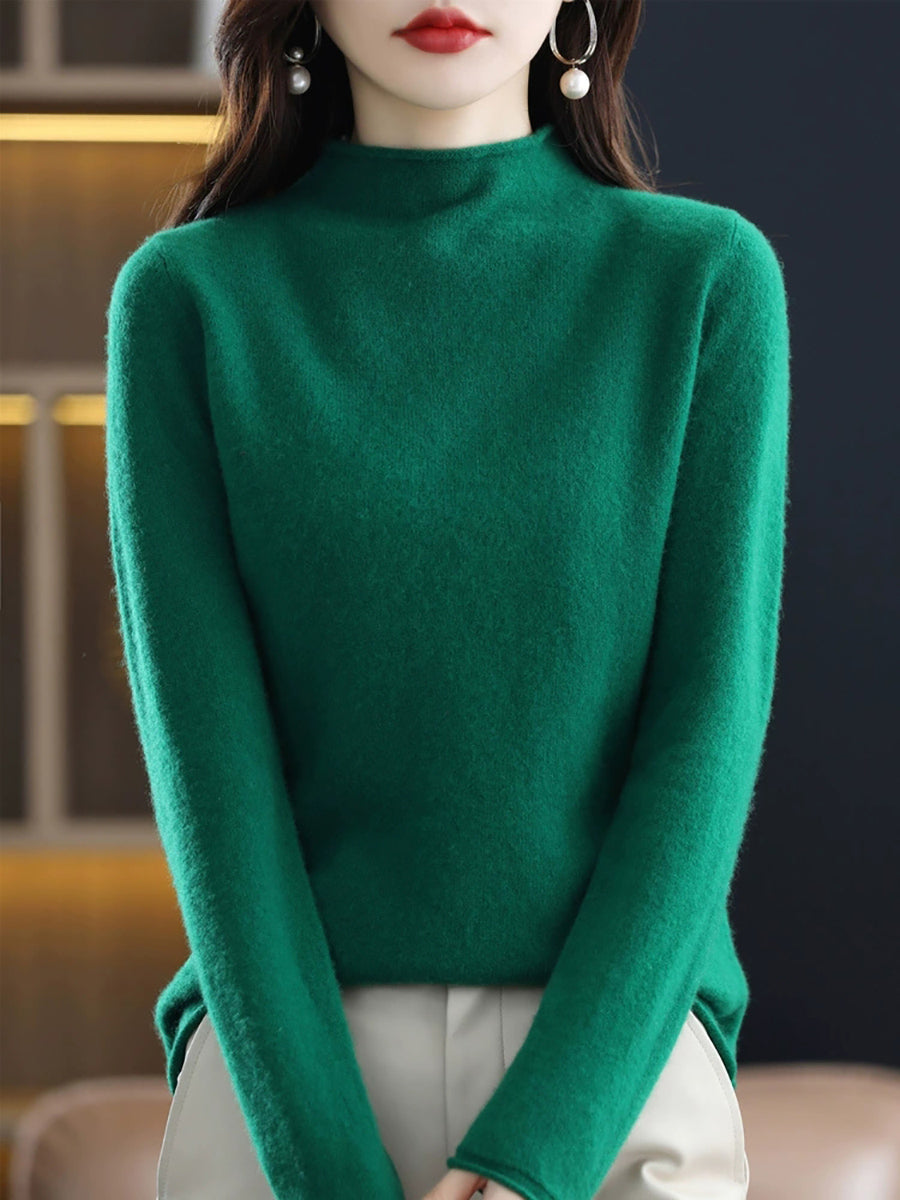 Women Winter Pure Color Wool Half-Turtleneck Sweater
