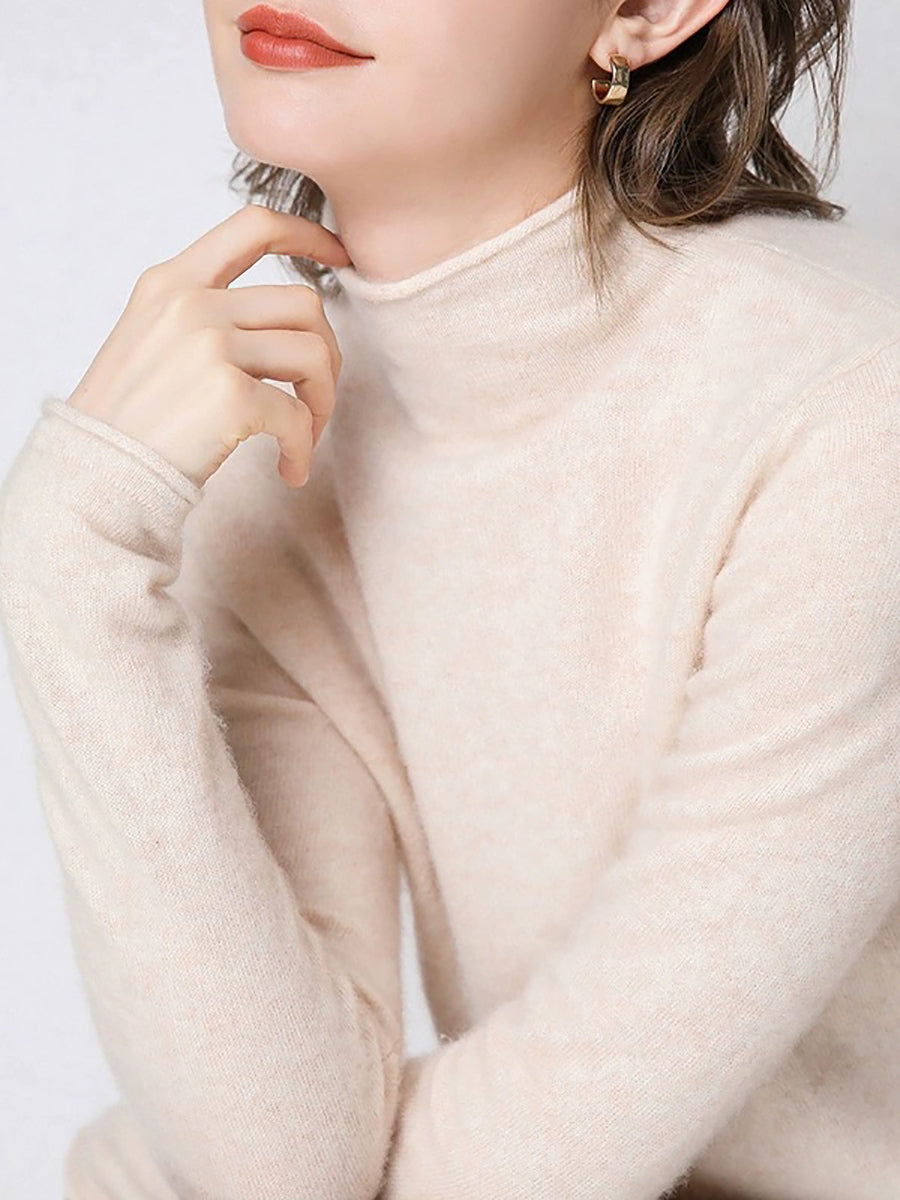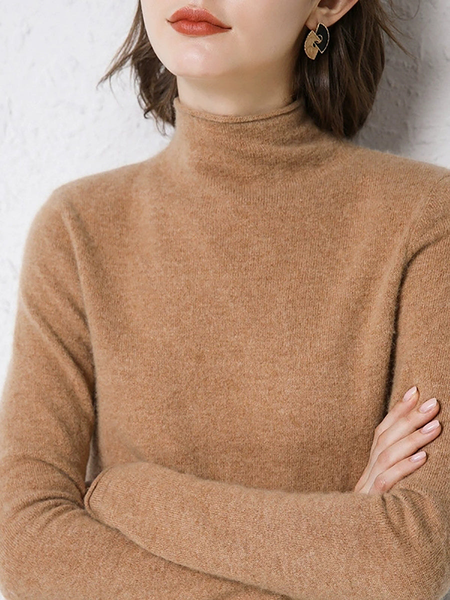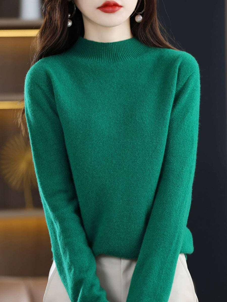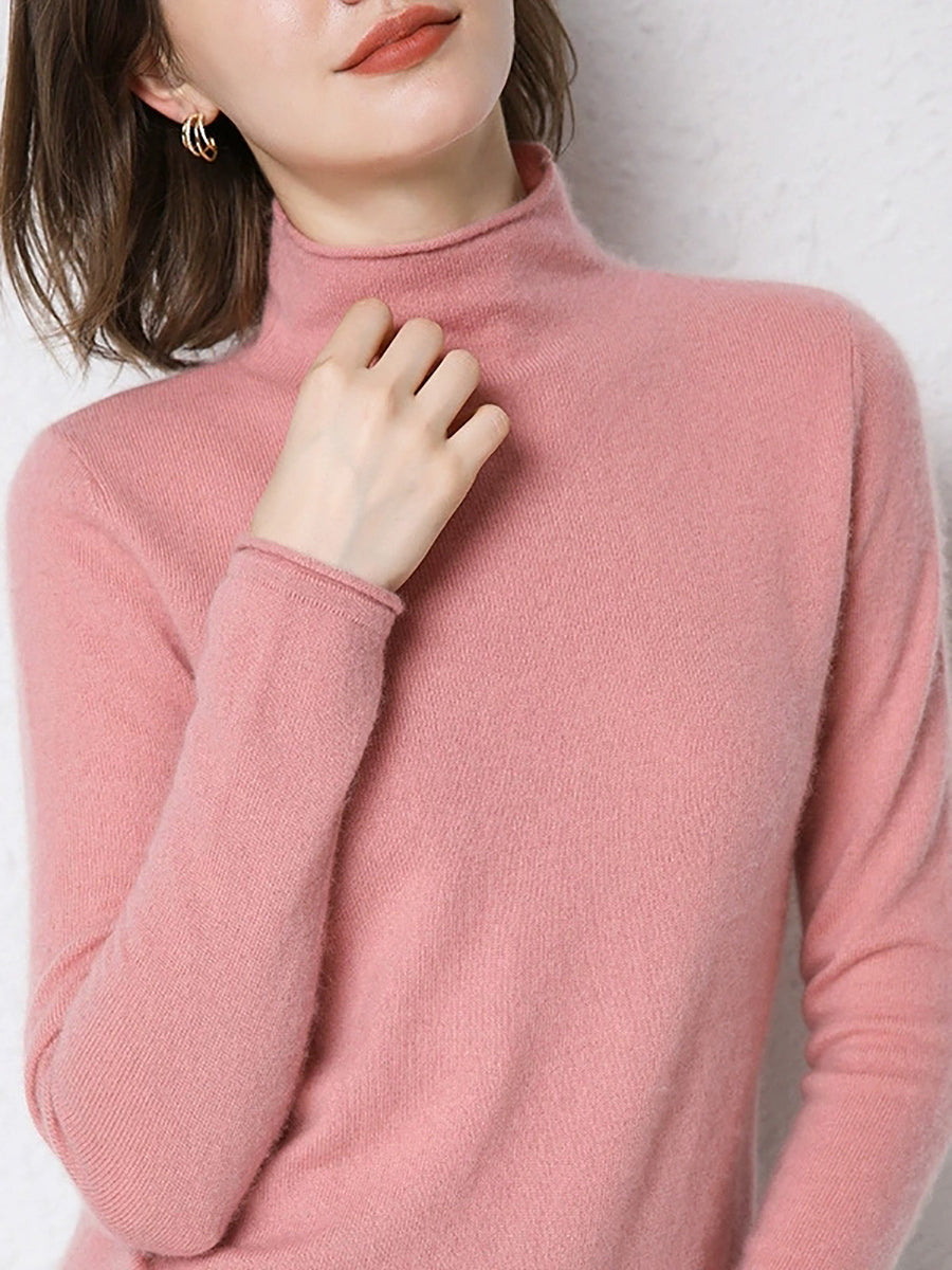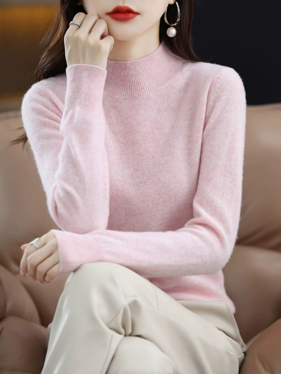 Women Winter Pure Color Wool Half-Turtleneck Sweater