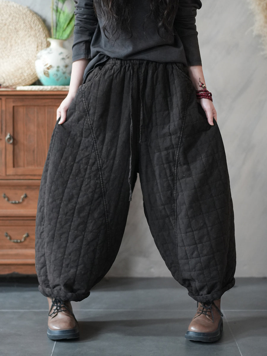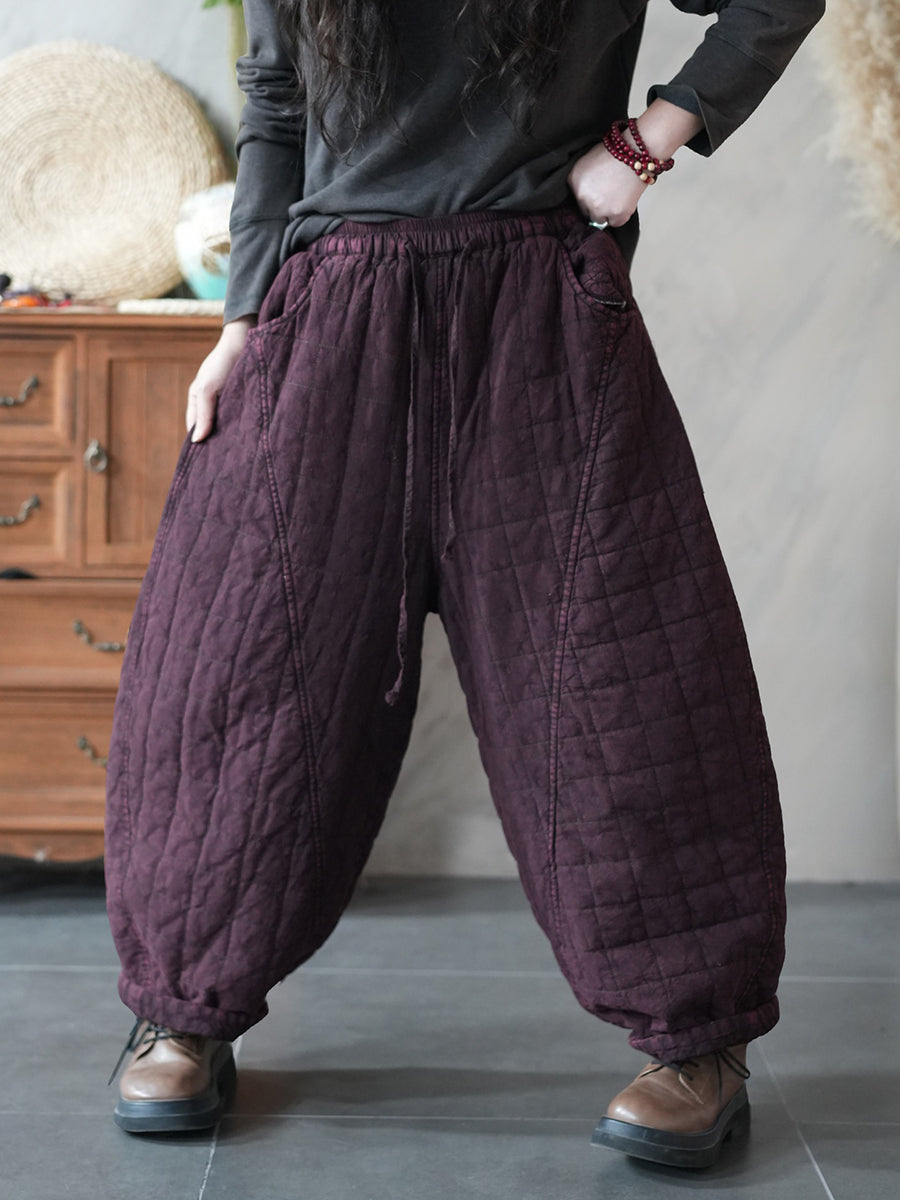 Women Winter Retro Pure Color Padded Harem Pants