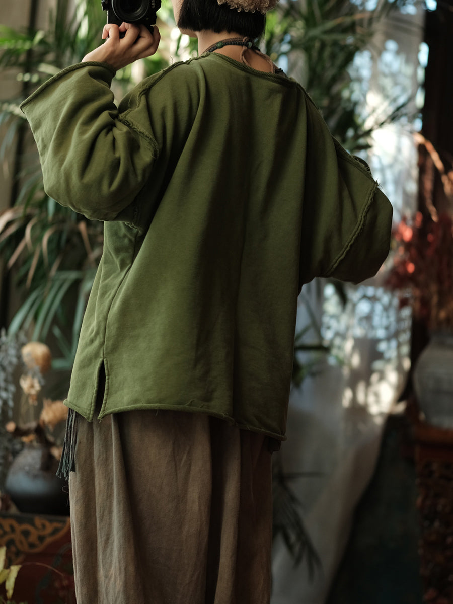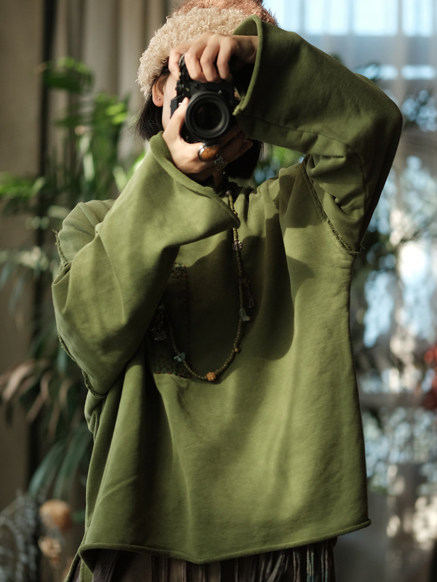 Women Winter Retro Pure Color Stitching O-Neck Blouse