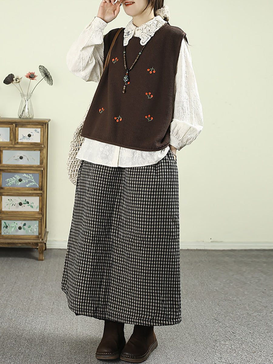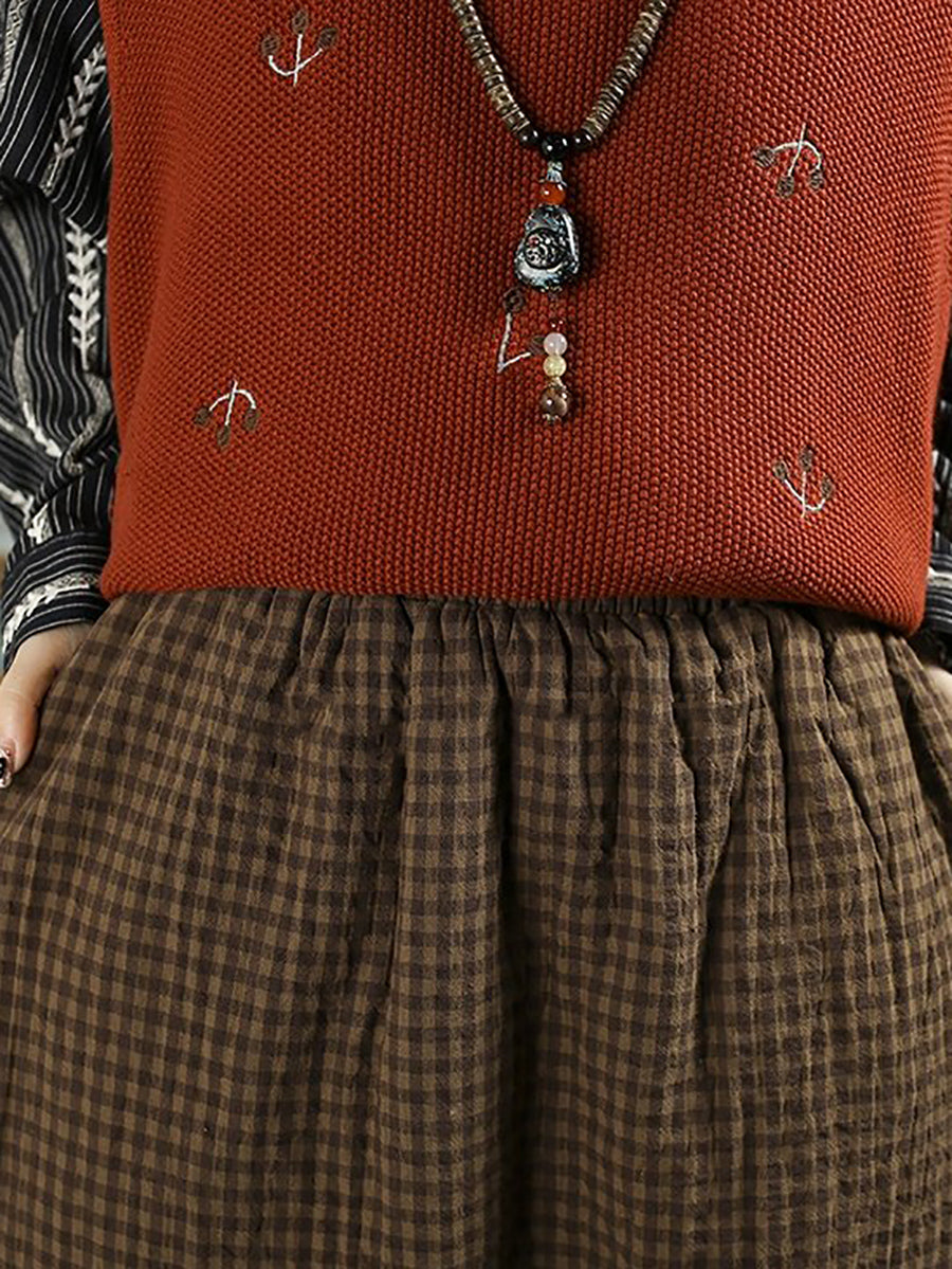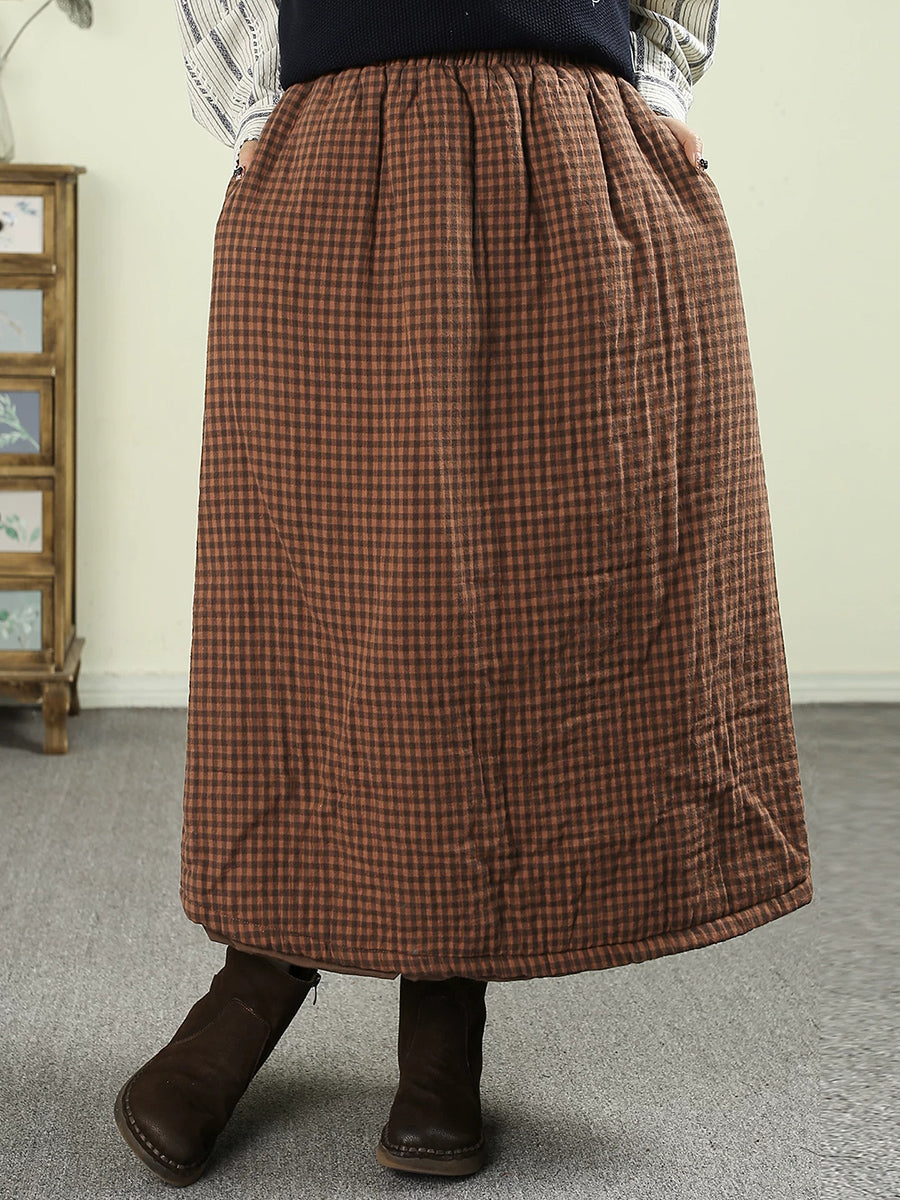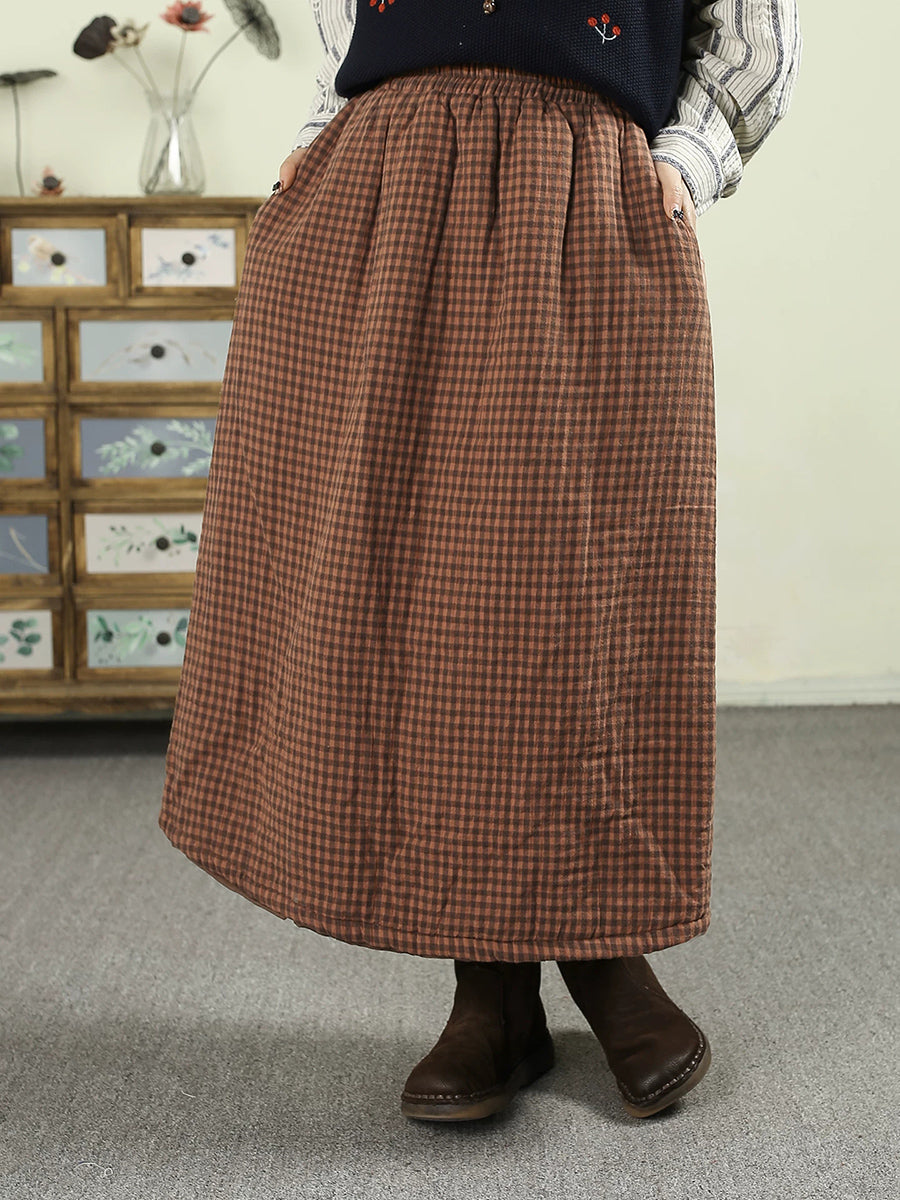 Women Winter Vintage Lattice 100%Cotton Padded Skirt