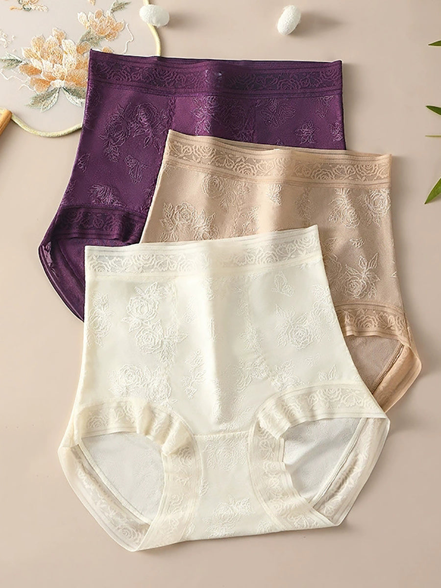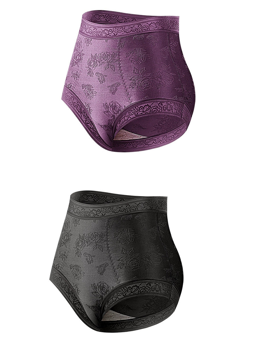 قطعتان من الملابس الداخلية النسائية ذات الخصر العالي والمزينة بالزهور