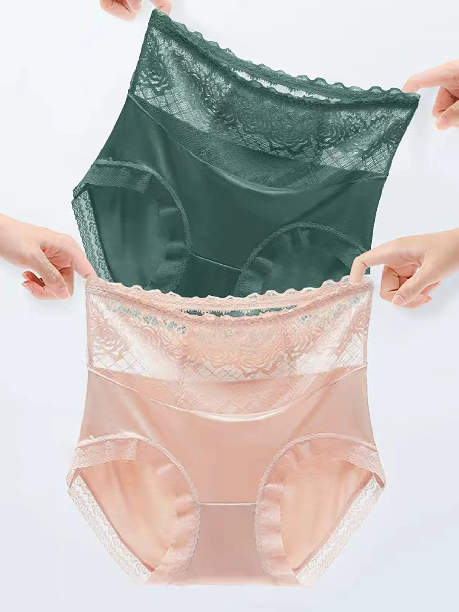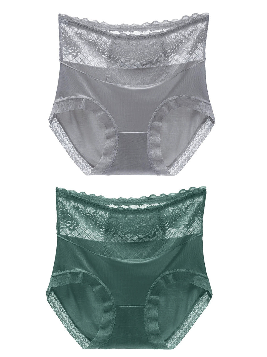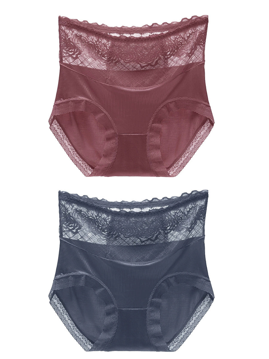 قطعتان من الملابس الداخلية النسائية ذات الخصر العالي والمزينة بالدانتيل الفني