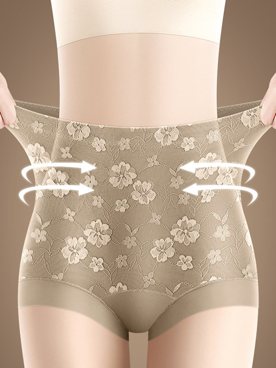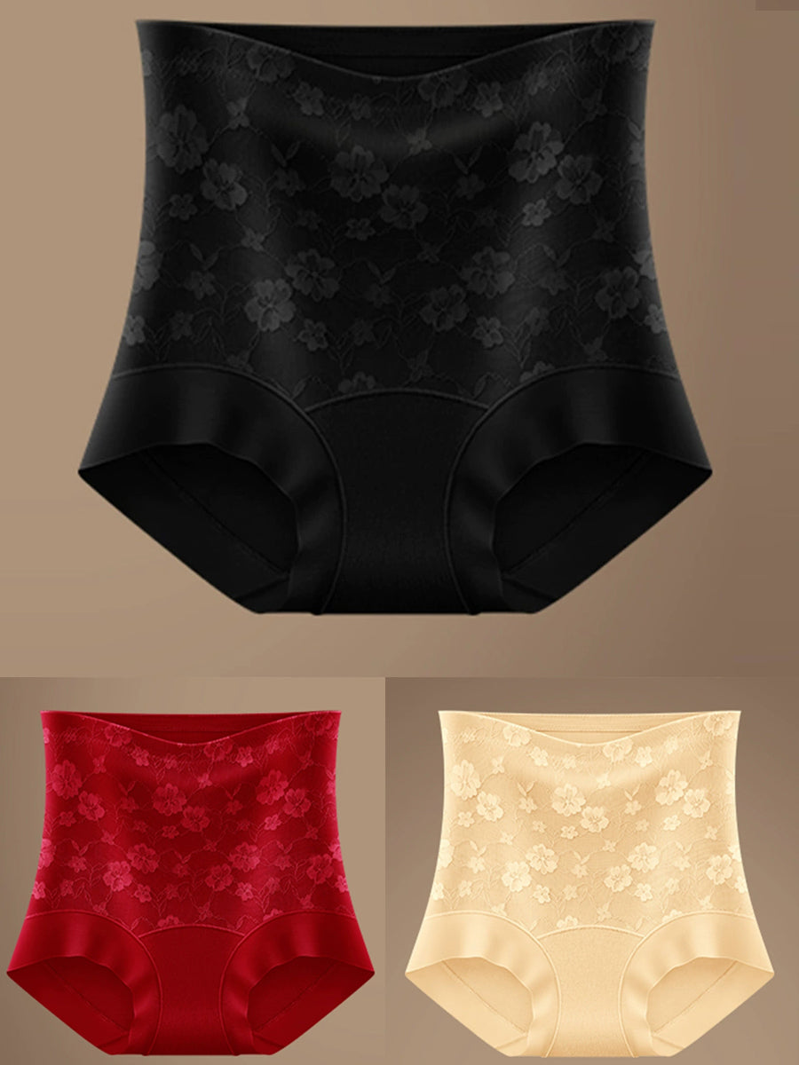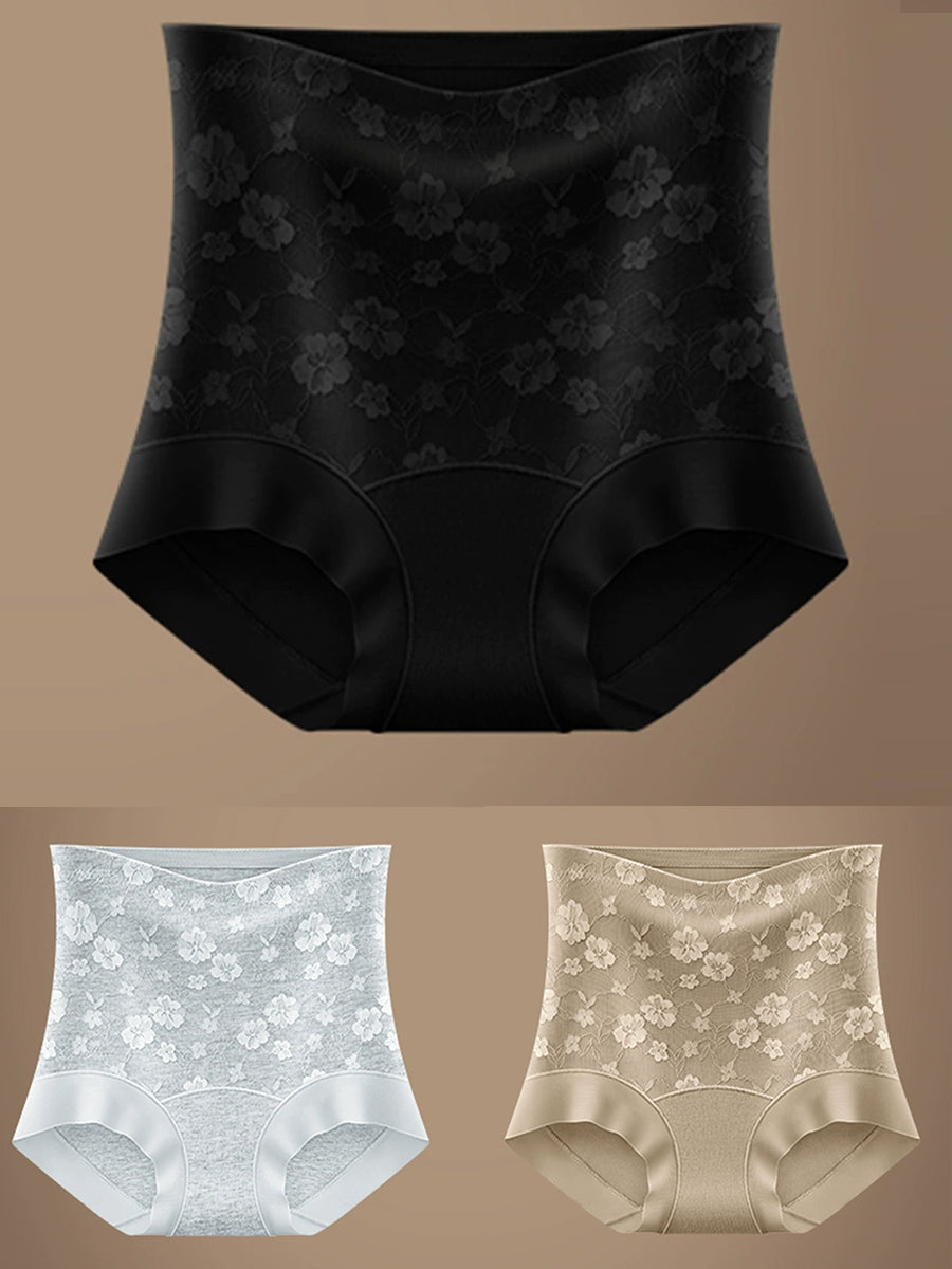 طقم ملابس داخلية نسائية من 3 قطع، بتصميم زهور فنية وخصر عالٍ