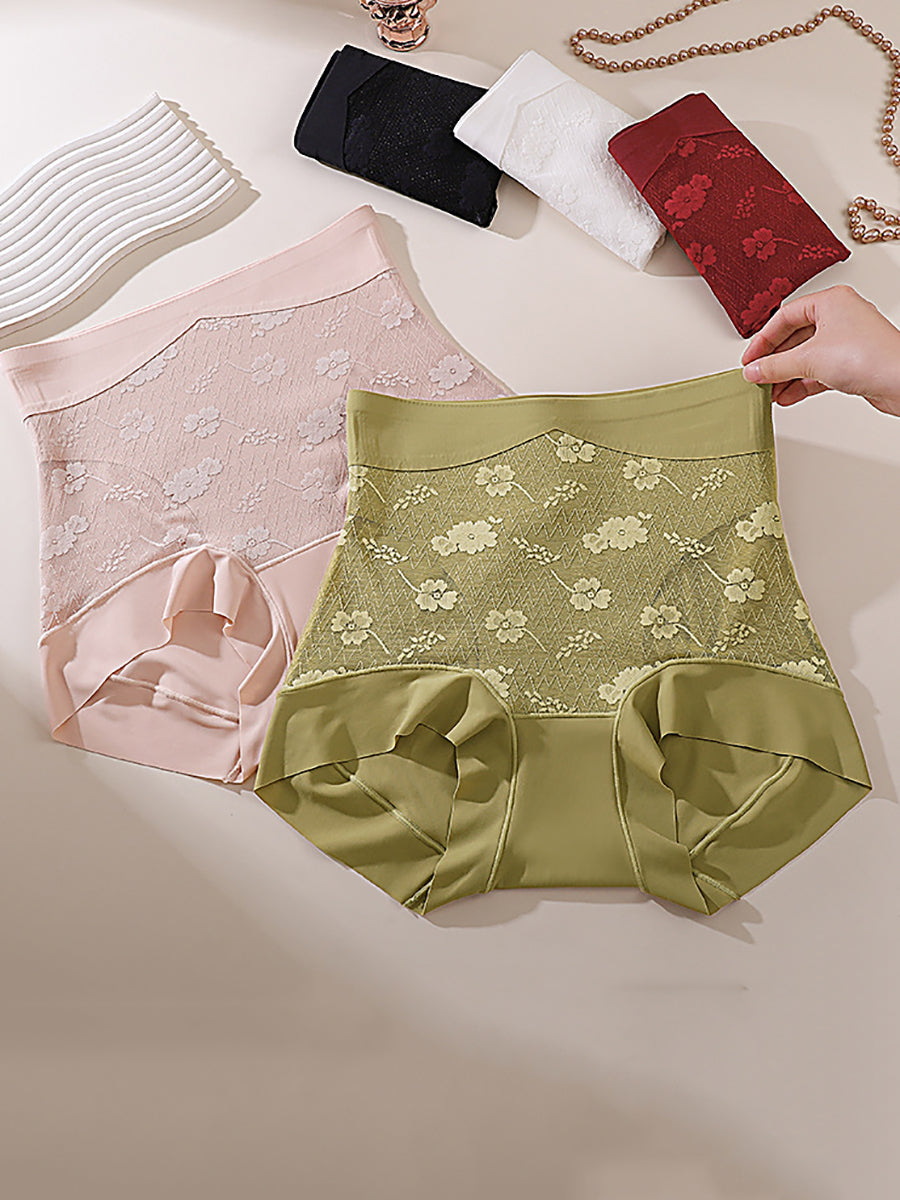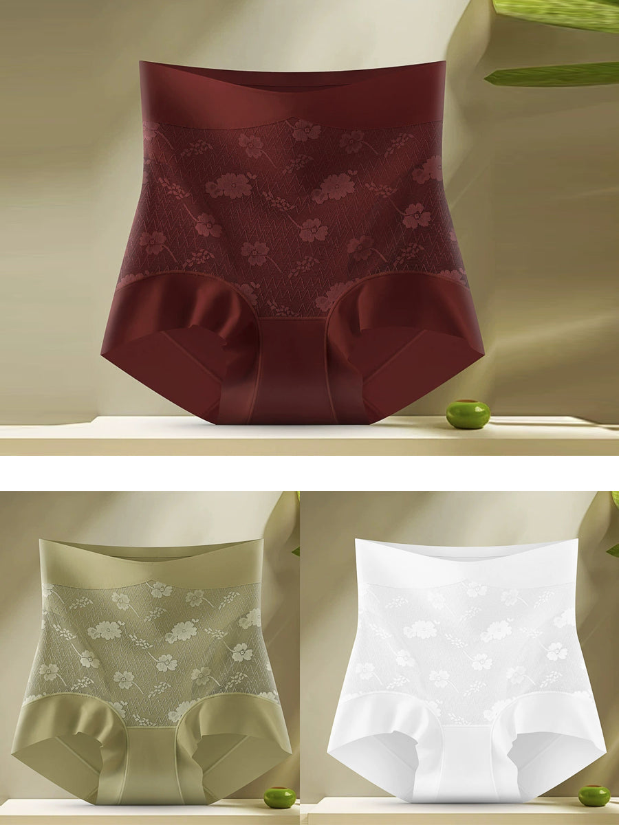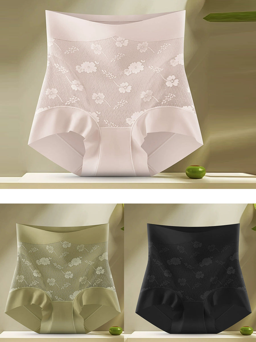 طقم ملابس داخلية نسائية مكون من 3 قطع، بتصميم زهور جاكار فنية، بخصر عالٍ