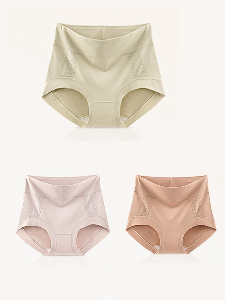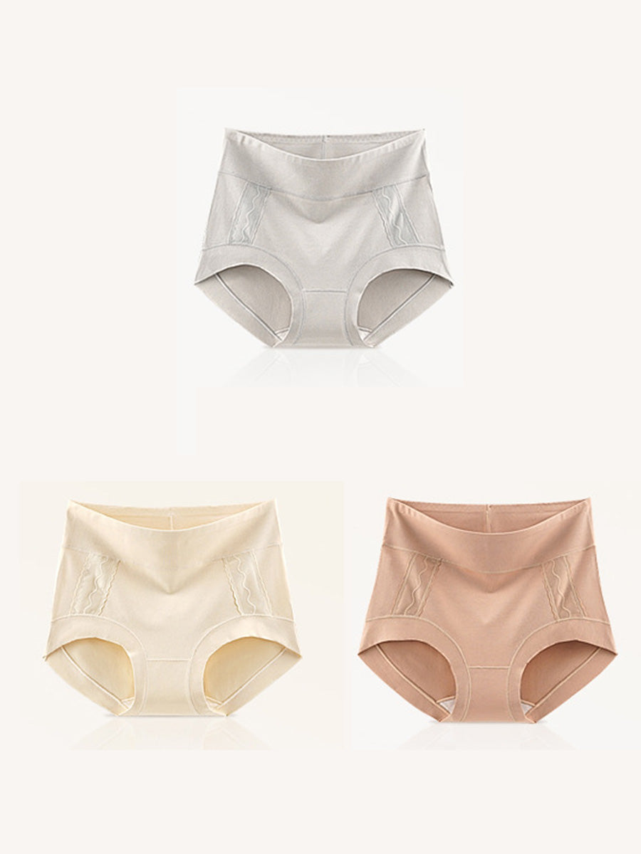 3 قطع من الملابس الداخلية النسائية الفنية ذات اللون السادة والخصر العالي