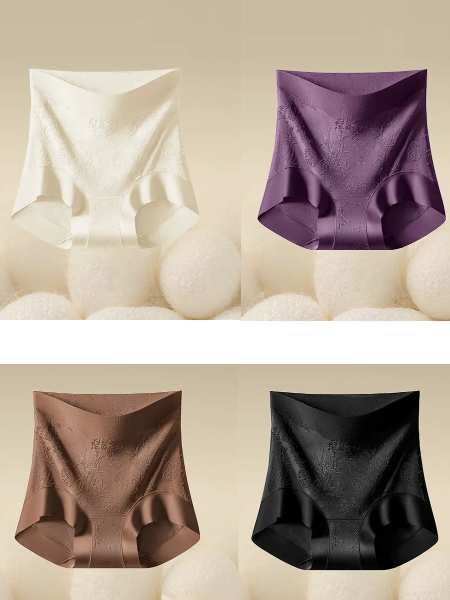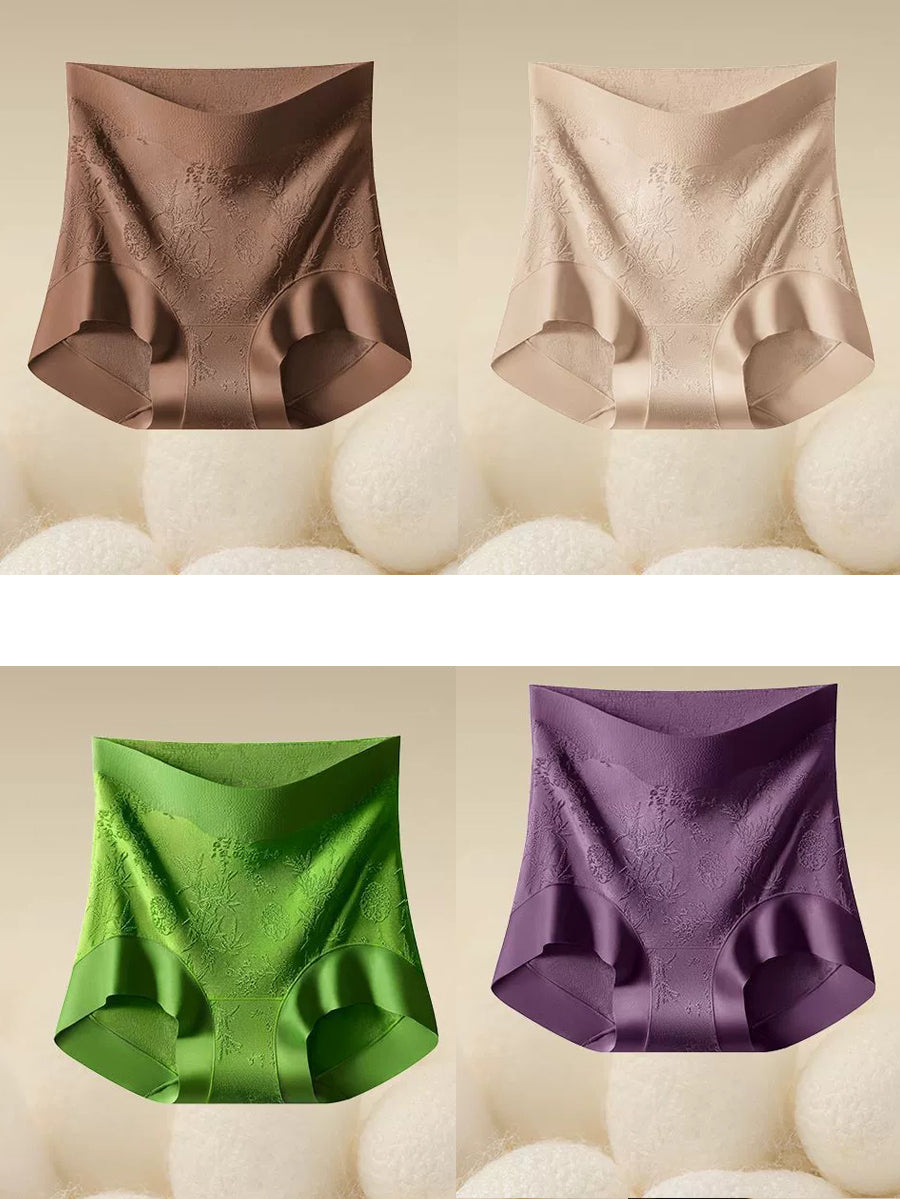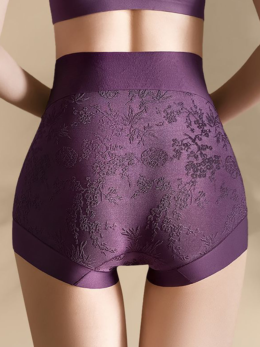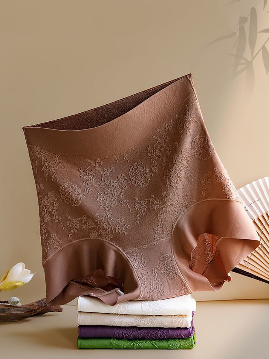 طقم ملابس داخلية نسائية من 4 قطع، بتصميم فني ونقشة زهور جاكار، بخصر عالٍ