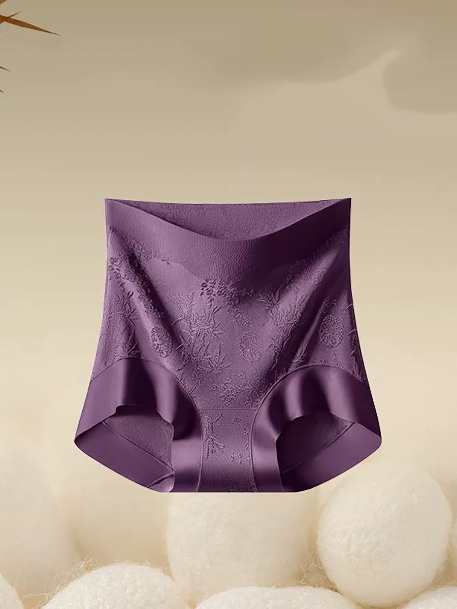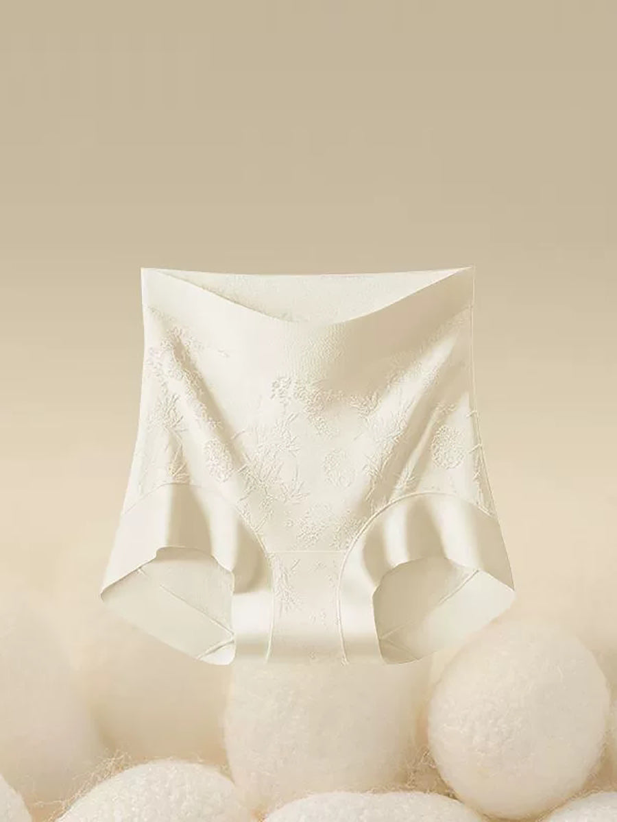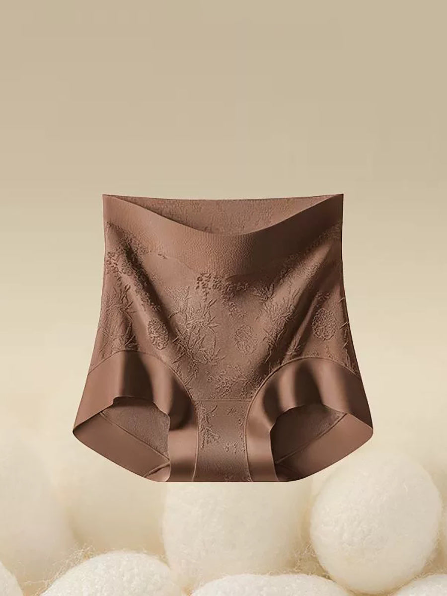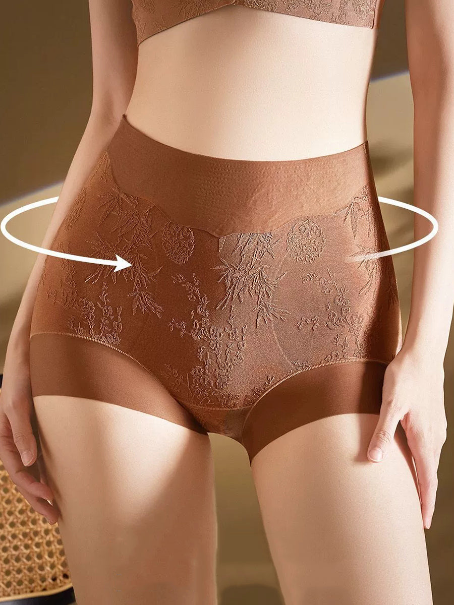 طقم ملابس داخلية نسائية من 4 قطع، بتصميم فني ونقشة زهور جاكار، بخصر عالٍ