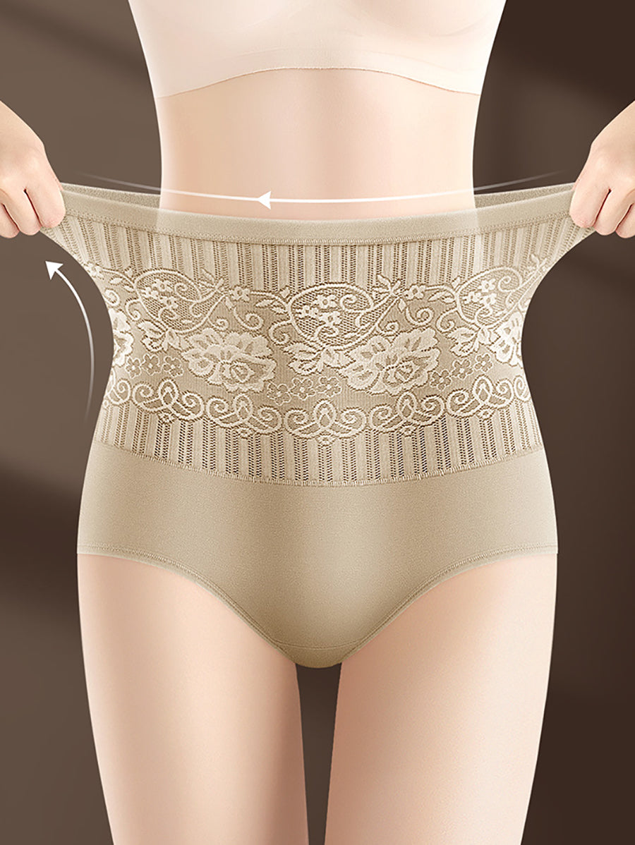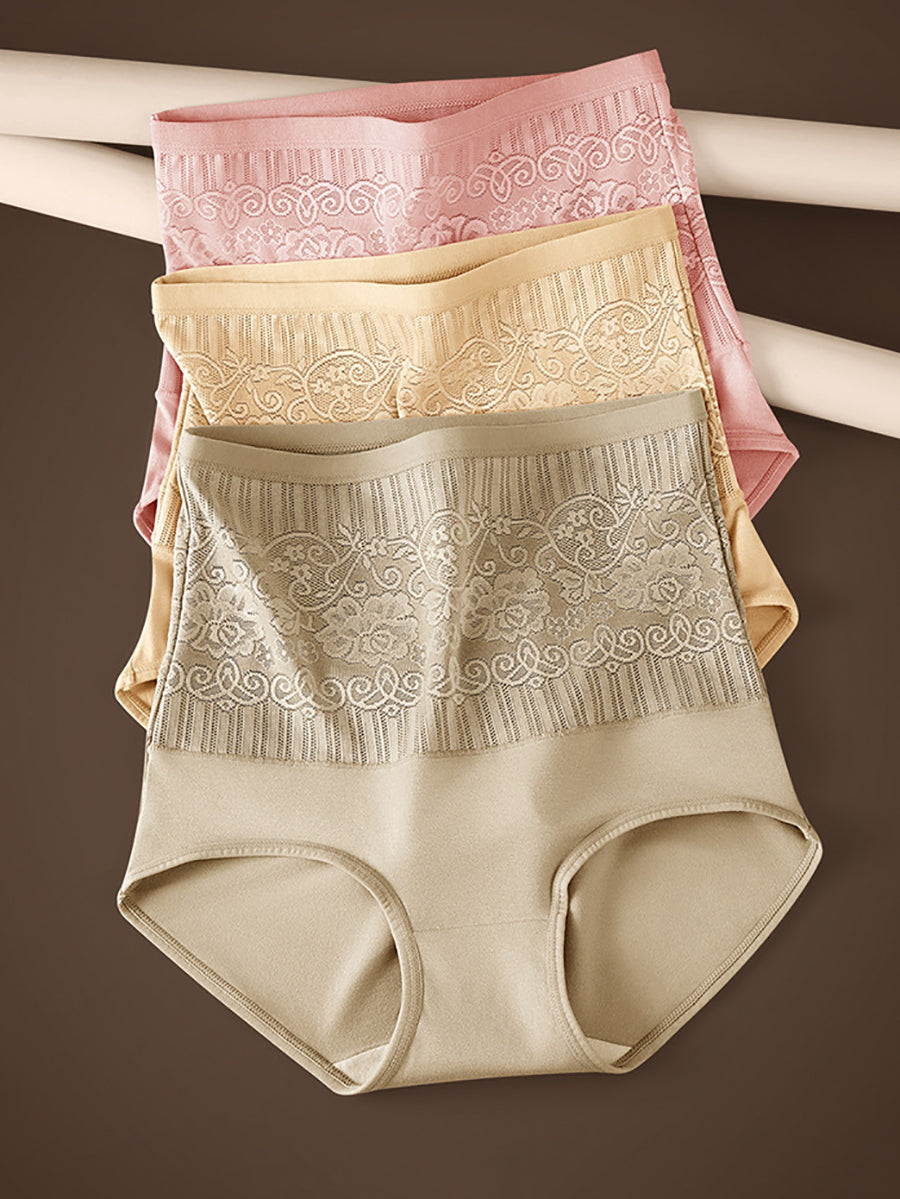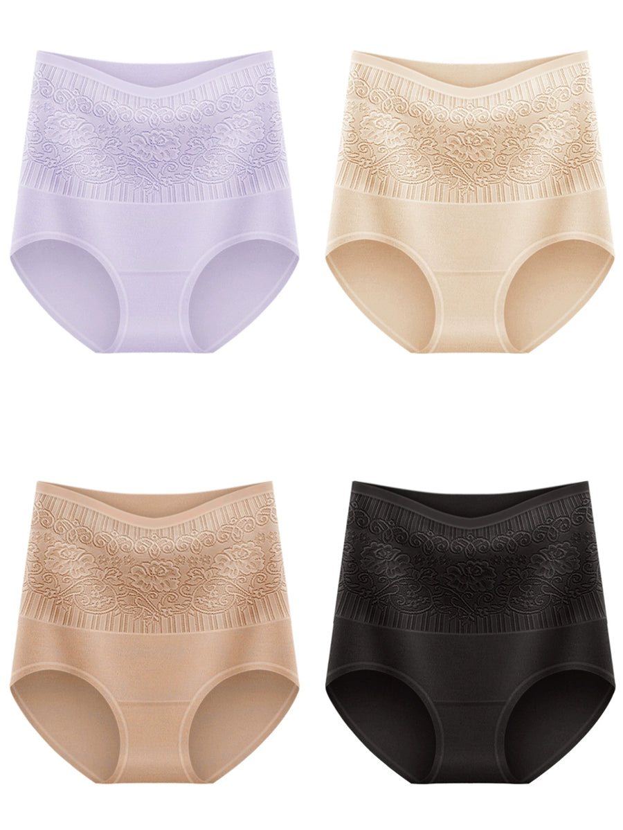 أربع قطع من الملابس الداخلية النسائية ذات الخصر العالي والمزينة بالزهور الفنية