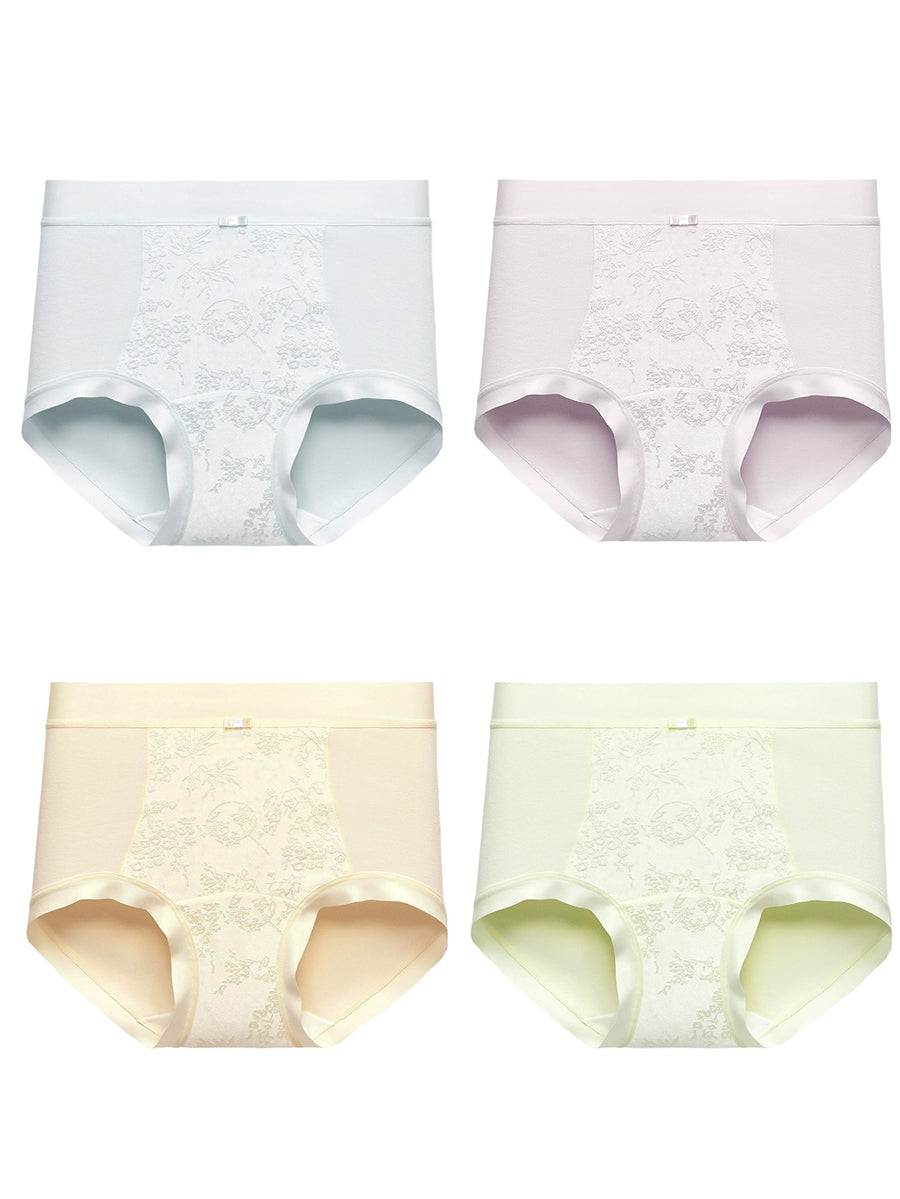 4 قطع من الملابس الداخلية النسائية ذات الخصر العالي بنقشة زهور الجاكار الفنية