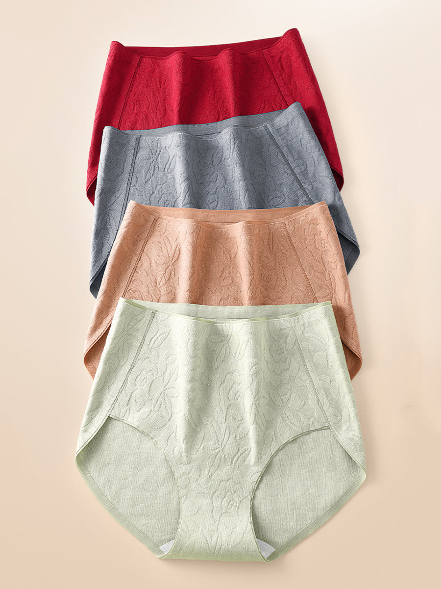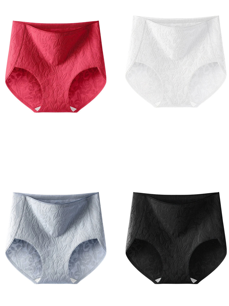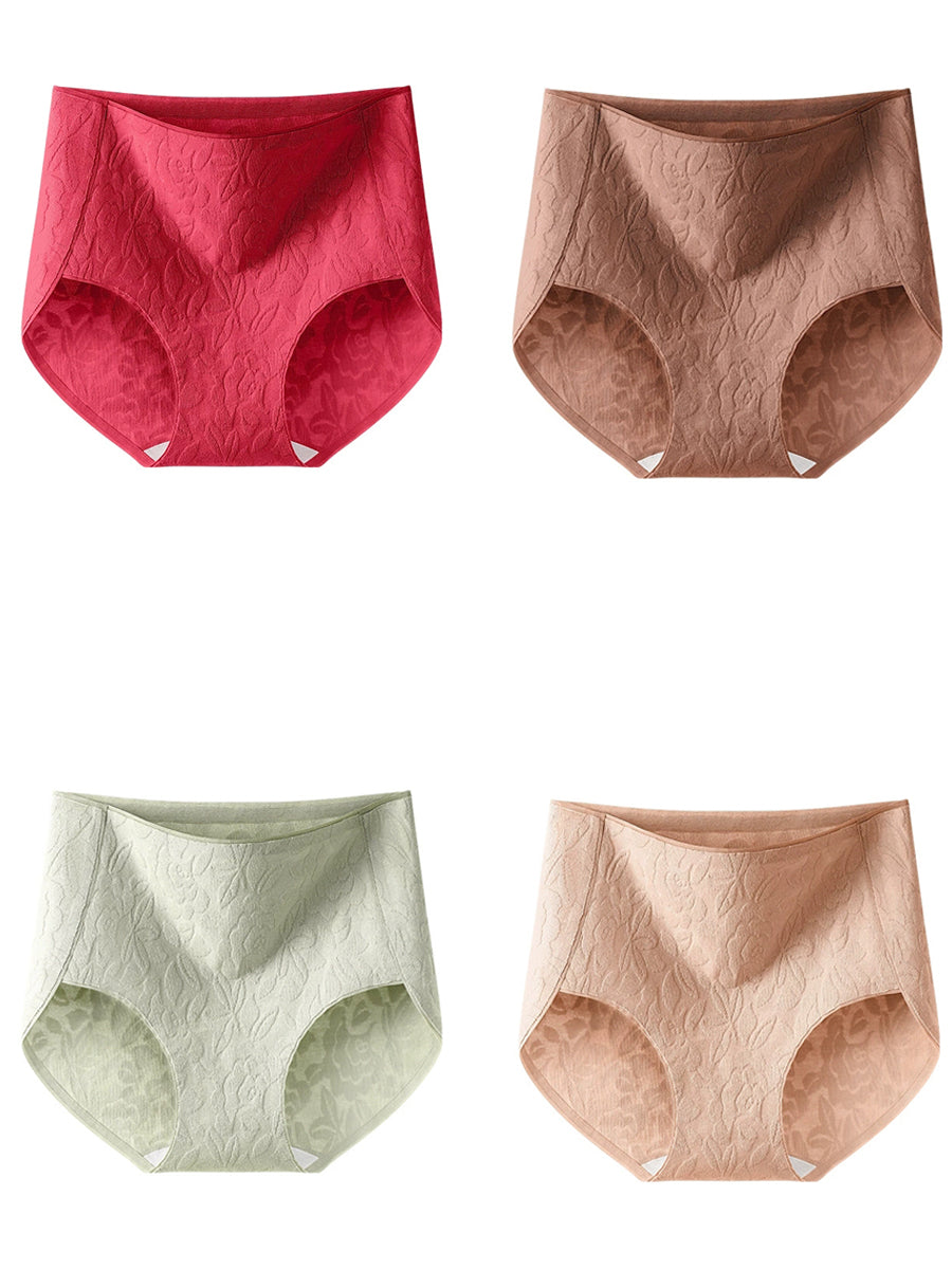 أربع قطع من الملابس الداخلية النسائية ذات الخصر العالي بنقشة زهور الجاكار الفنية