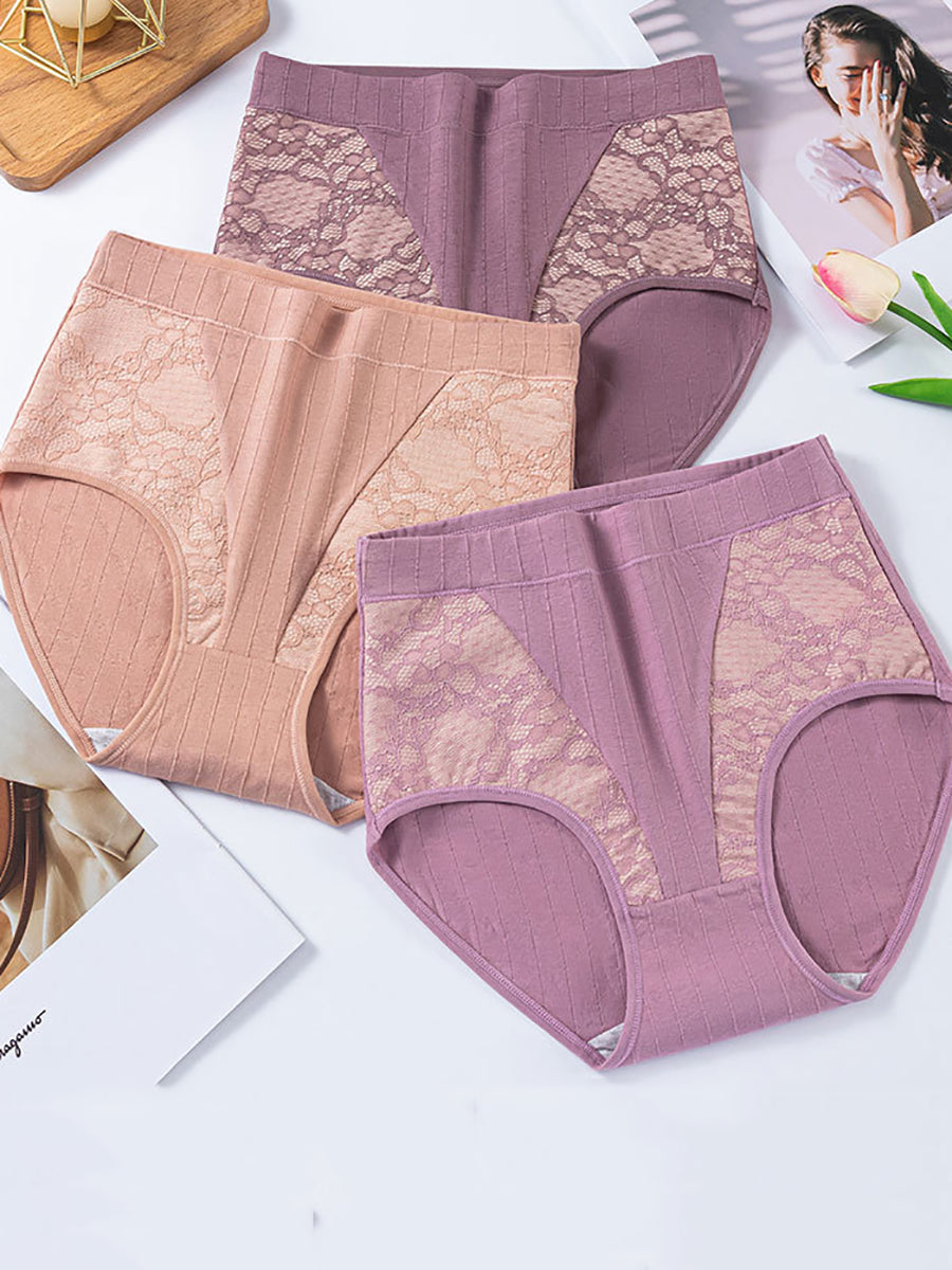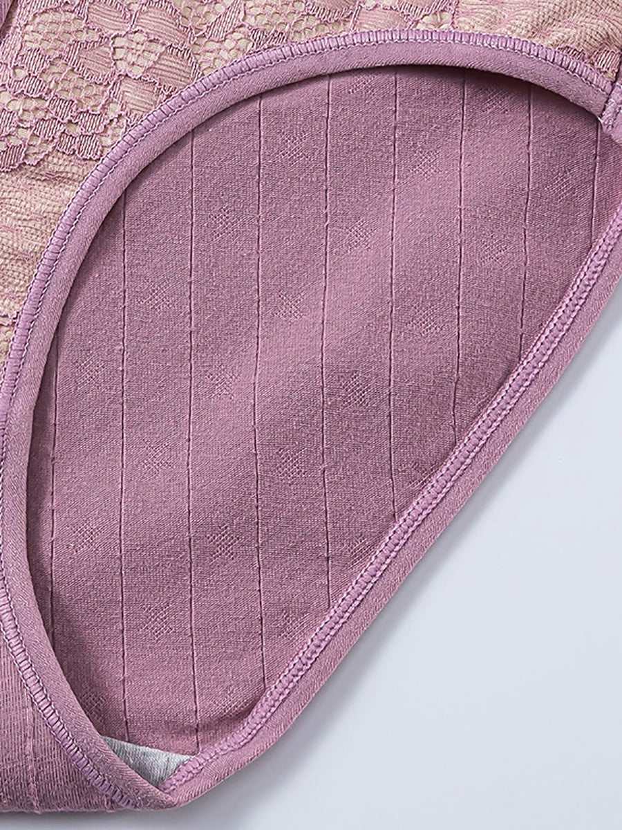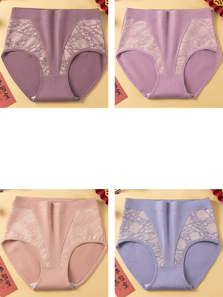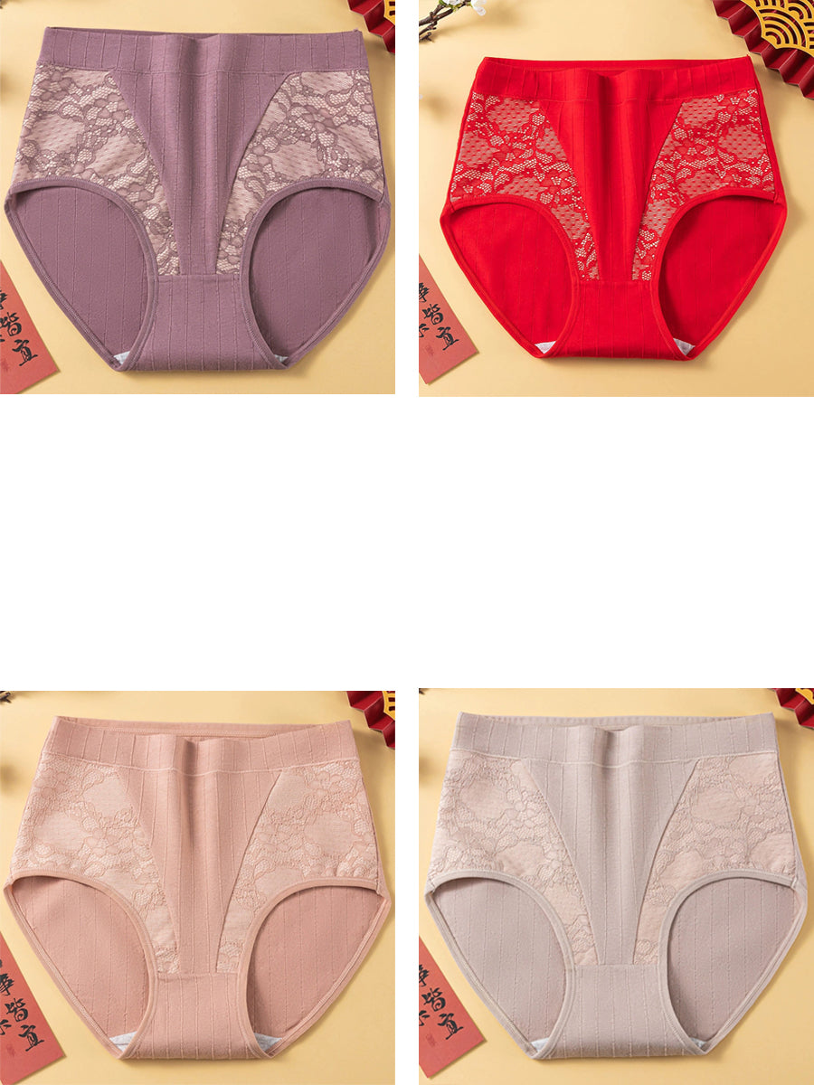 أربع قطع من الملابس الداخلية النسائية ذات الخصر العالي والمزينة بالدانتيل الزهري الفني