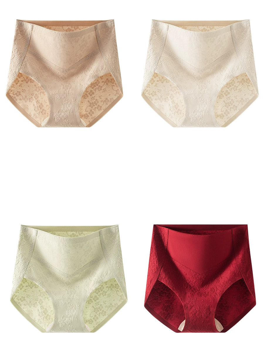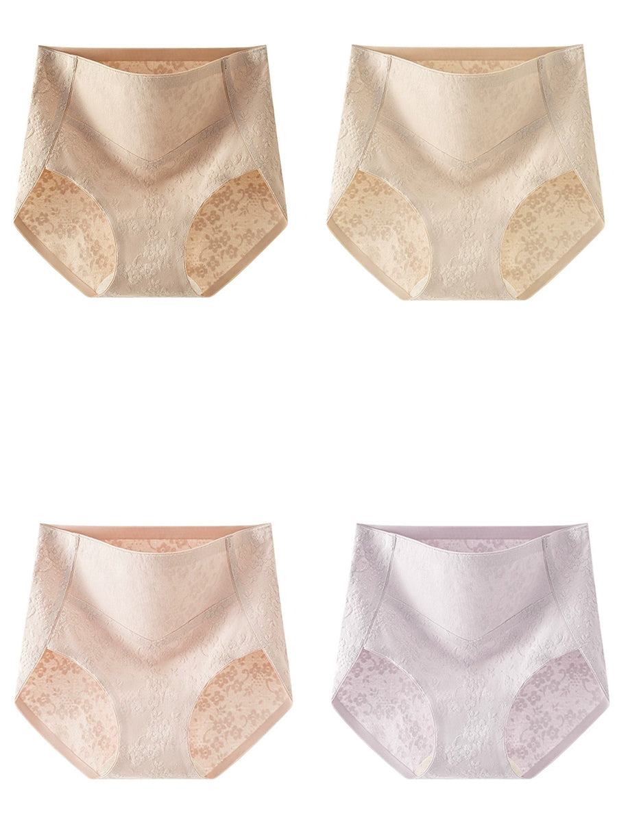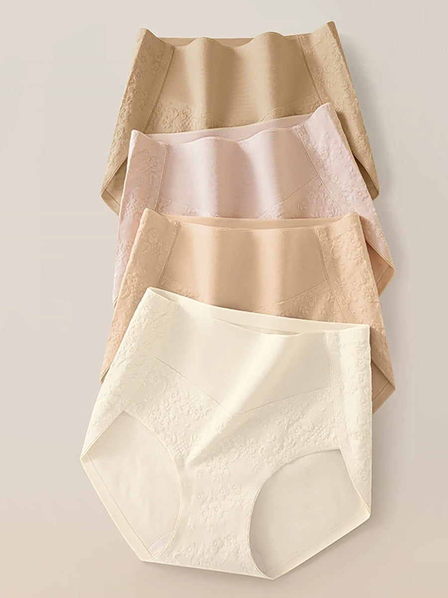 طقم ملابس داخلية نسائية من 4 قطع، بتصميم فني من قماش الجاكار، بخصر عالٍ