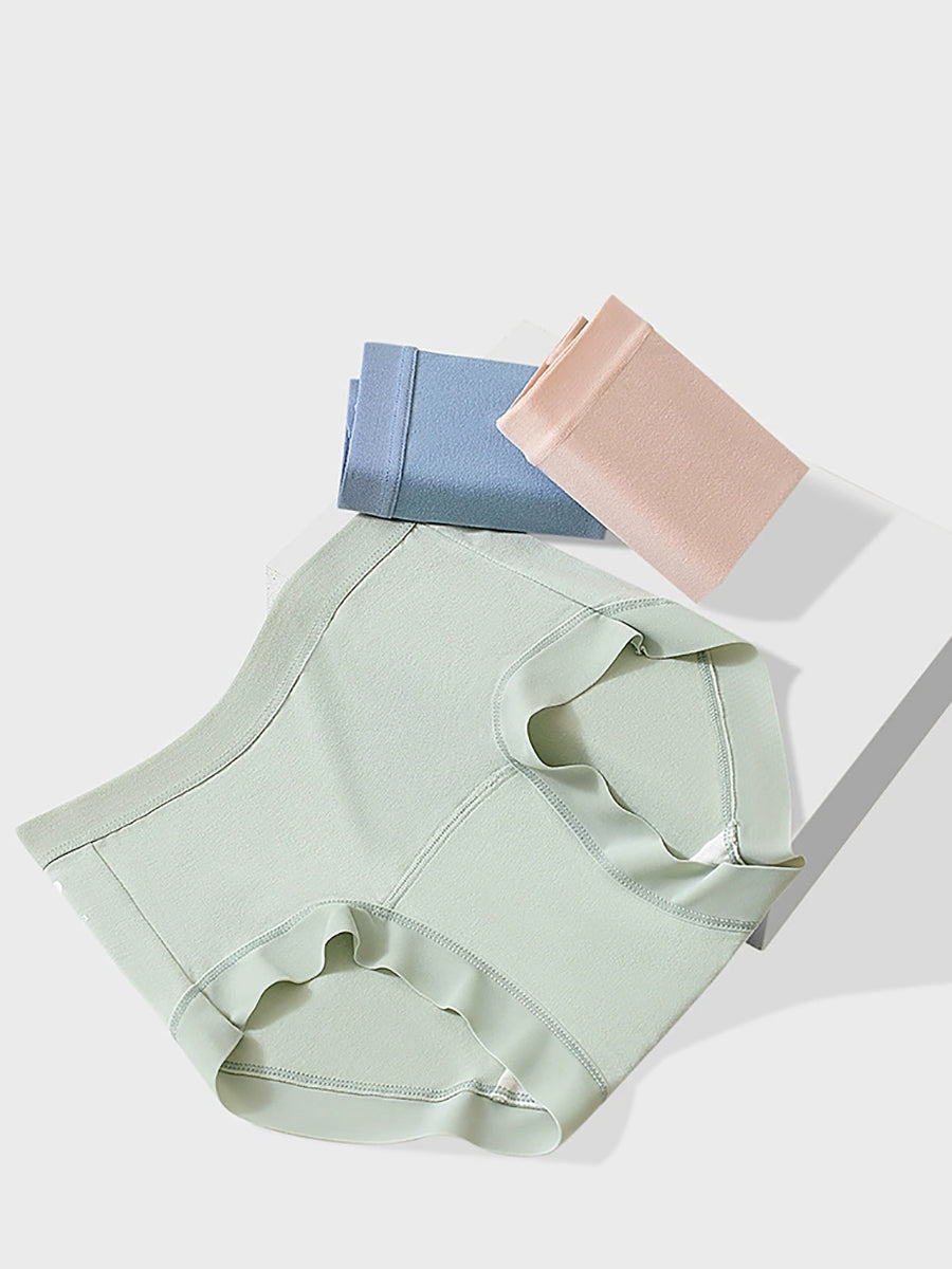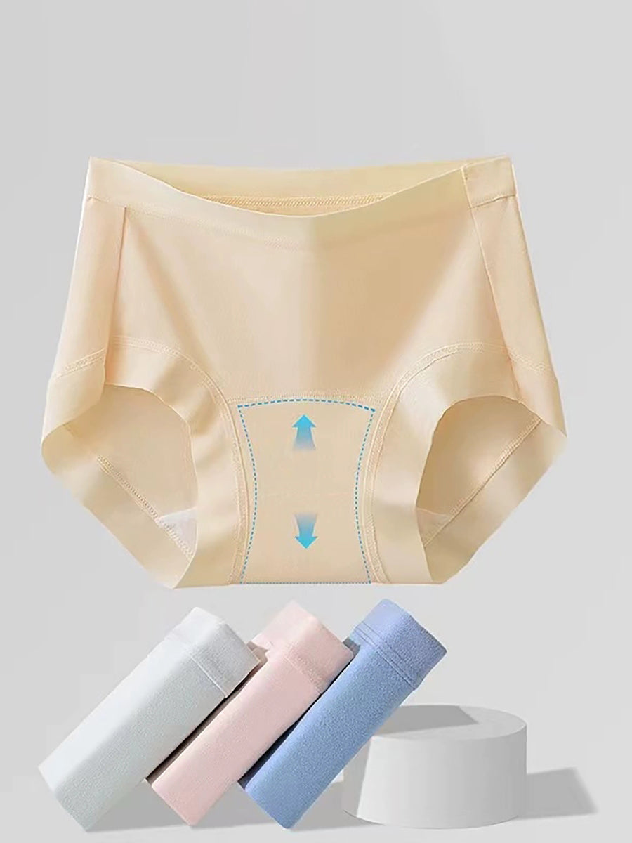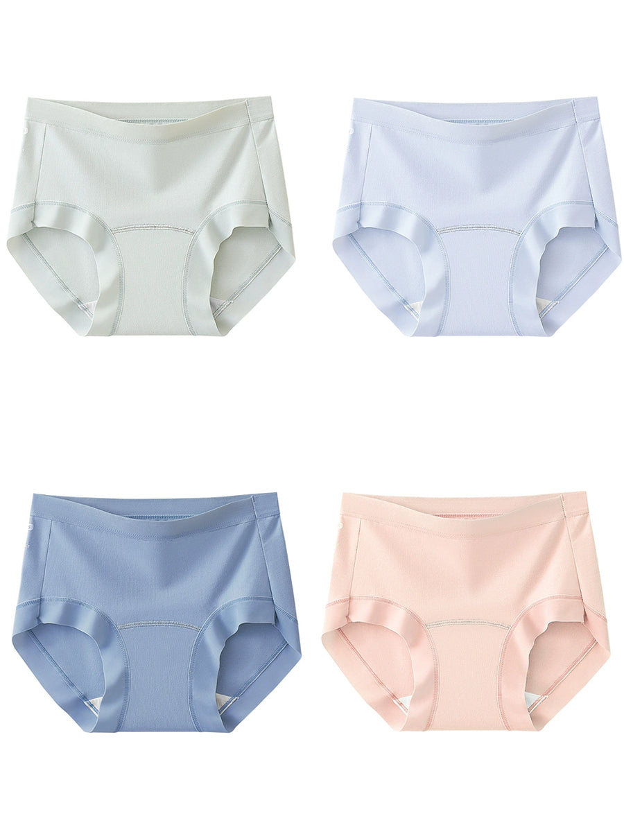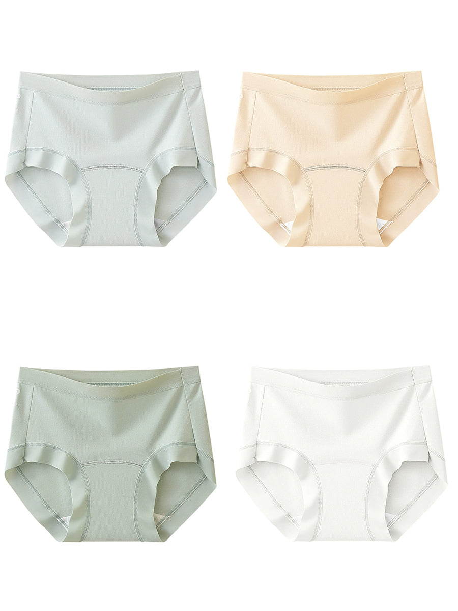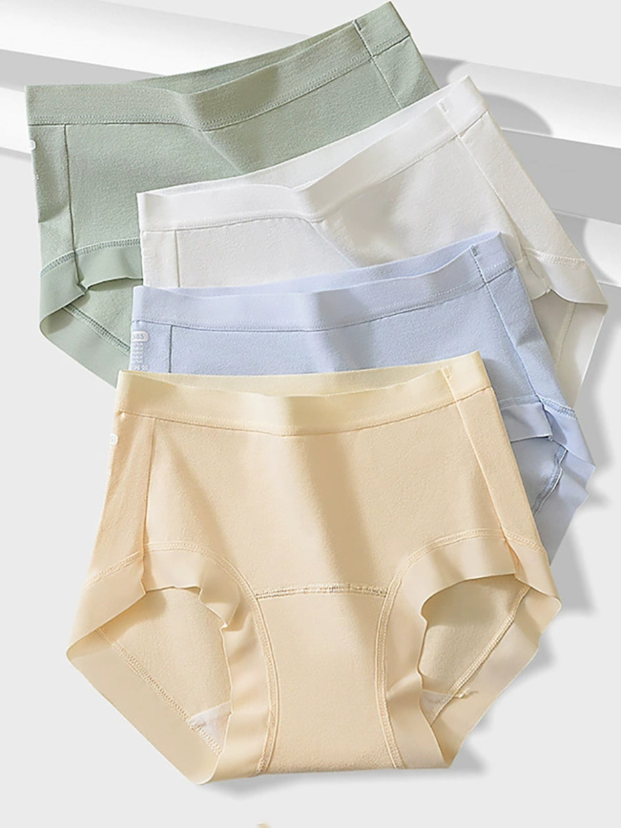 4 قطع من الملابس الداخلية النسائية الكاجوال ذات اللون الموحد والخصر العالي