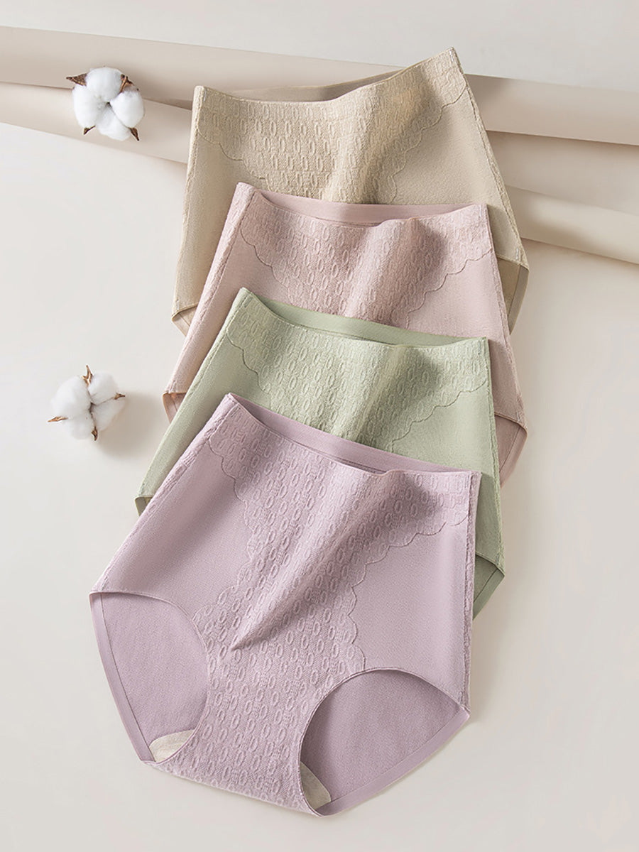 4 قطع من الملابس الداخلية النسائية الكاجوال ذات اللون الموحد والخصر العالي