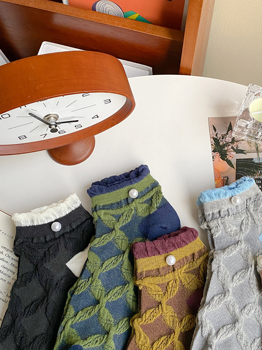5 أزواج من الجوارب القطنية الملونة بنقشة المعينات الفنية للنساء