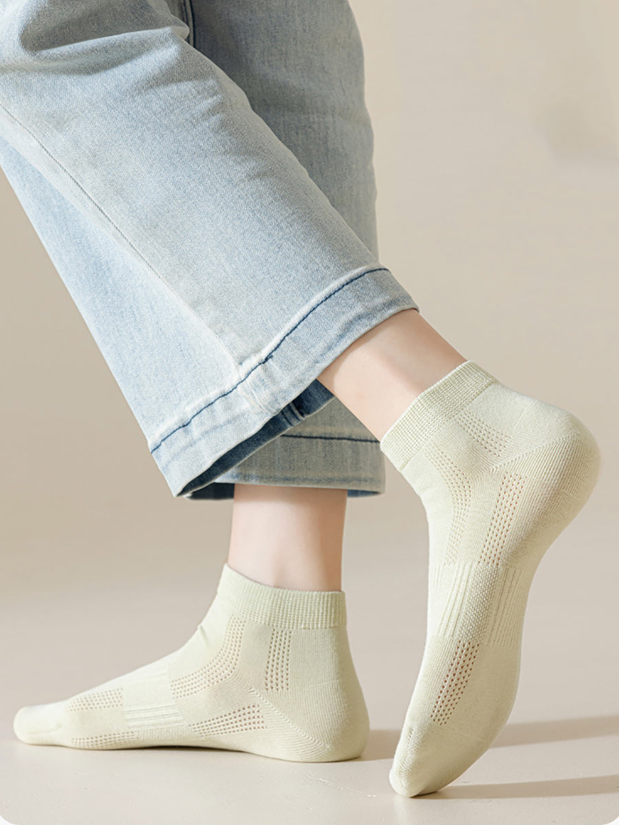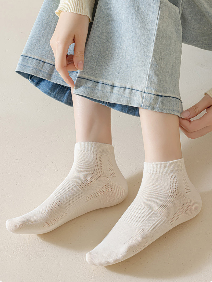 5 أزواج من الجوارب النسائية القصيرة بلون موحد