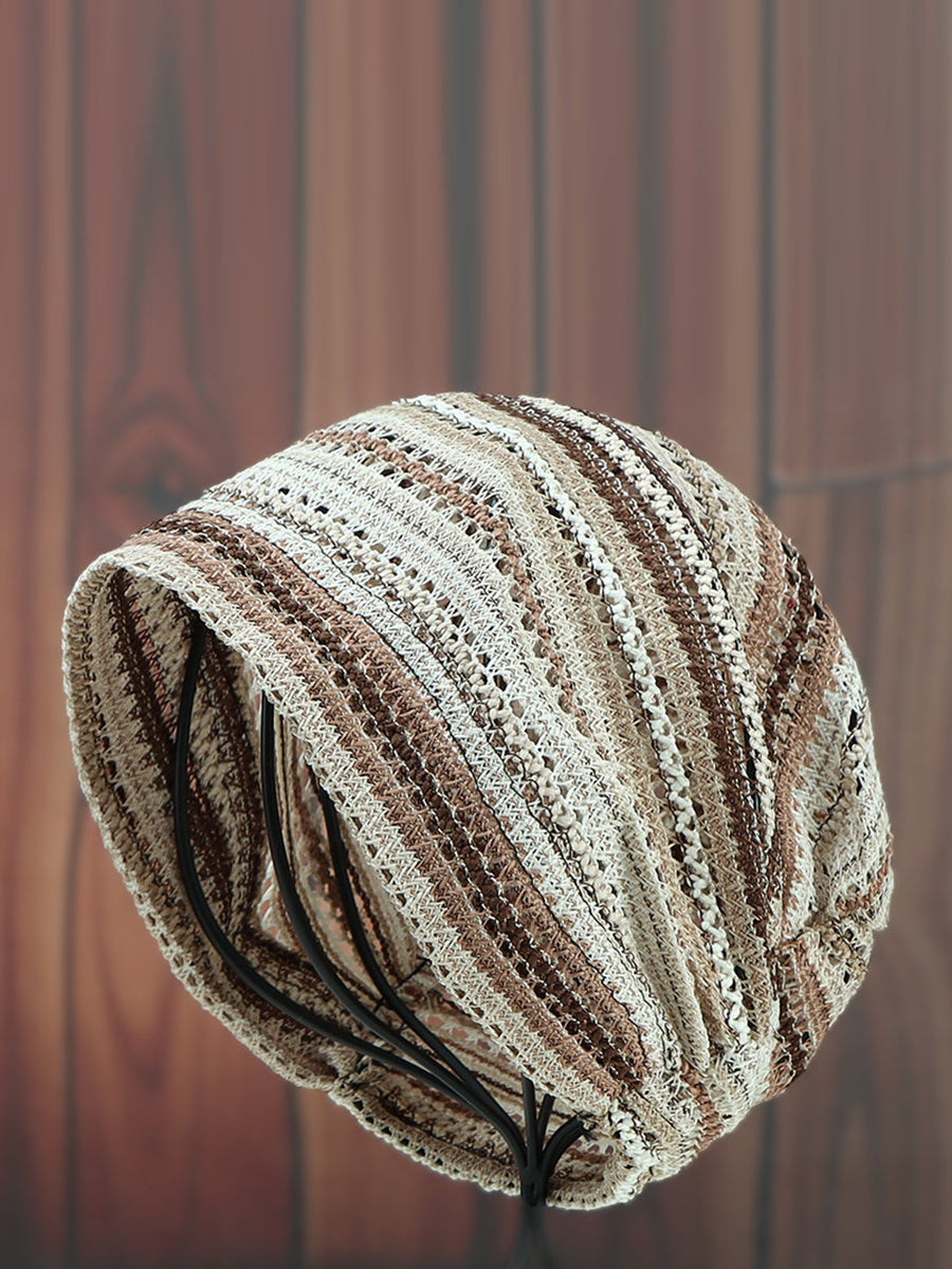 قبعة صيفية أنيقة محبوكة مخططة فضفاضة