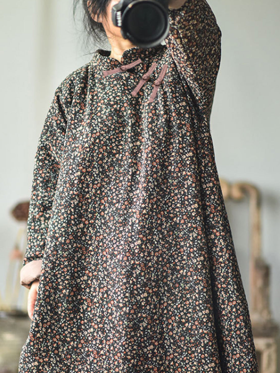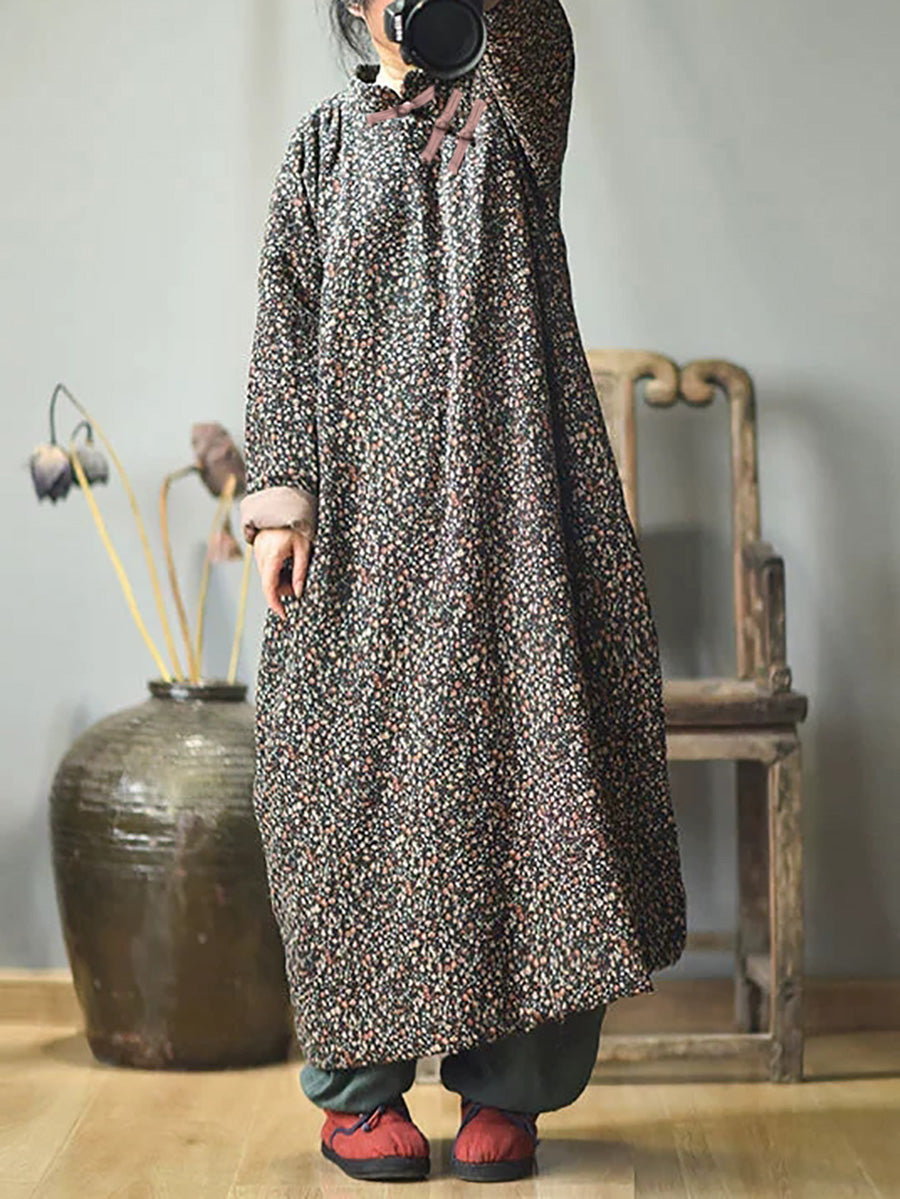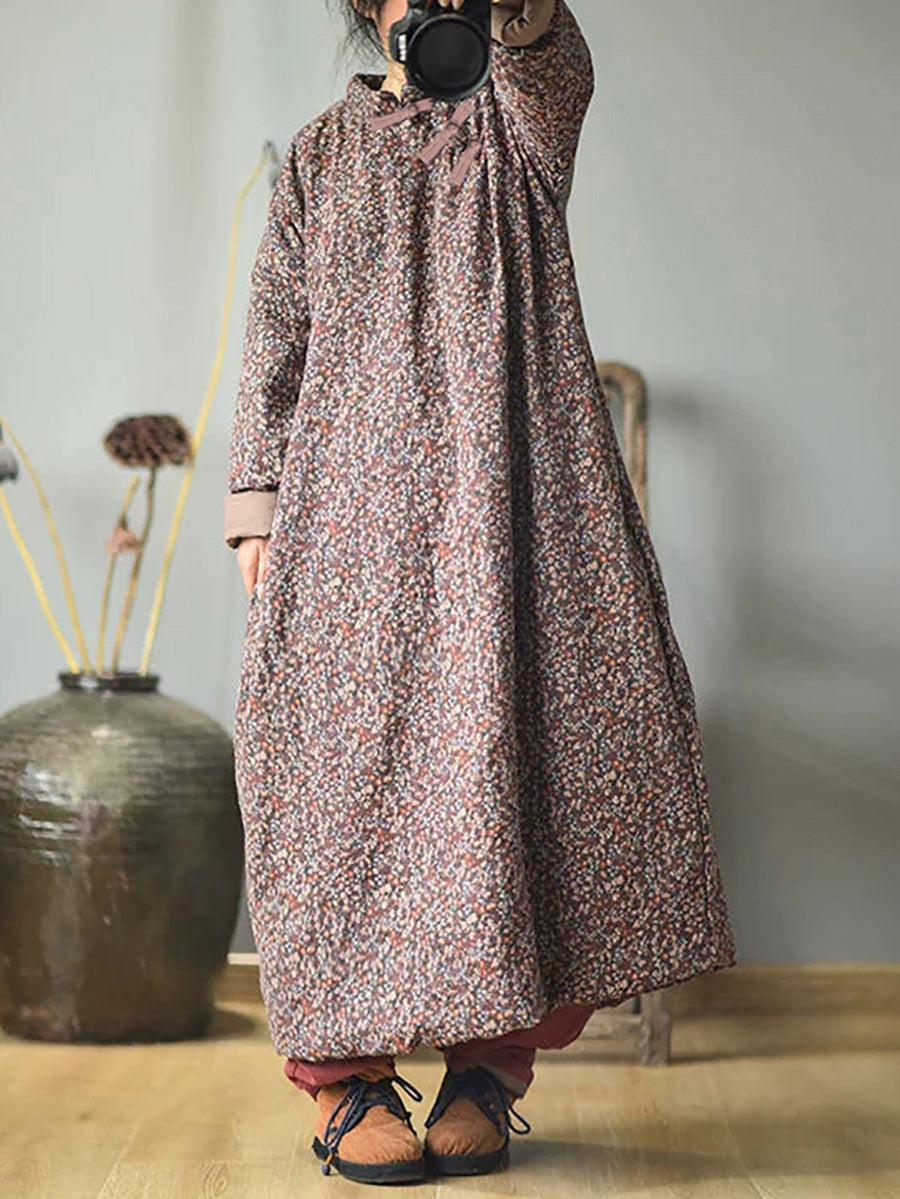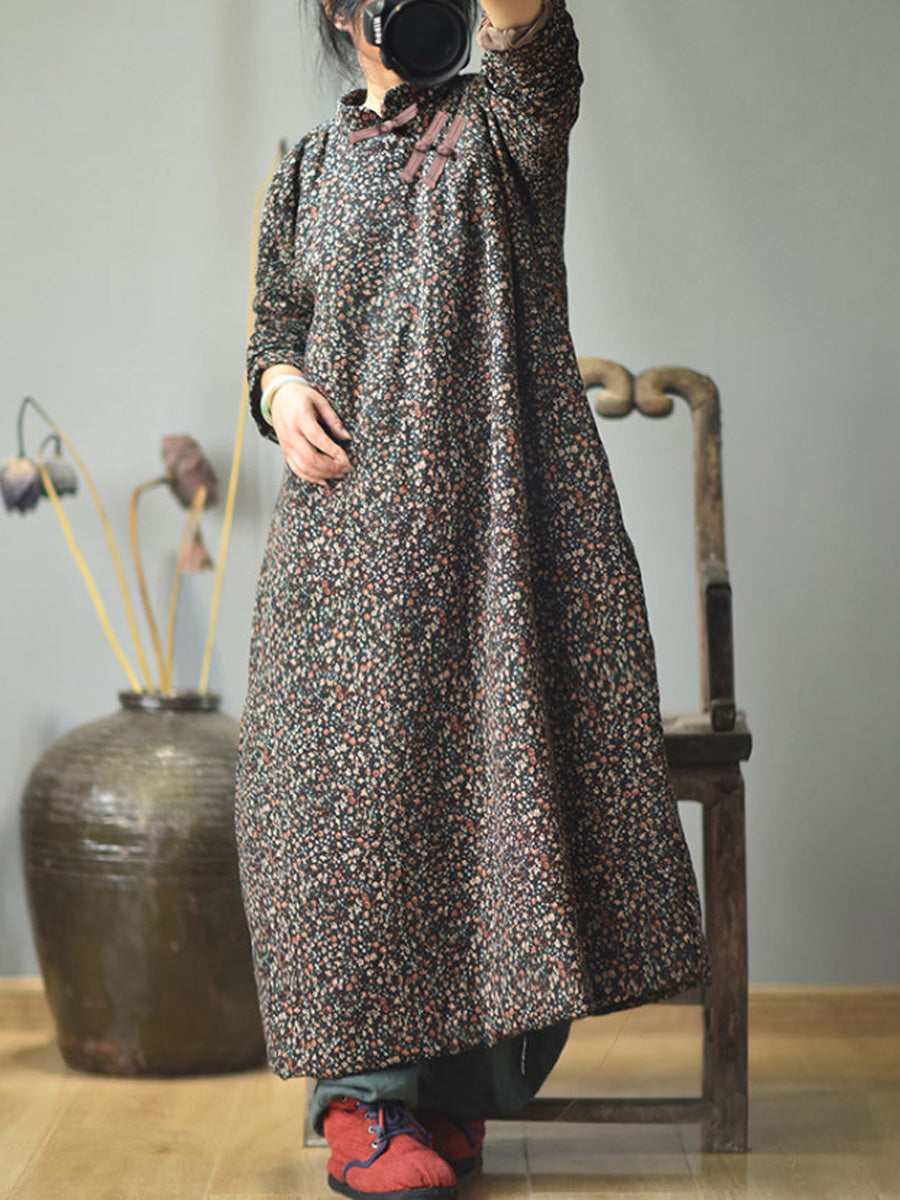مقاس كبير - فستان نسائي قطني فضفاض بنقشة الزهور للخريف