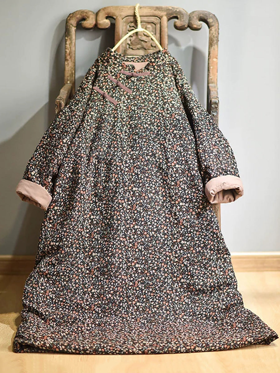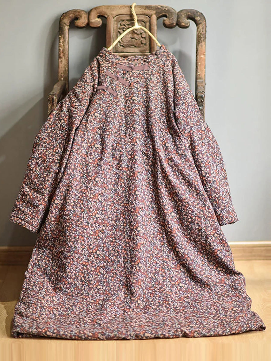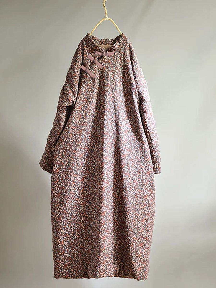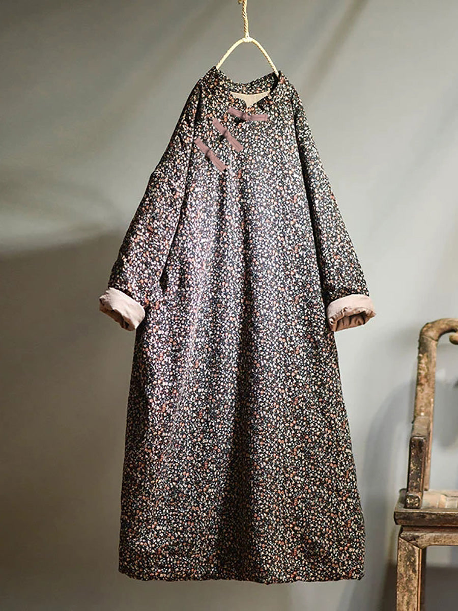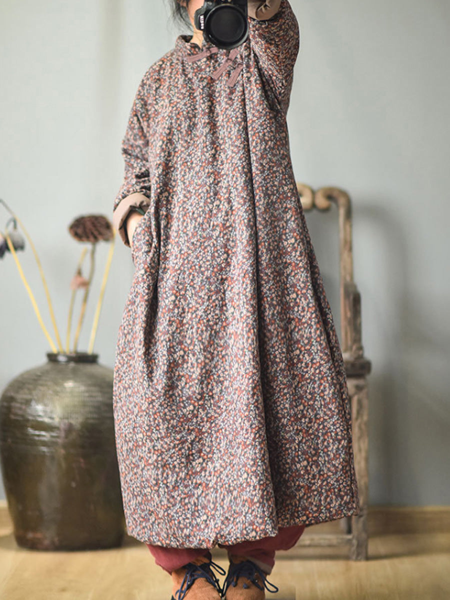 مقاس كبير - فستان نسائي قطني فضفاض بنقشة الزهور للخريف