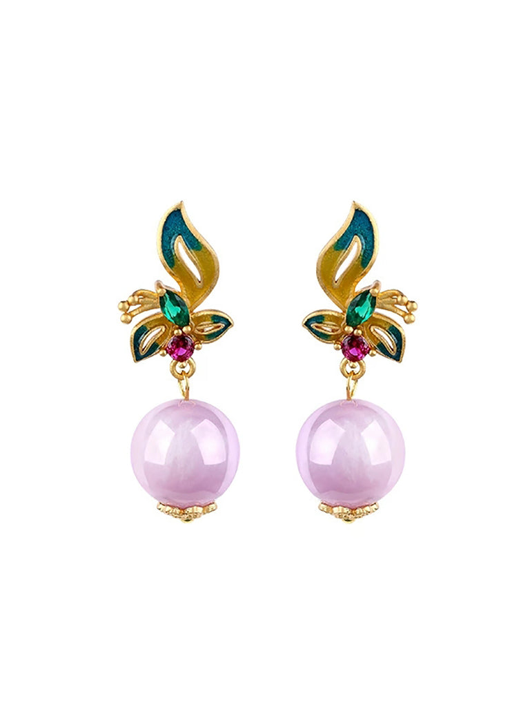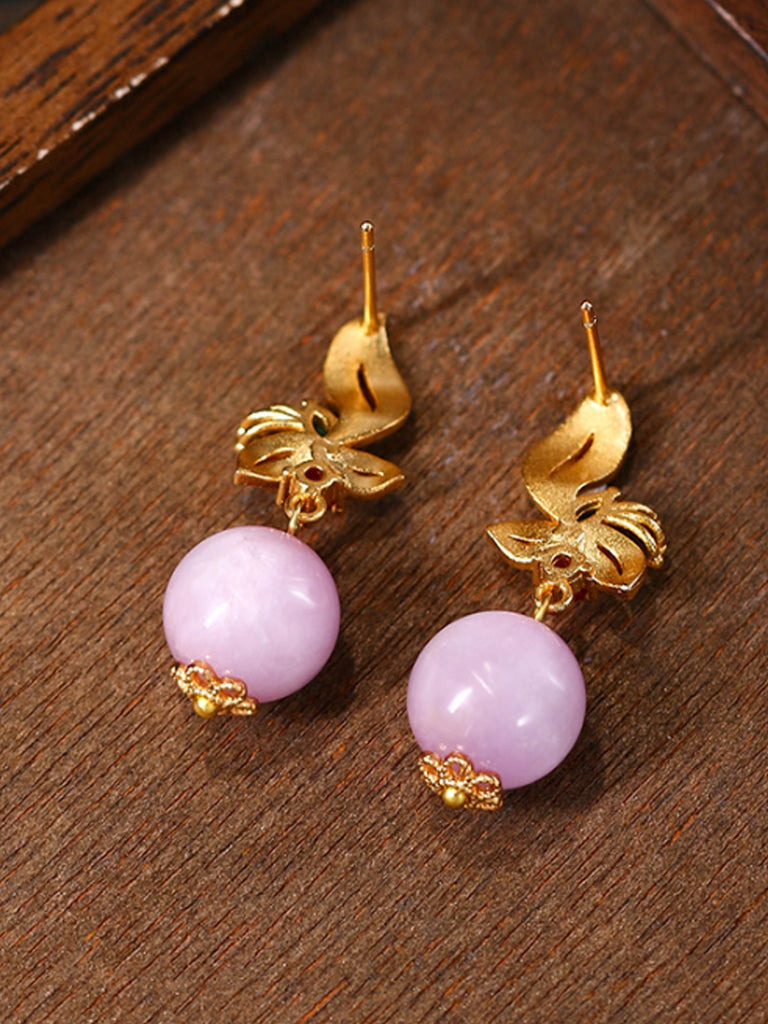 أقراط فراشة من الكريستال الليثيوم الأرجواني العرقي