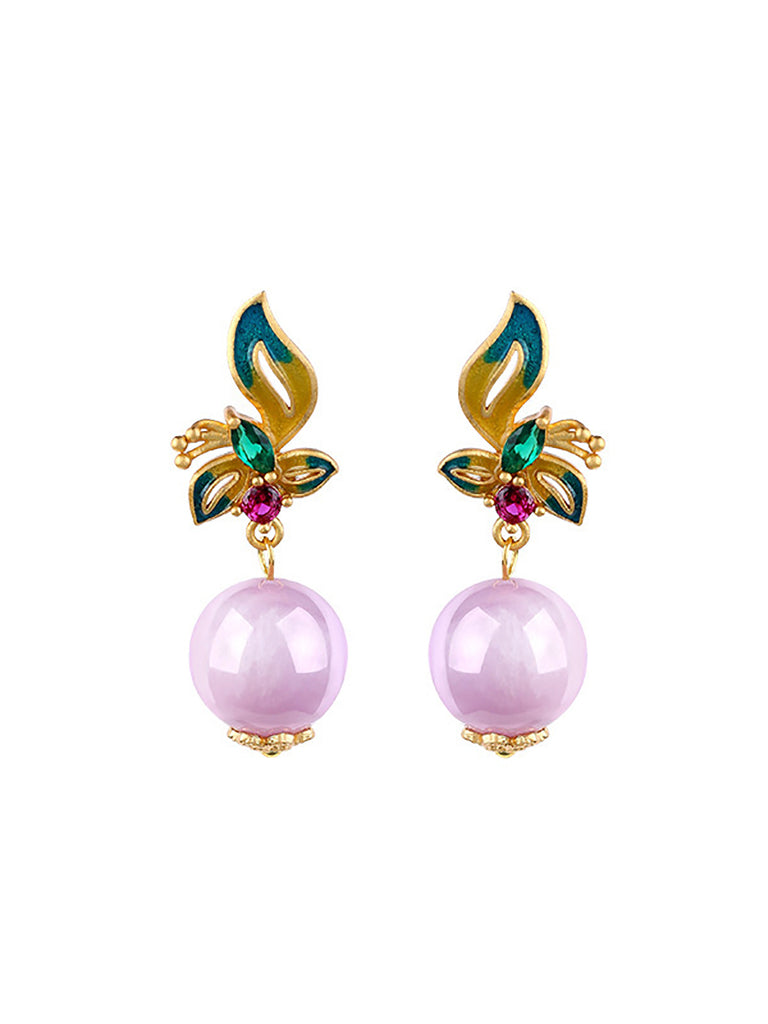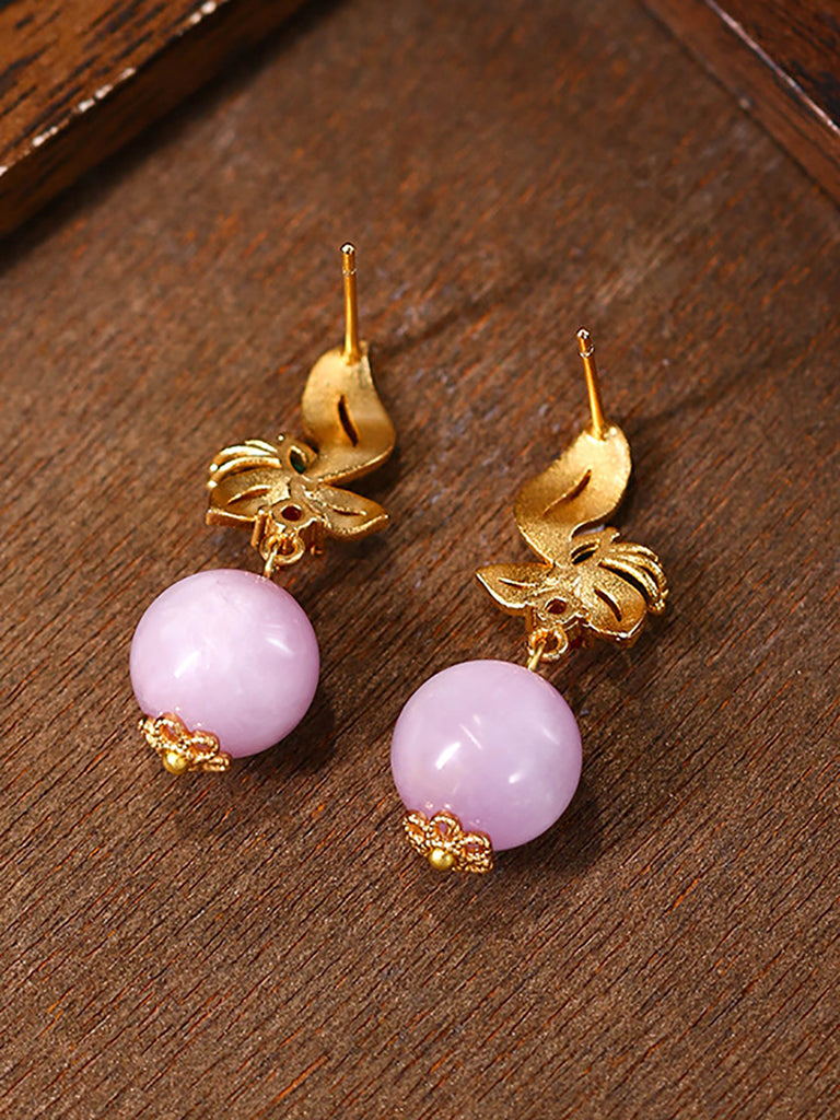 أقراط نسائية عرقية مطلية بالذهب عيار 24 قيراطًا من اليشم