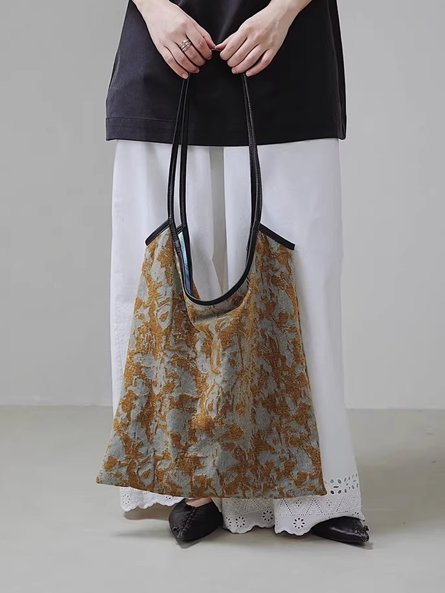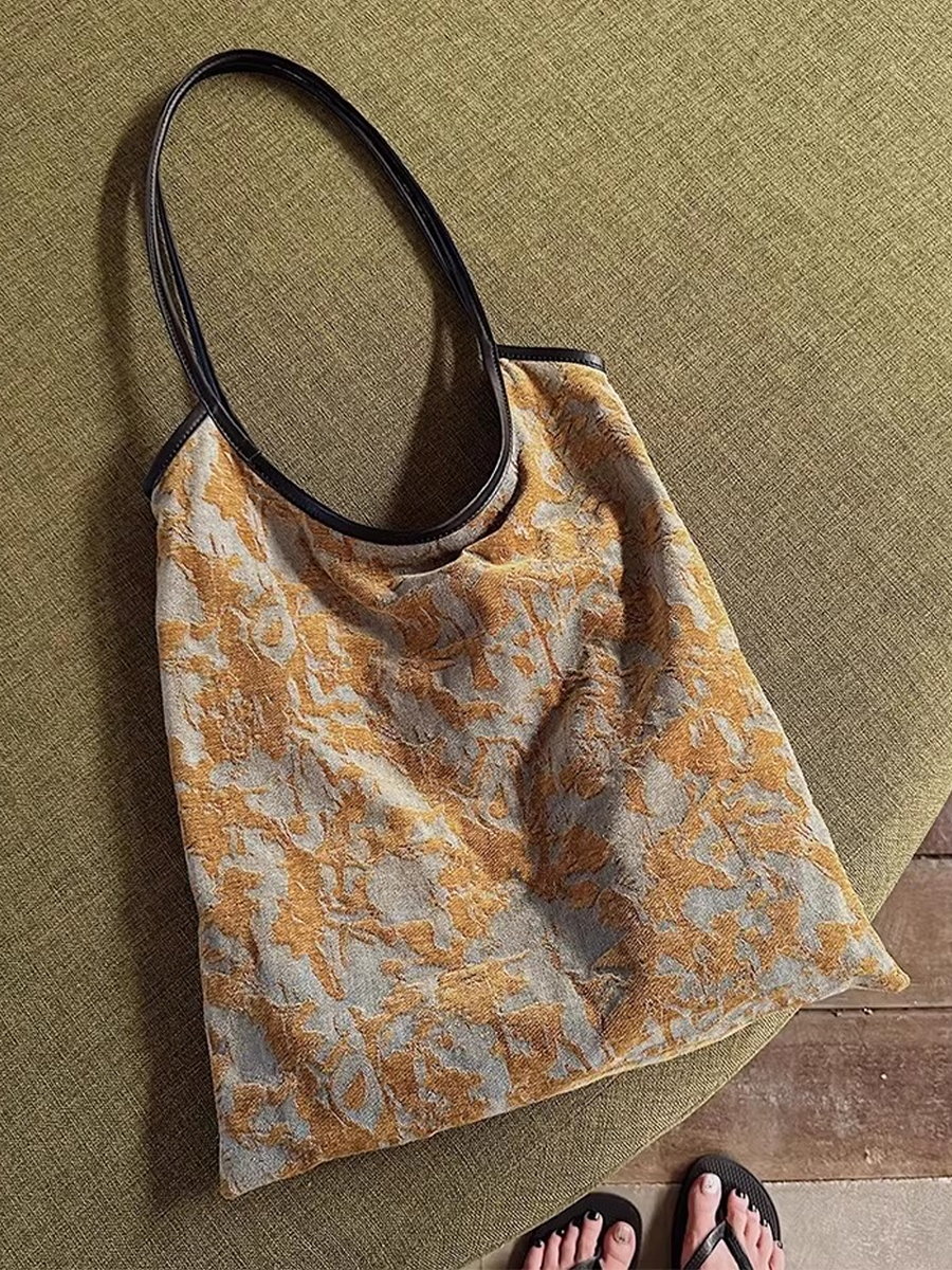حقيبة كتف من القماش المنقوش برسومات زيتية عتيقة