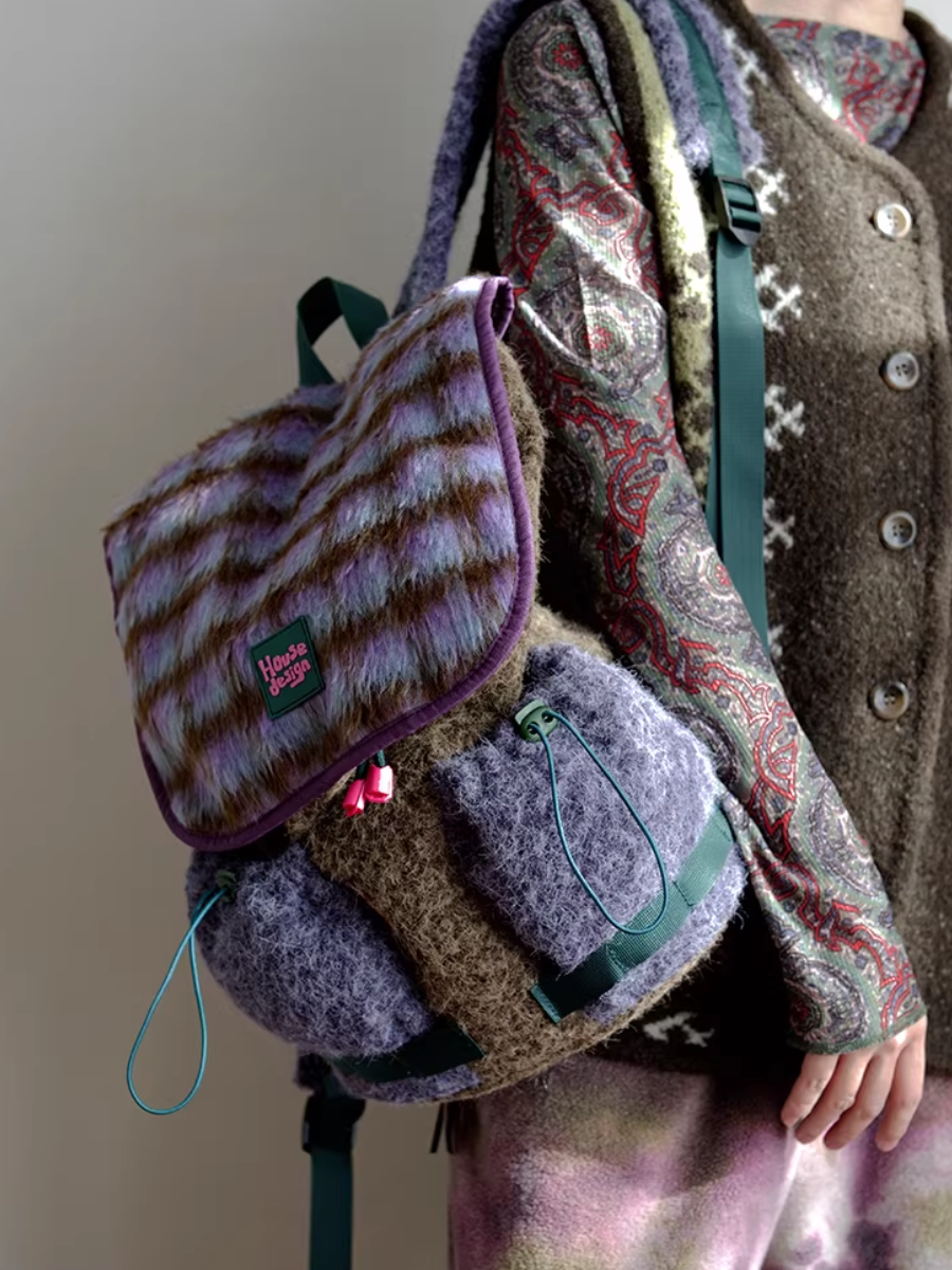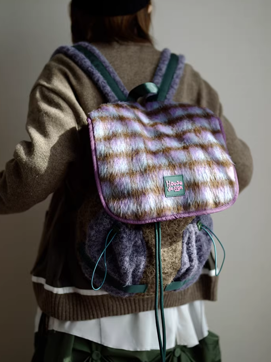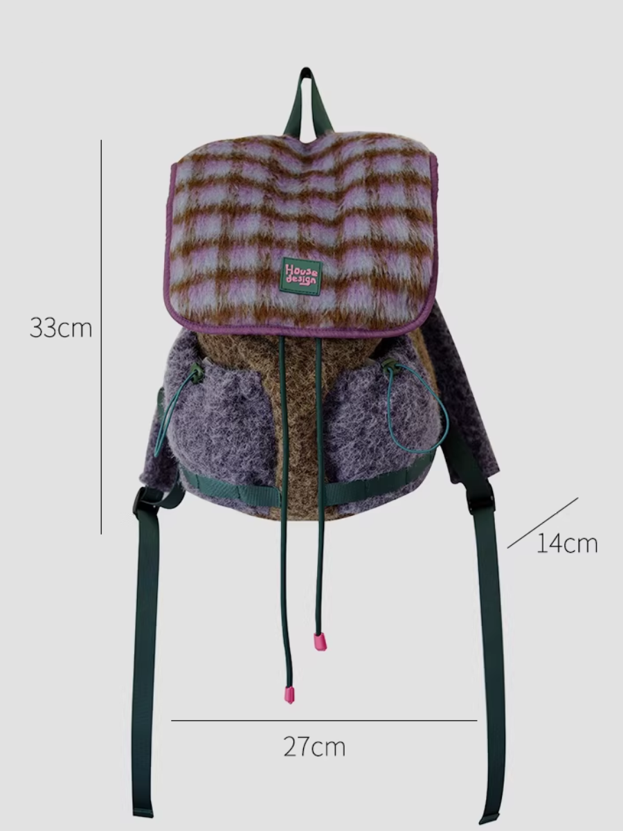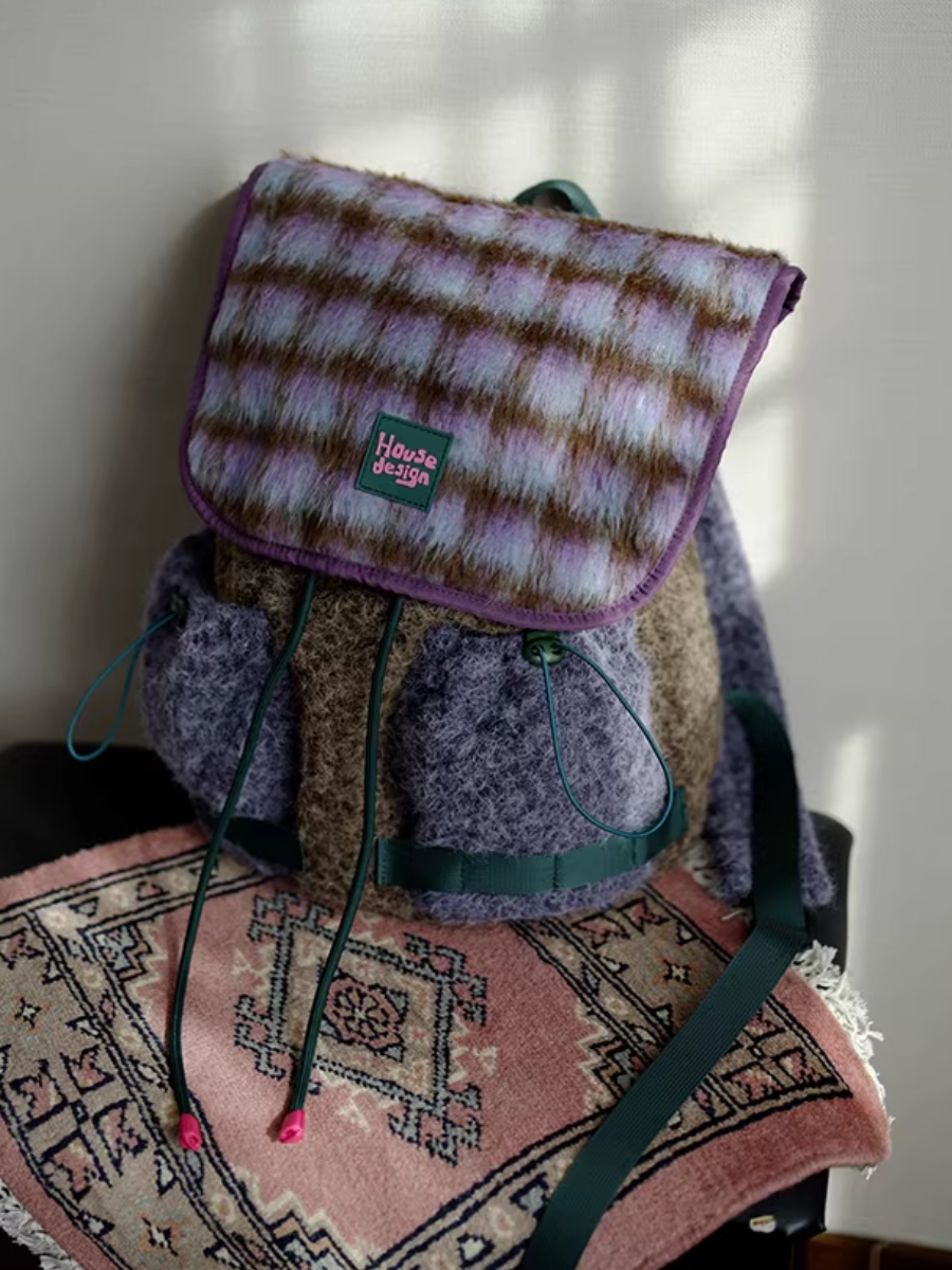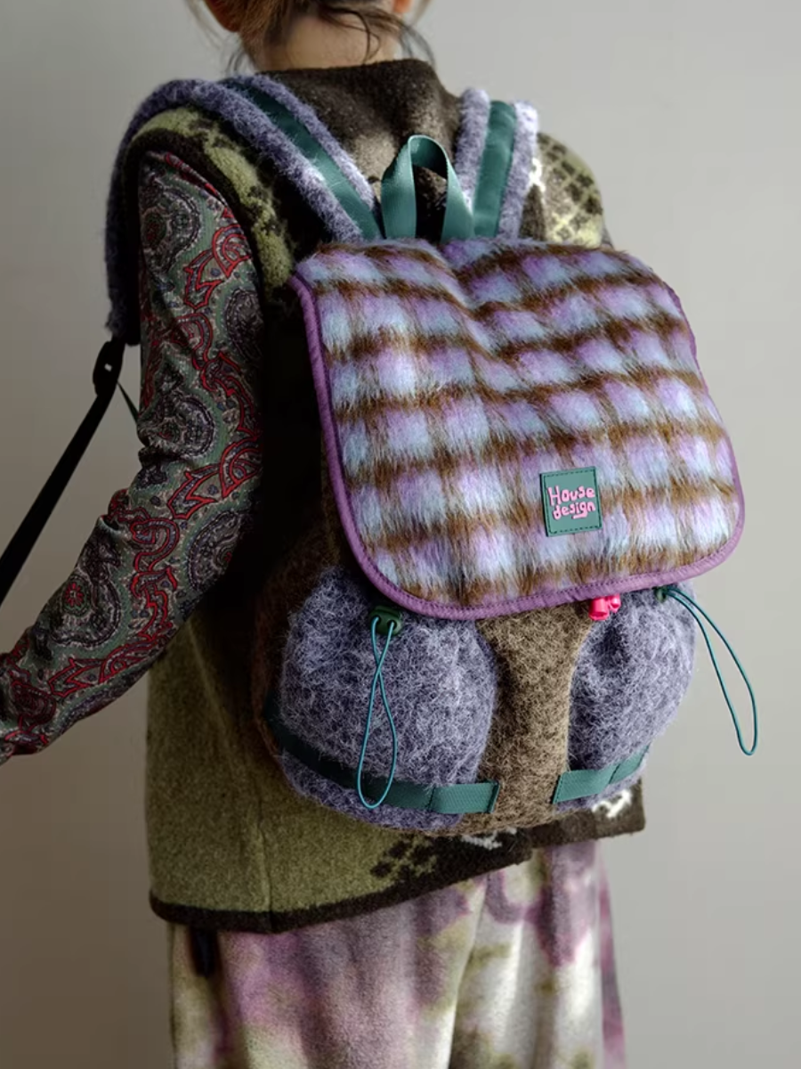 03192 حقيبة ظهر زهرية بنفسجية منفوشة بتصميم كلاسيكي